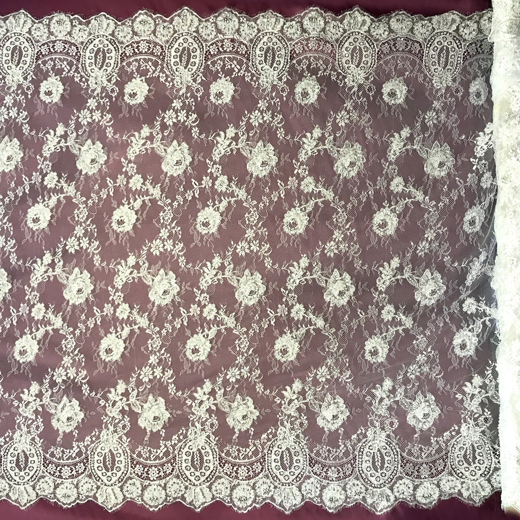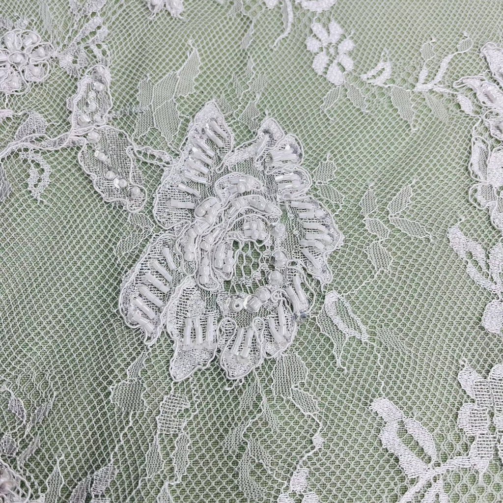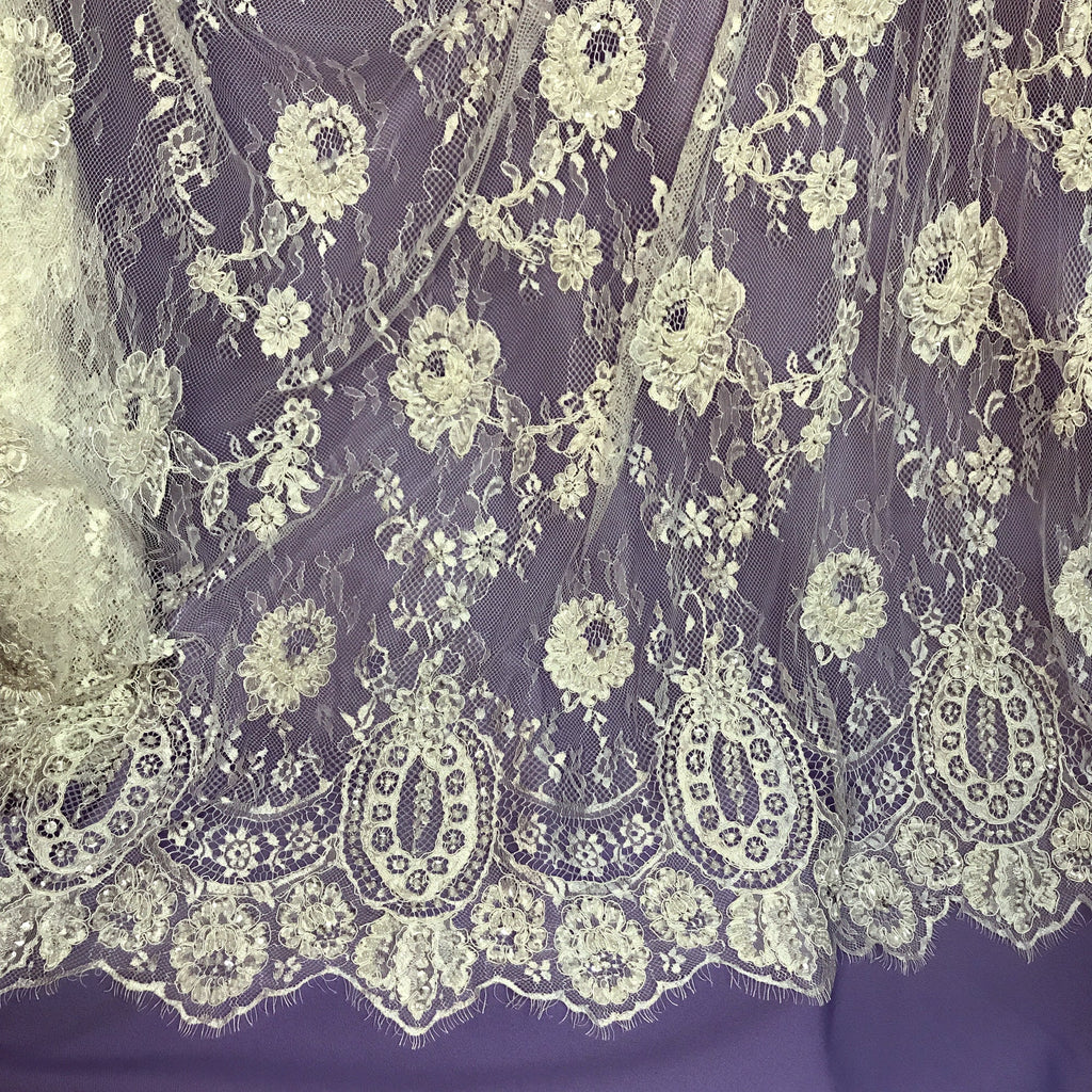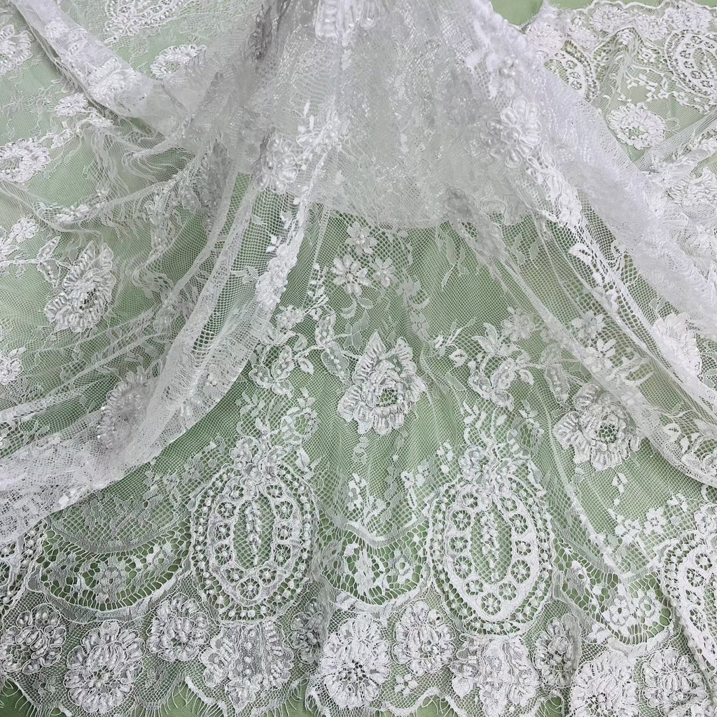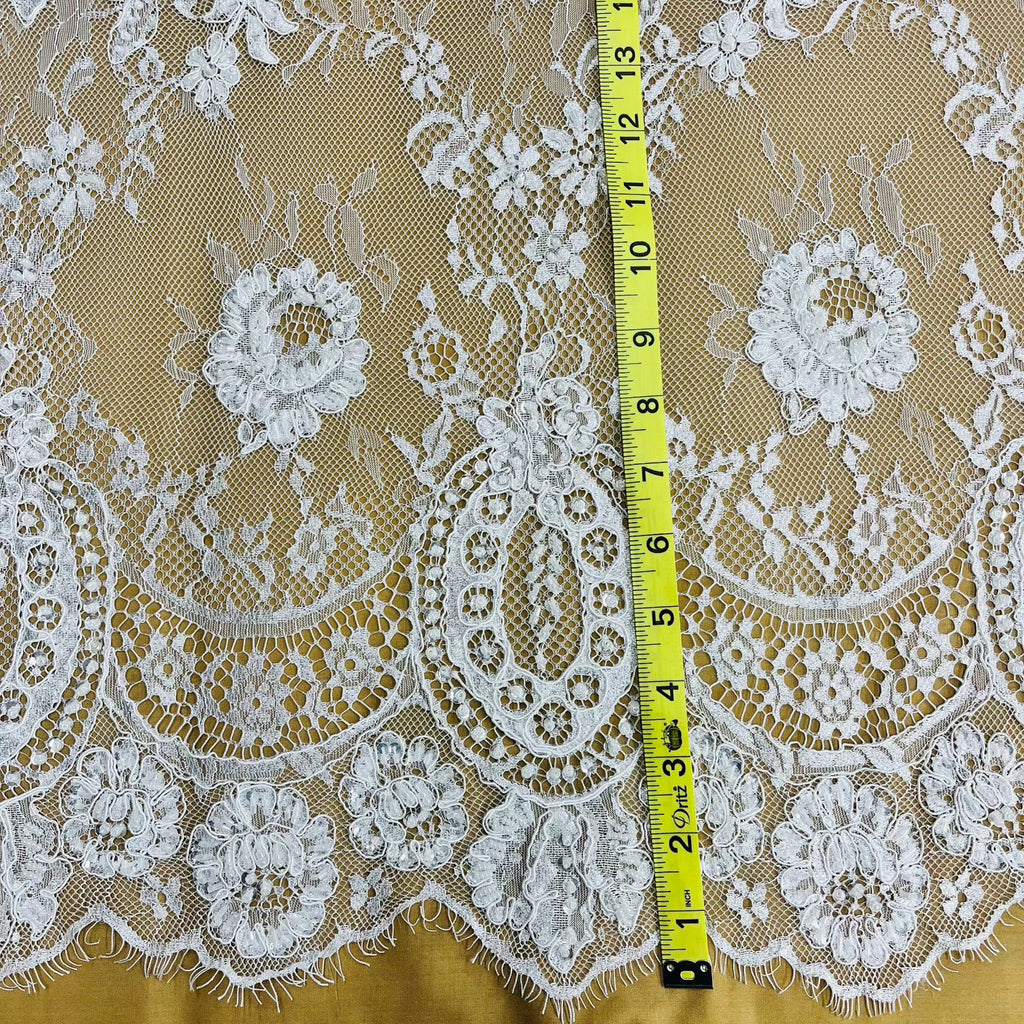 Introducing our exquisite Beaded & Corded Chantilly Floral Lace Fabric!