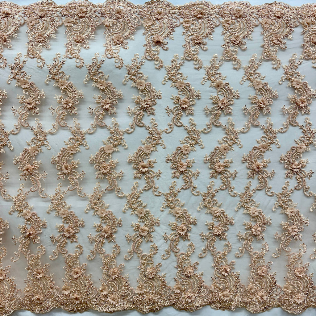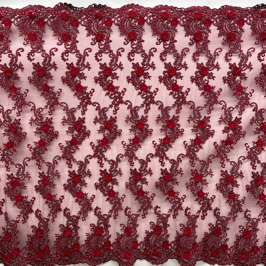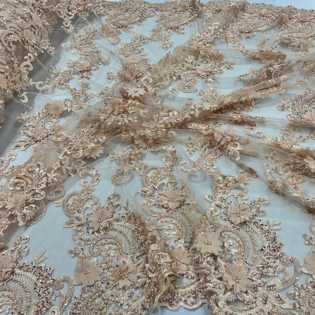 3D Beaded Floral Lace Fabric Embroidered on 100% Polyester Net Mesh | Lace USA - GD-2303