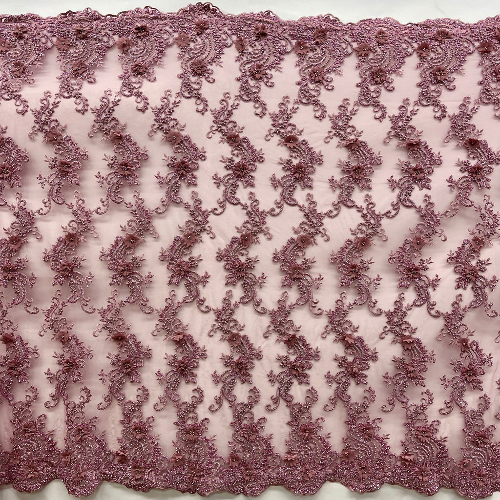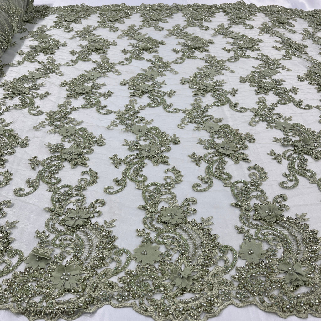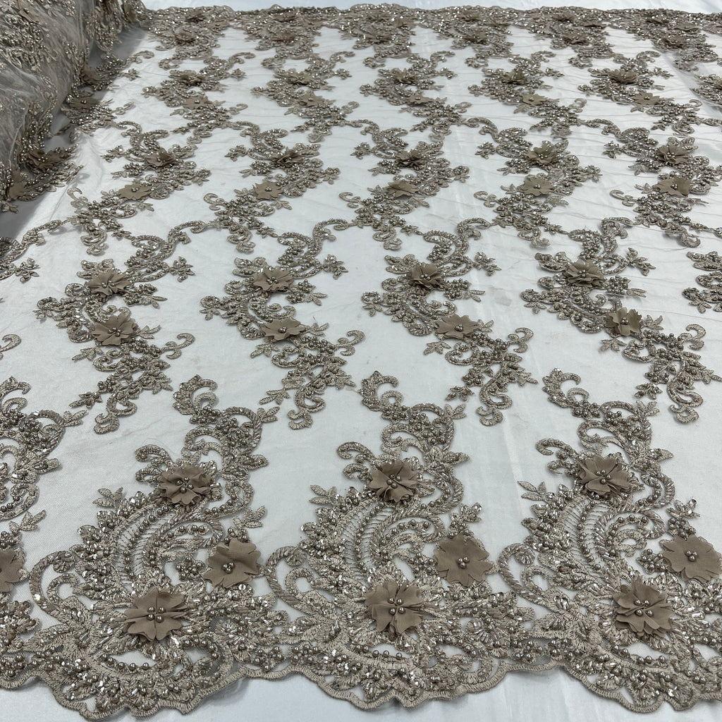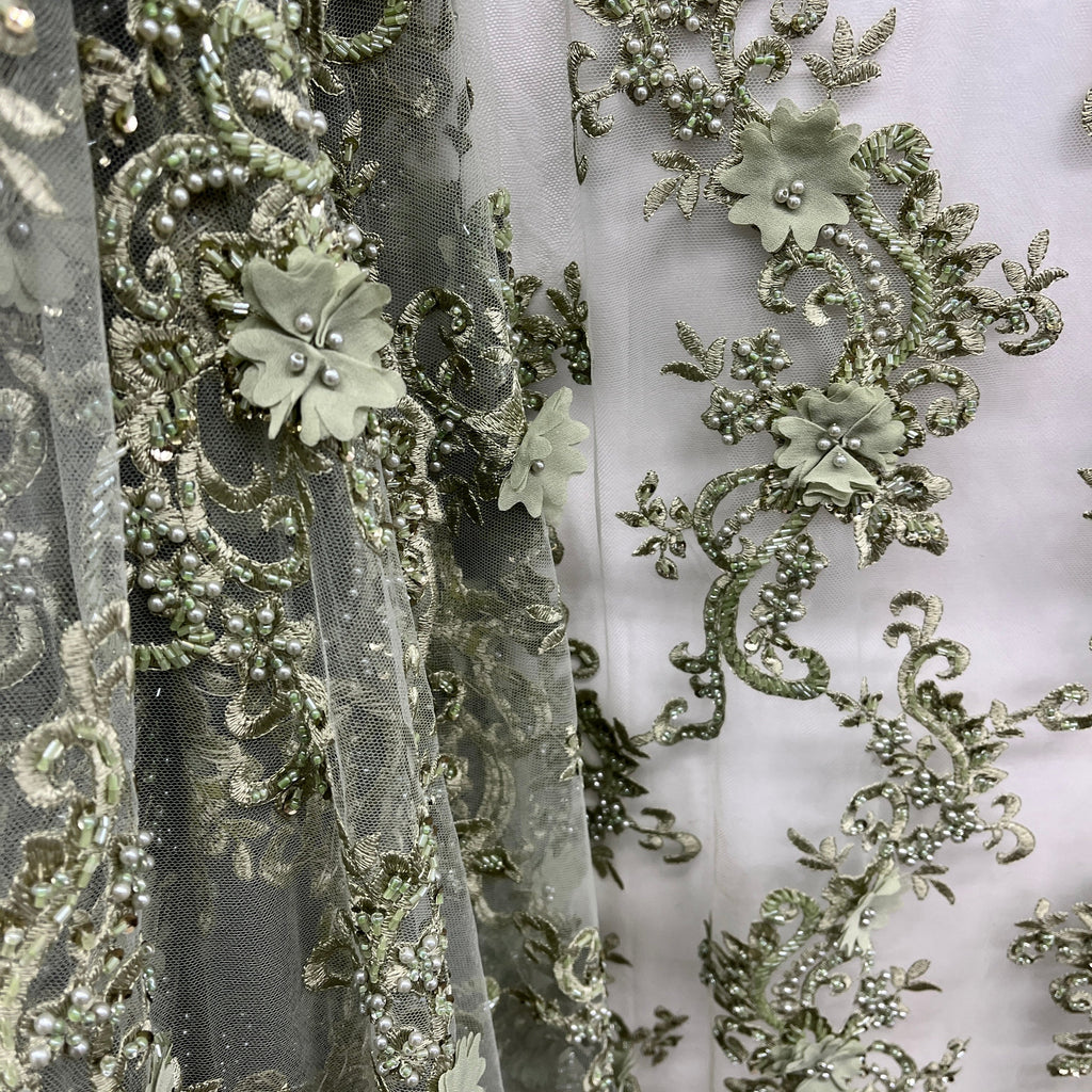 3D Beaded Floral Lace Fabric Embroidered on 100% Polyester Net Mesh | Lace USA - GD-2303