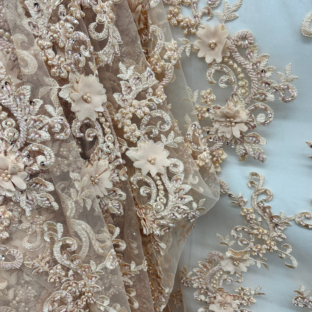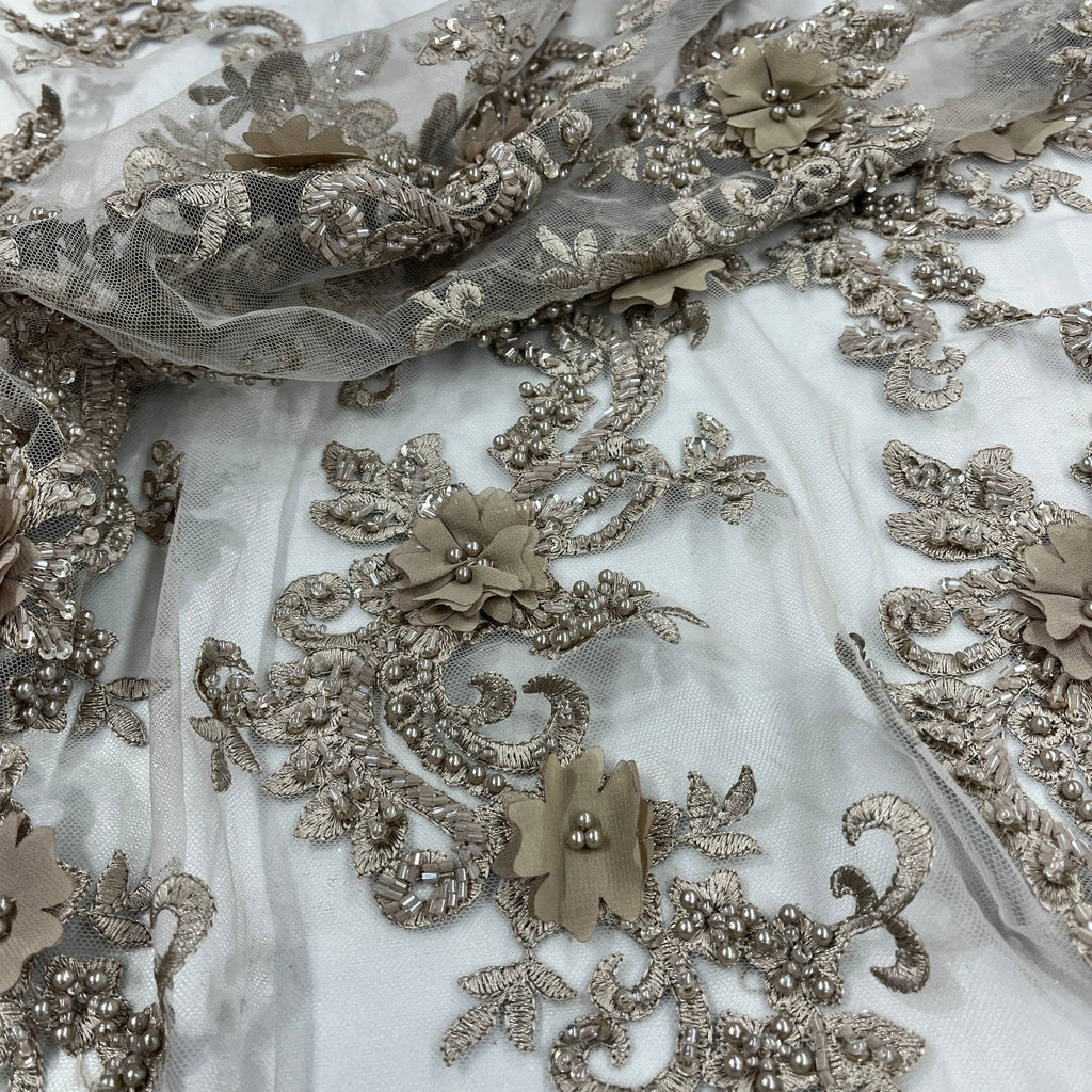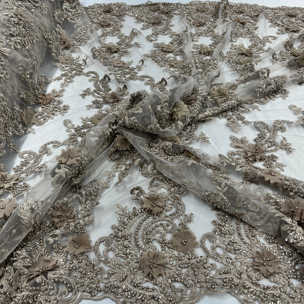 Add a touch of elegance and beauty to any special occasion with our Beaded 3D Floral Lace Fabric Embroidered on 100% Polyester Net Mesh.