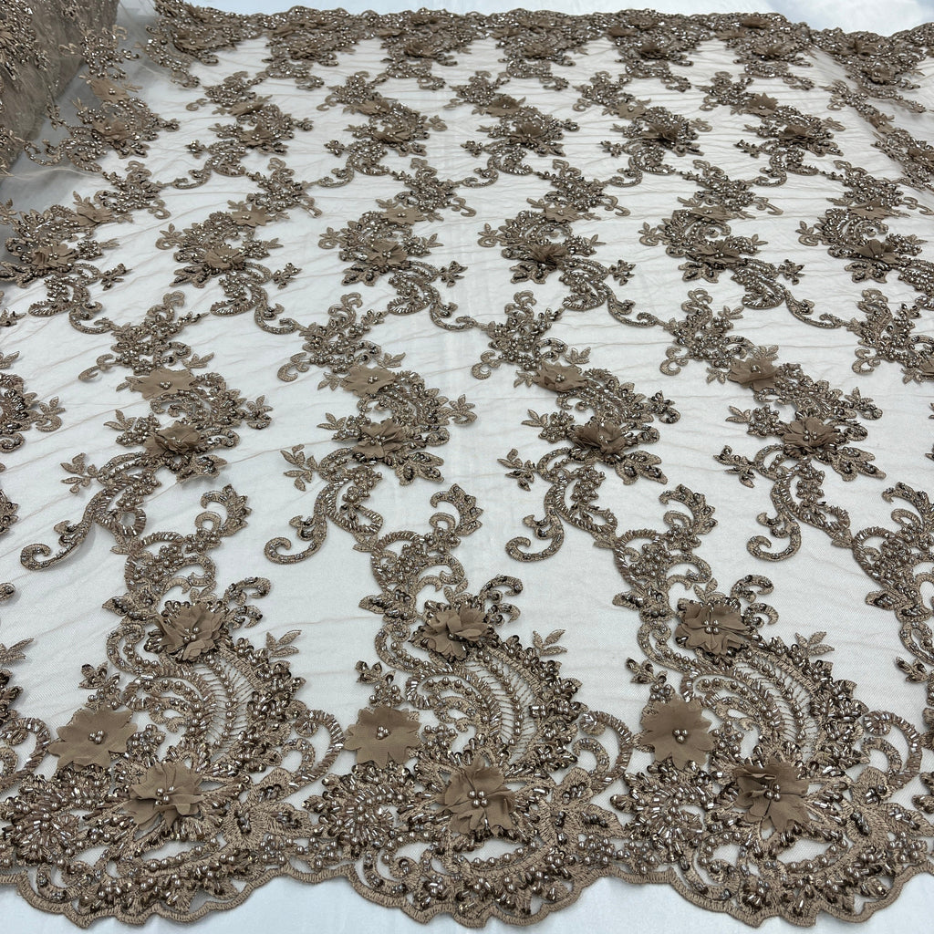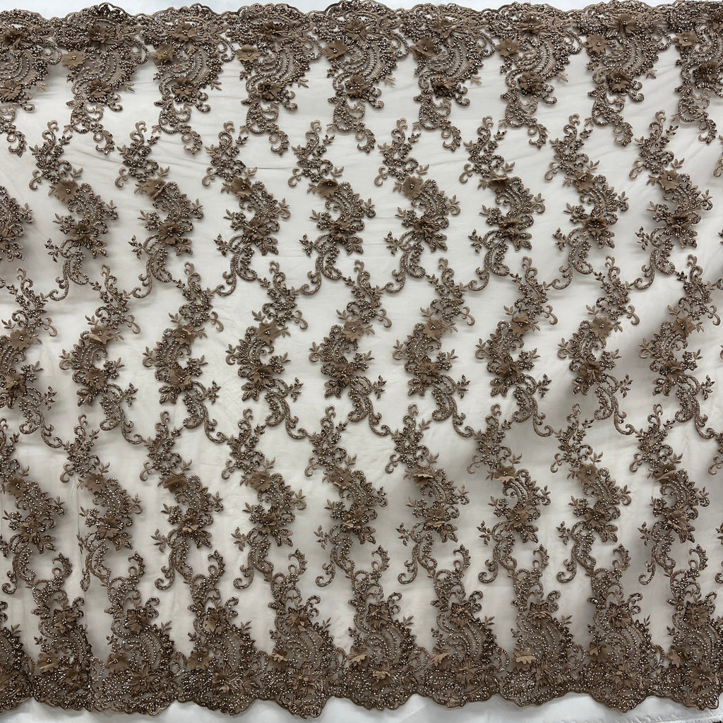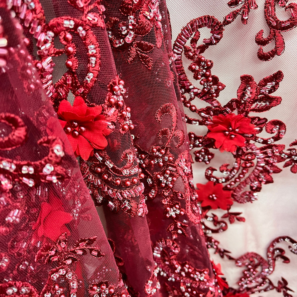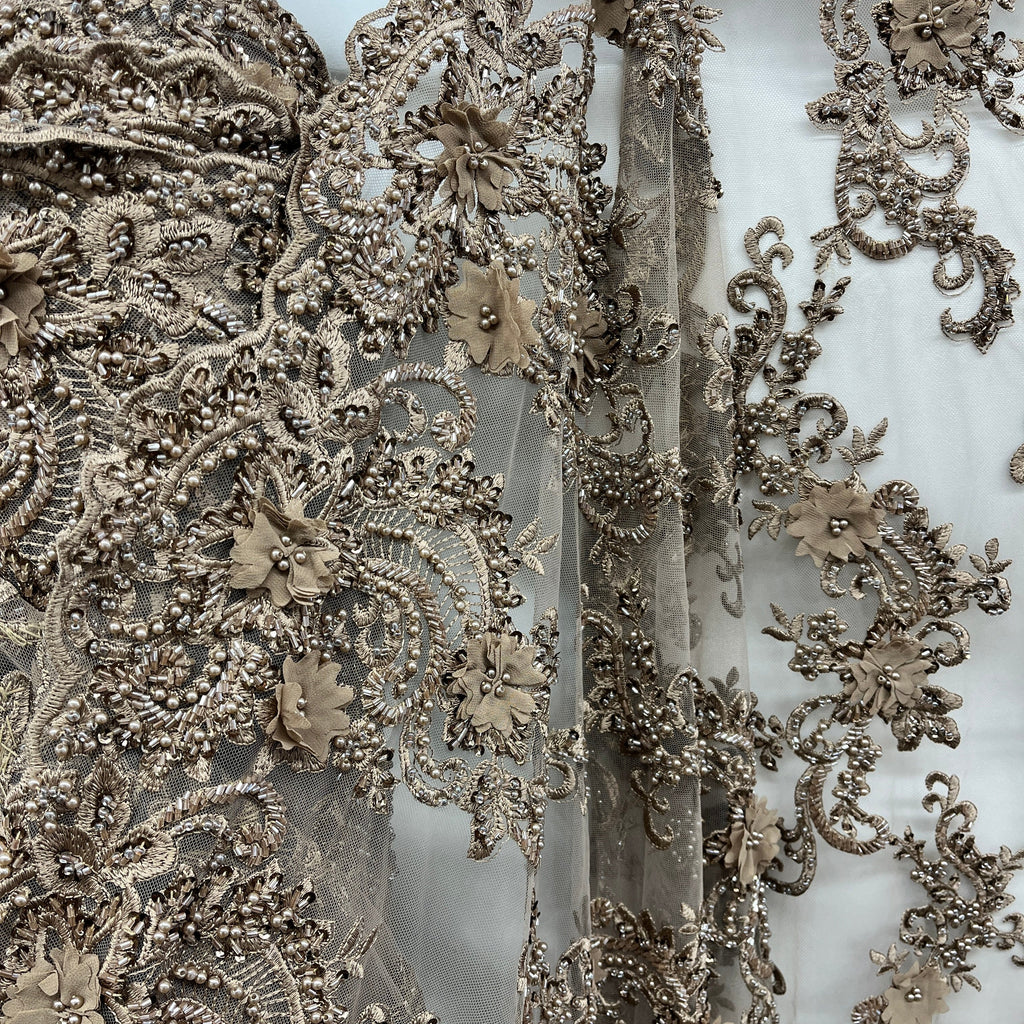 Add a touch of elegance and beauty to any special occasion with our Beaded 3D Floral Lace Fabric Embroidered on 100% Polyester Net Mesh.