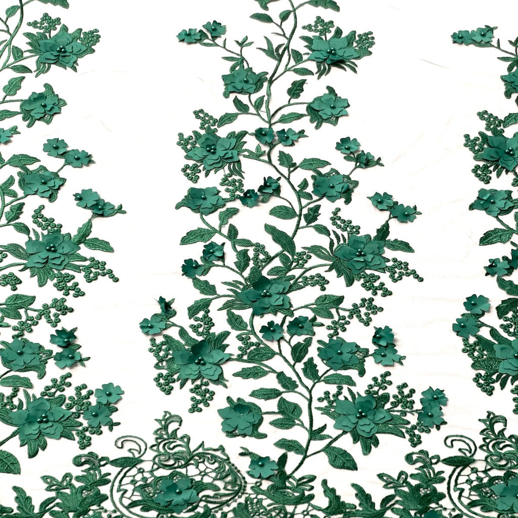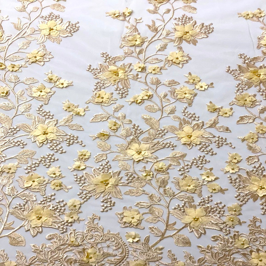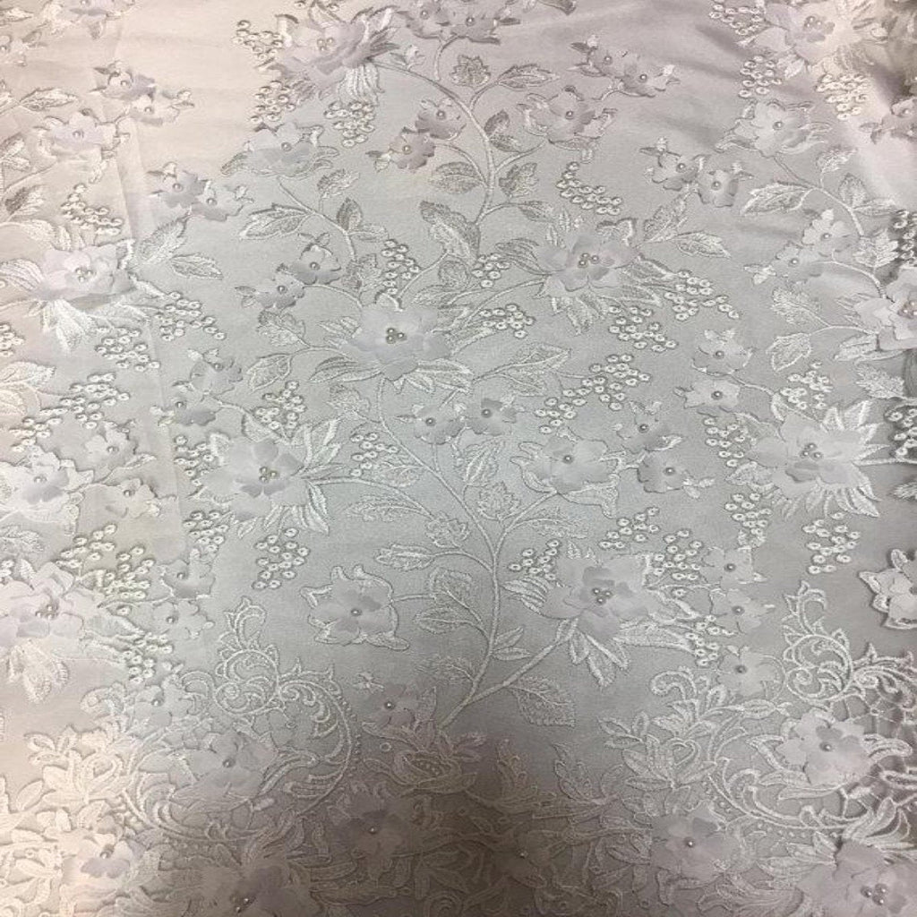 3D Embroidered Satin Floral Pearl Lace Fabric