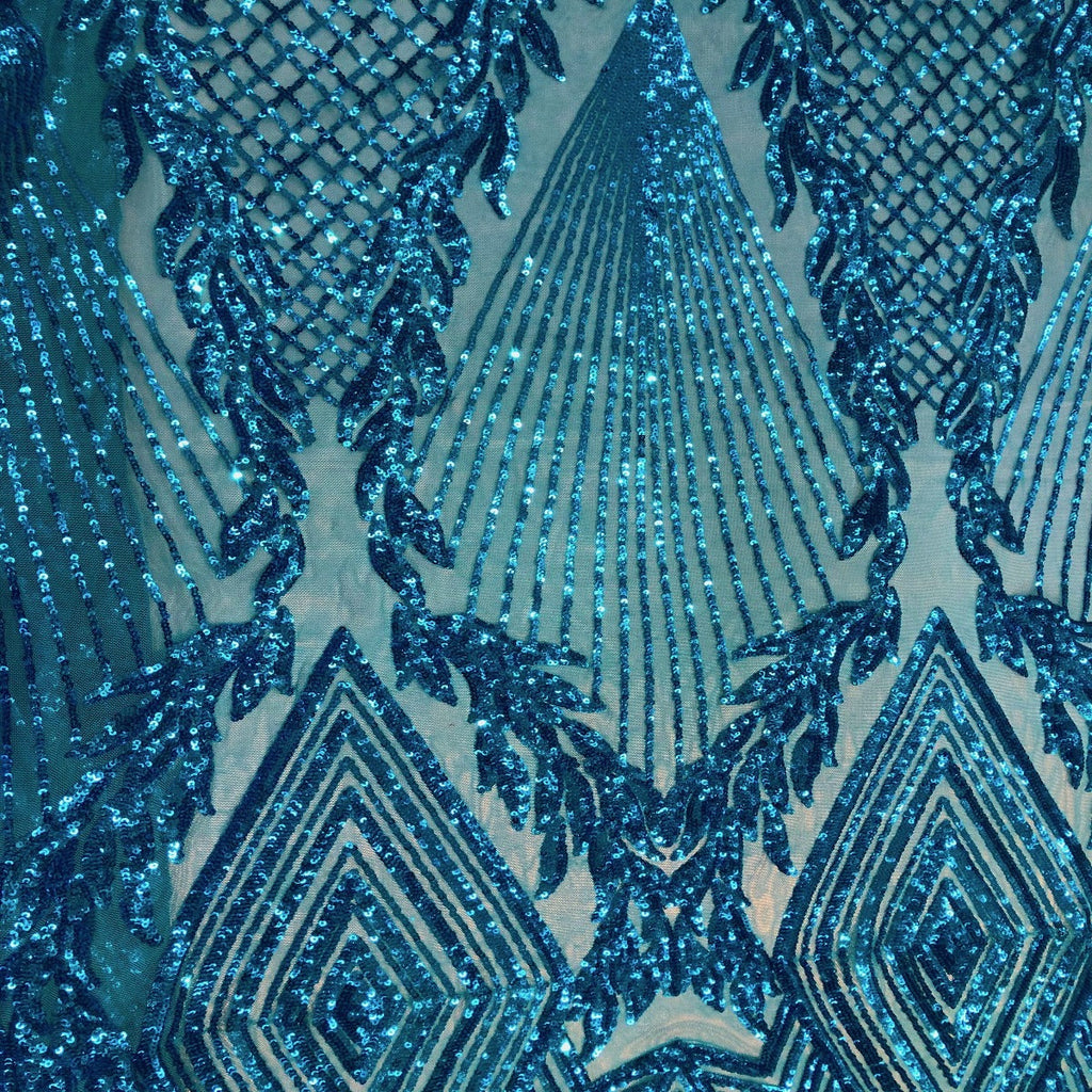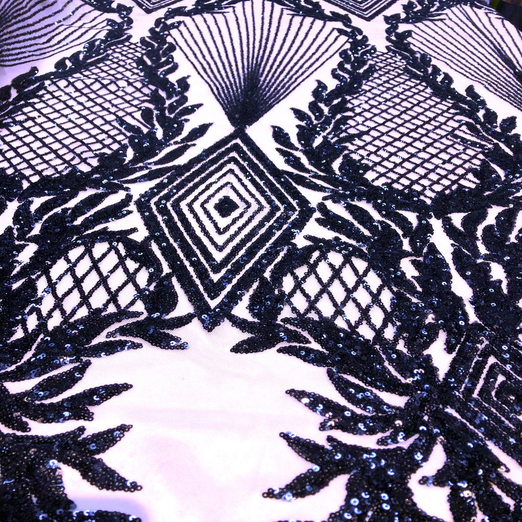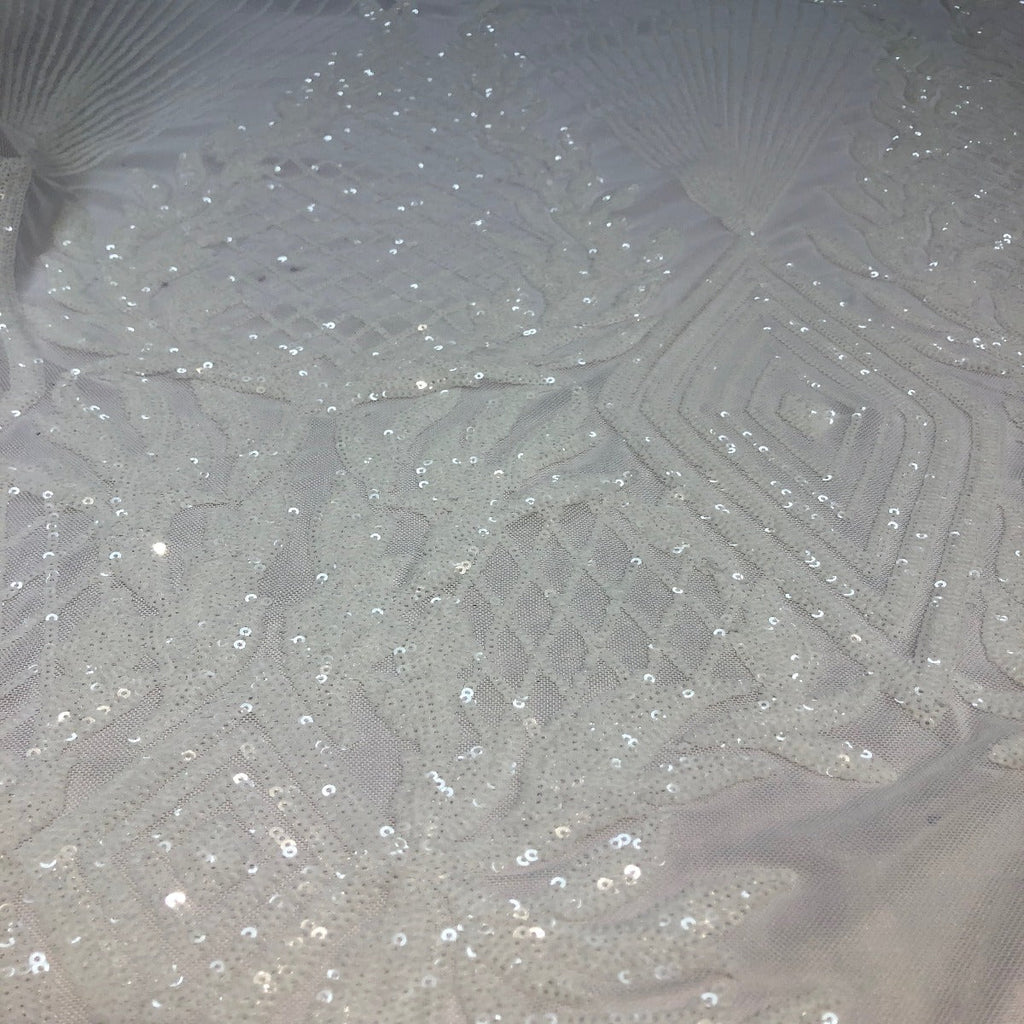 This beautiful and elegant Alpica Sequins Lace Fabric is truly one of a kind. Crafted with a luxurious four-way stretch nylon mesh backing, it features a stunning sequin design that adds a touch of glamour to any project. This fabric is sold by the yard, and if more than one yard is purchased, you will receive your fabric in a continuous piece. For example, if two yards are ordered, you will receive a piece measuring 60" x 72".