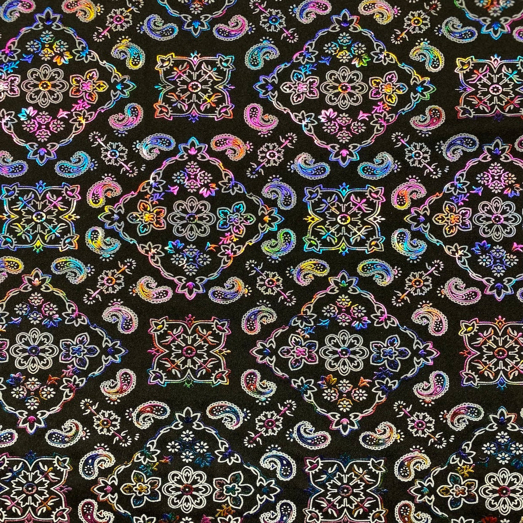 Elevate your sewing and crafting projects with this dynamic paisley spandex fabric, where style meets functionality!
