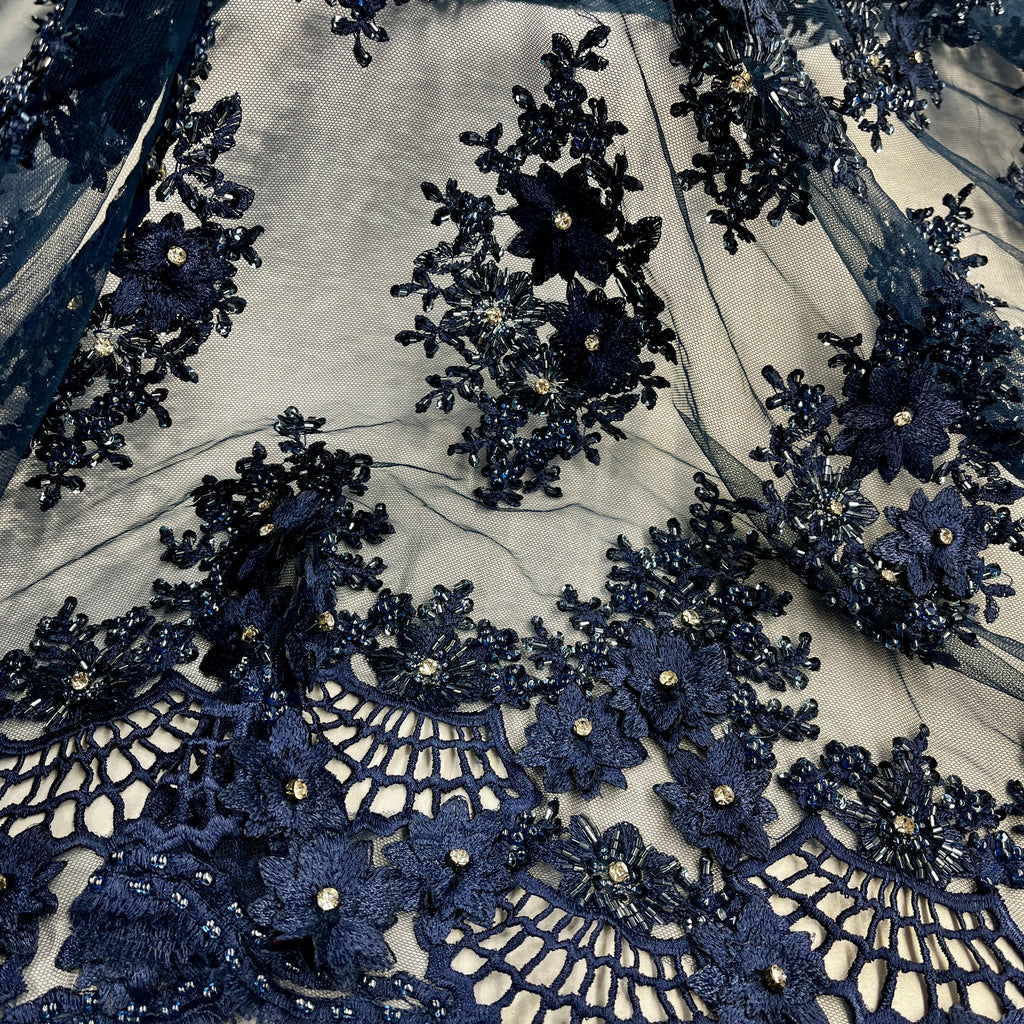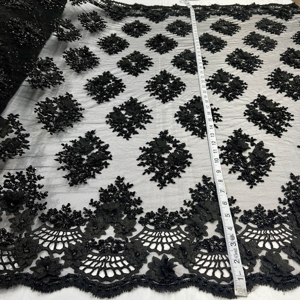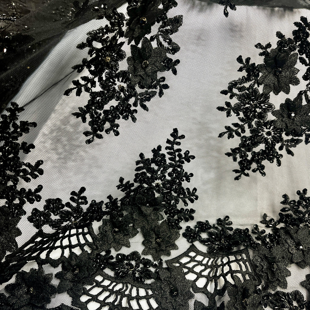 Beaded 3D Floral Lace Fabric Embroidered on 100% Polyester Net Mesh | Lace USA - GD-08