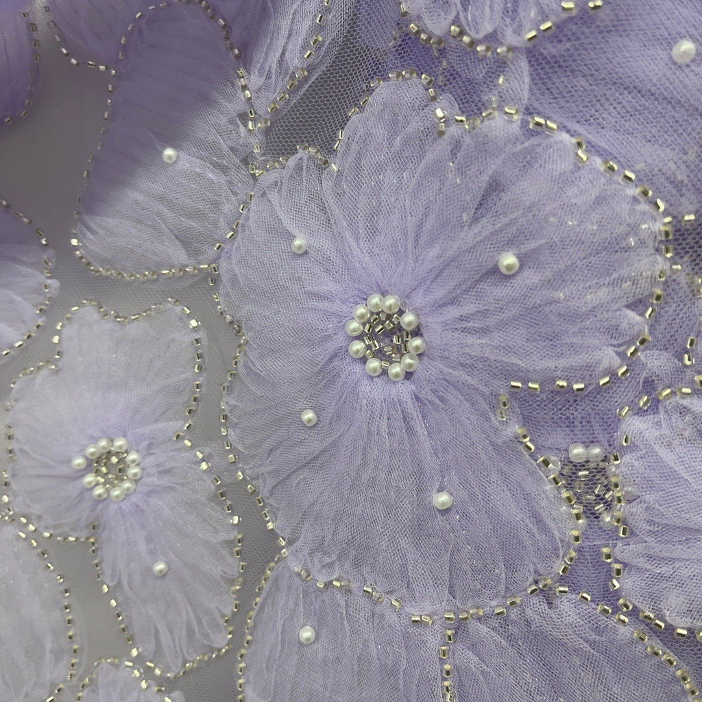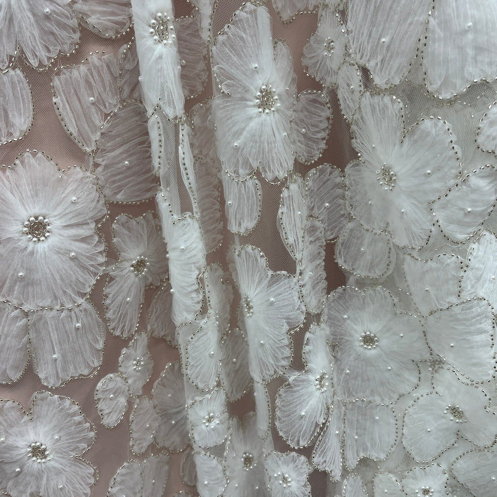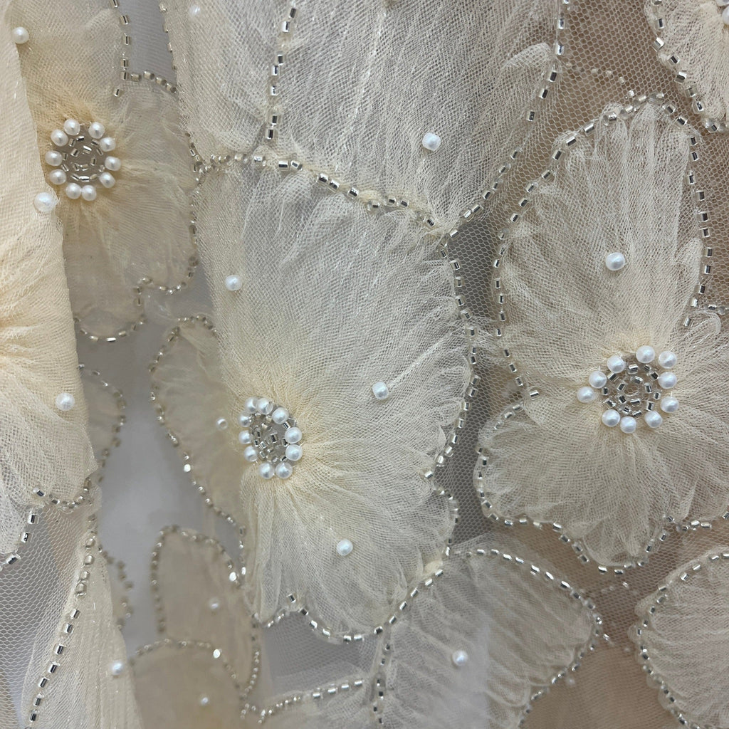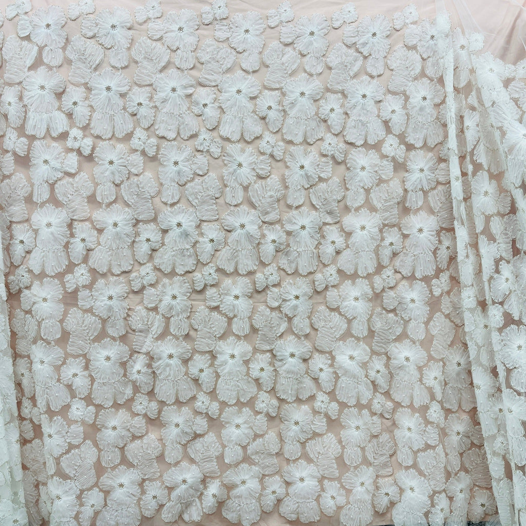 Beaded 3D Floral Lace Fabric Embroidered on 100% Polyester Net Mesh | Lace USA - GD-216