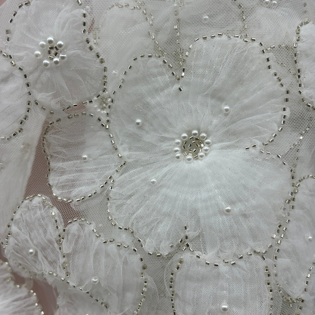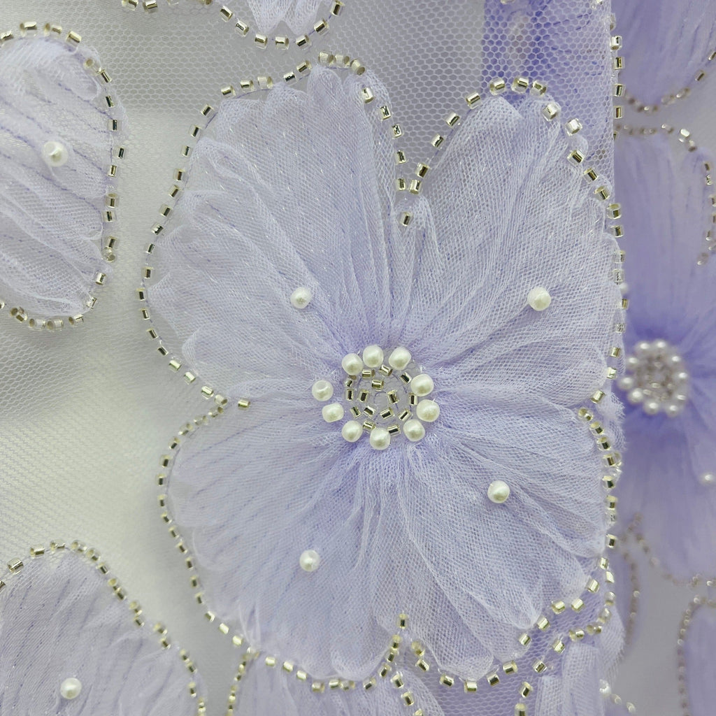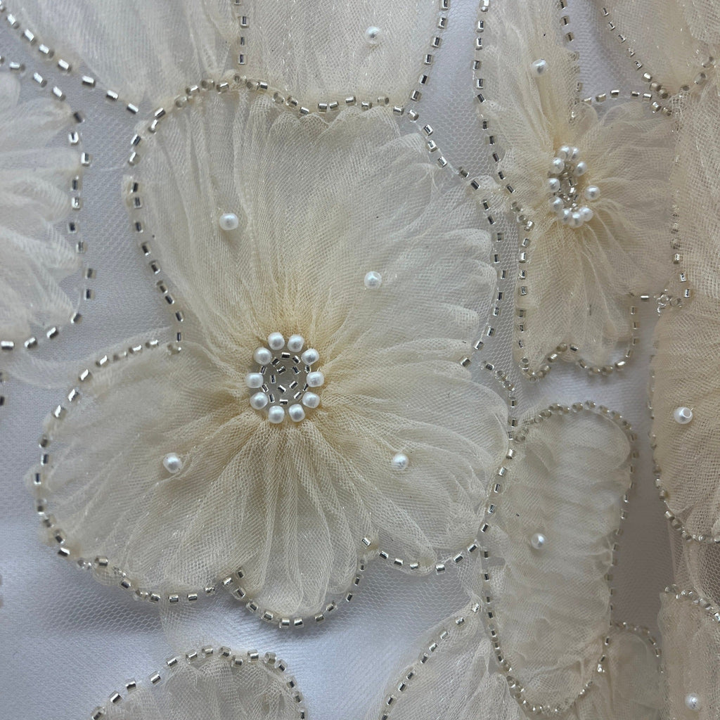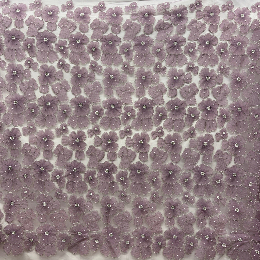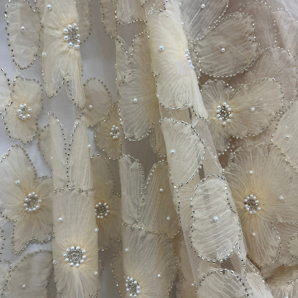 Beaded 3D Floral Lace Fabric Embroidered on 100% Polyester Net Mesh | Lace USA - GD-216