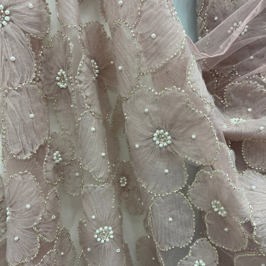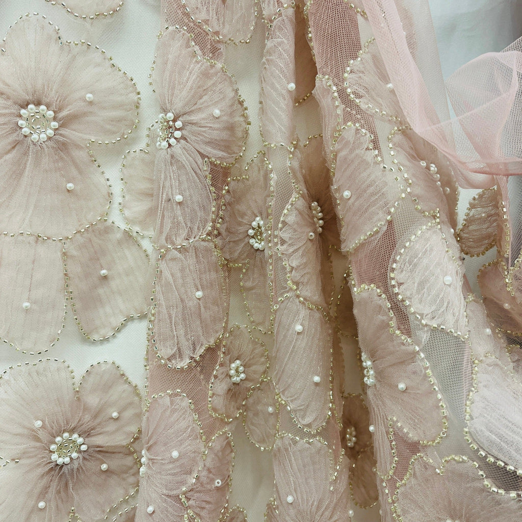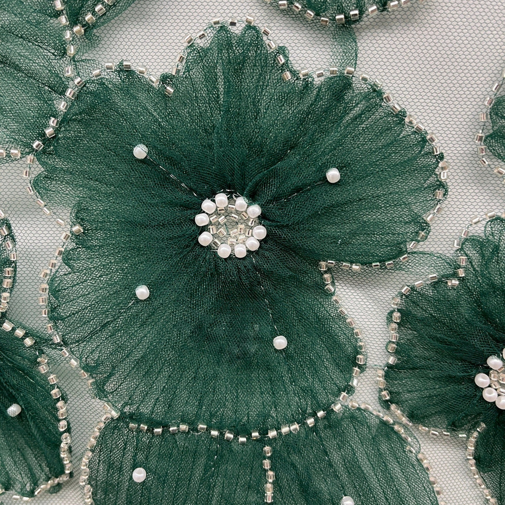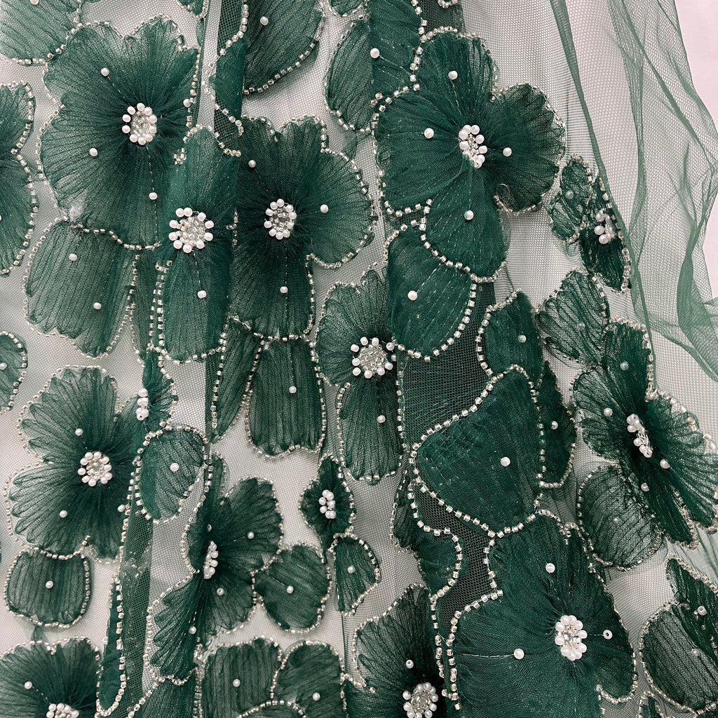Beaded 3D Floral Lace Fabric Embroidered on 100% Polyester Net Mesh | Lace USA - GD-216