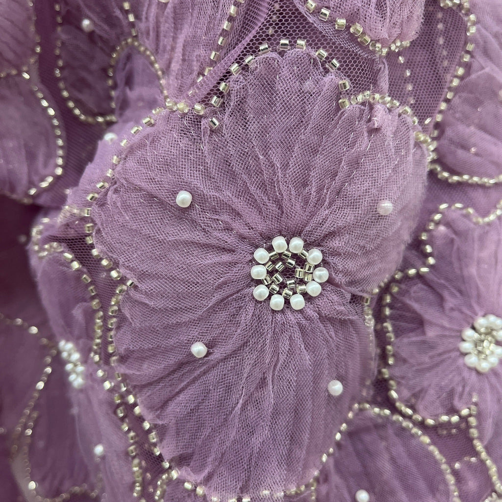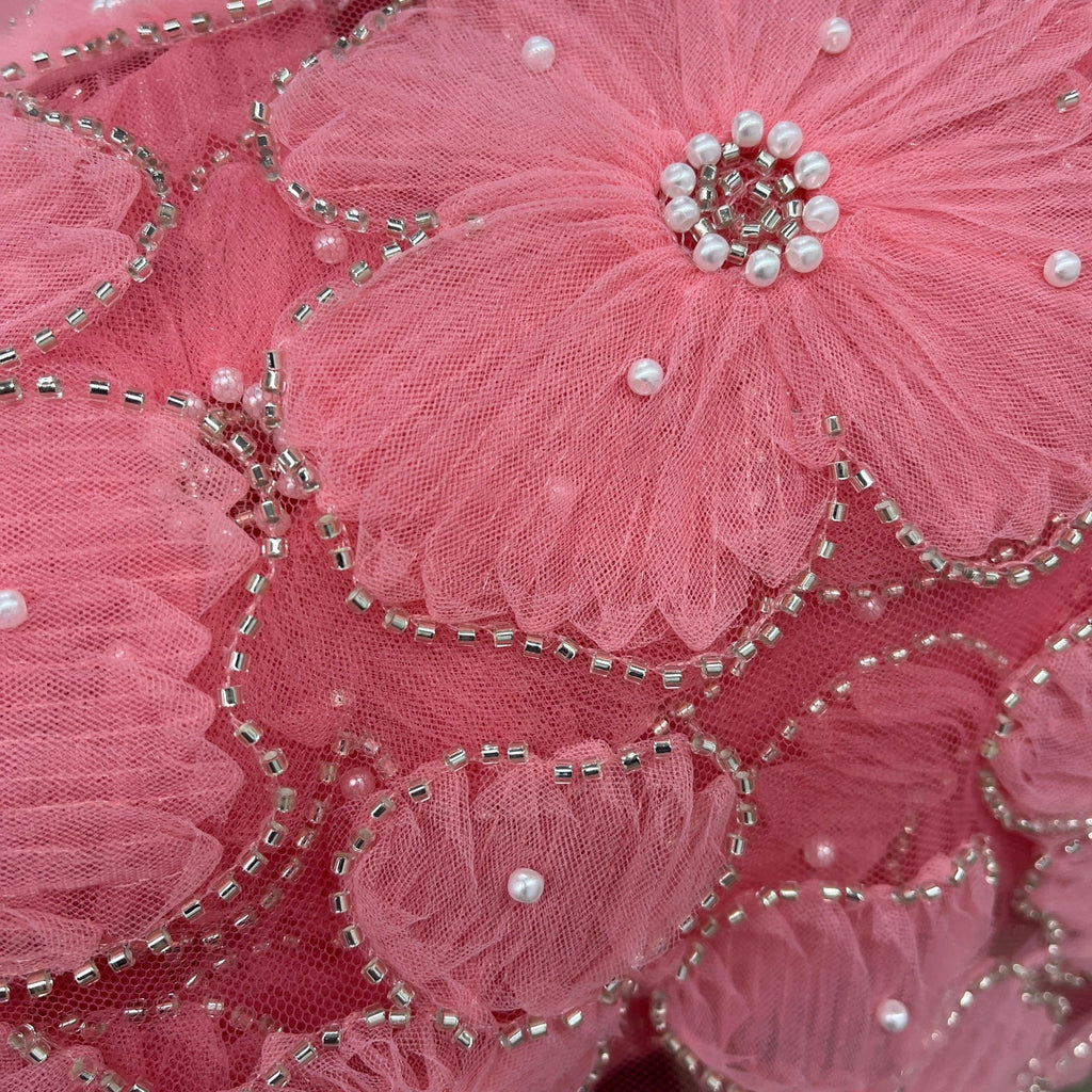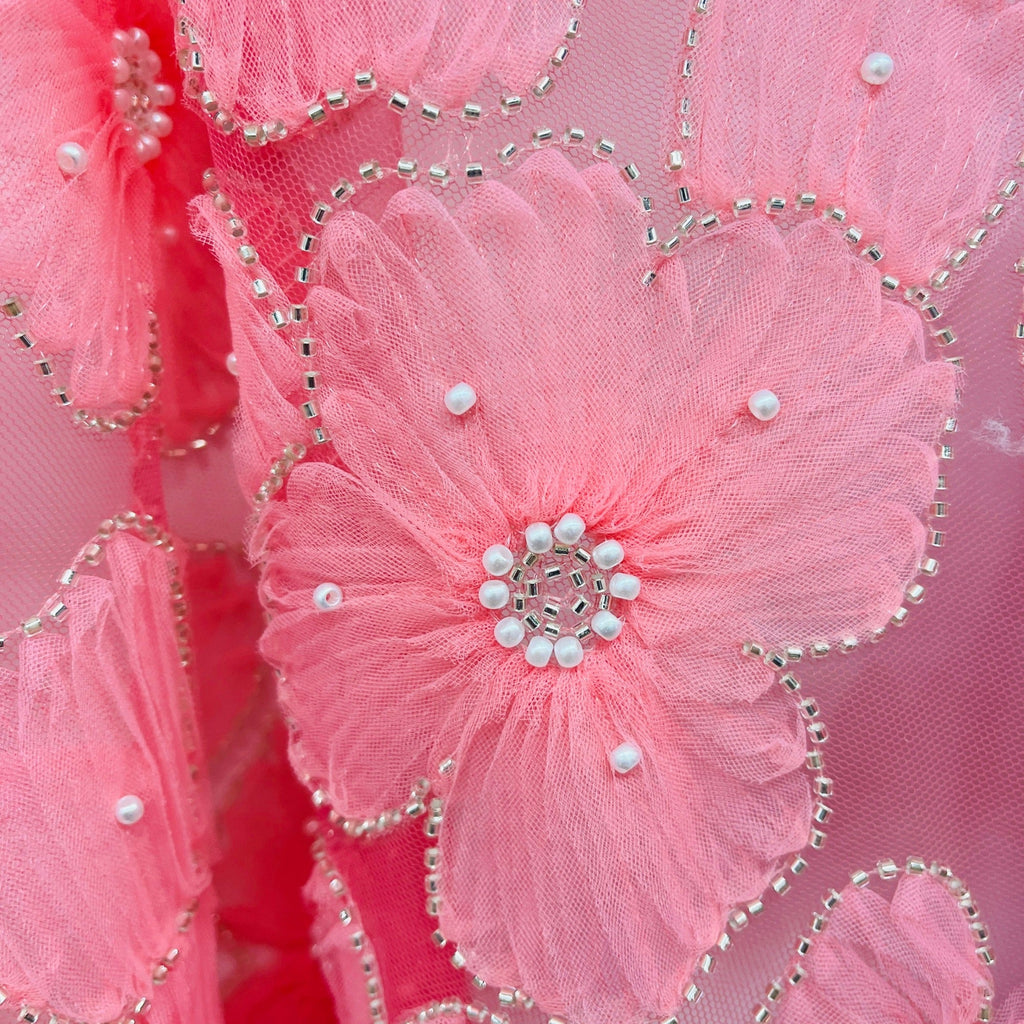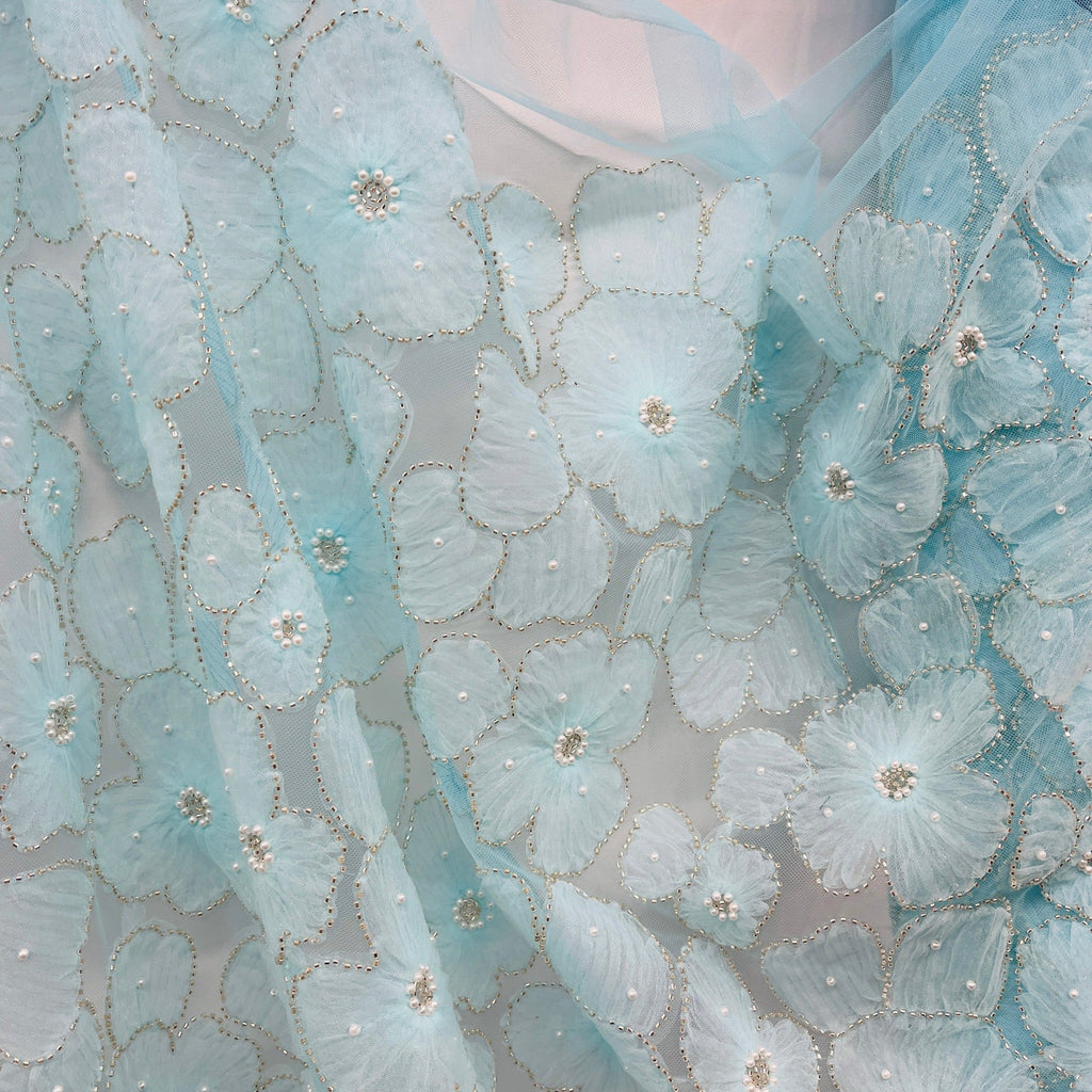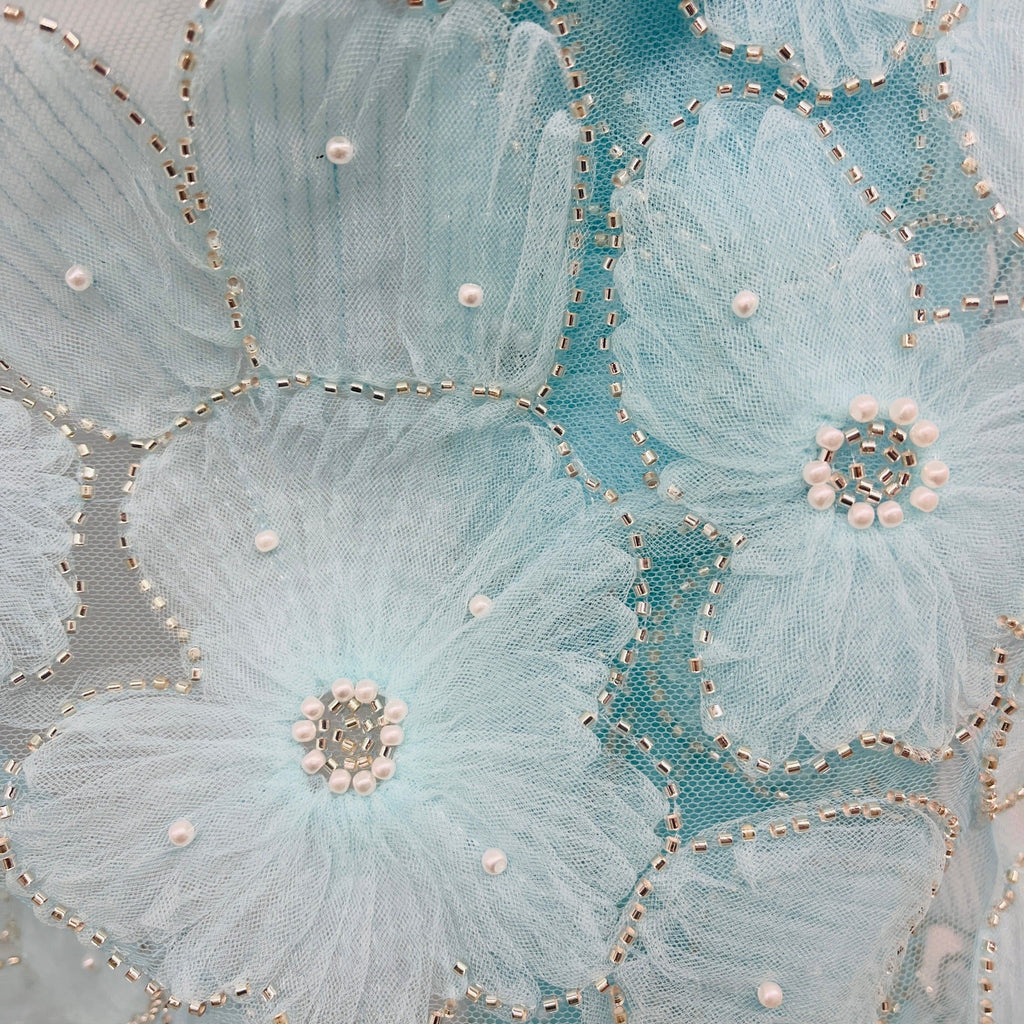 Beaded 3D Floral Lace Fabric Embroidered on 100% Polyester Net Mesh | Lace USA - GD-216