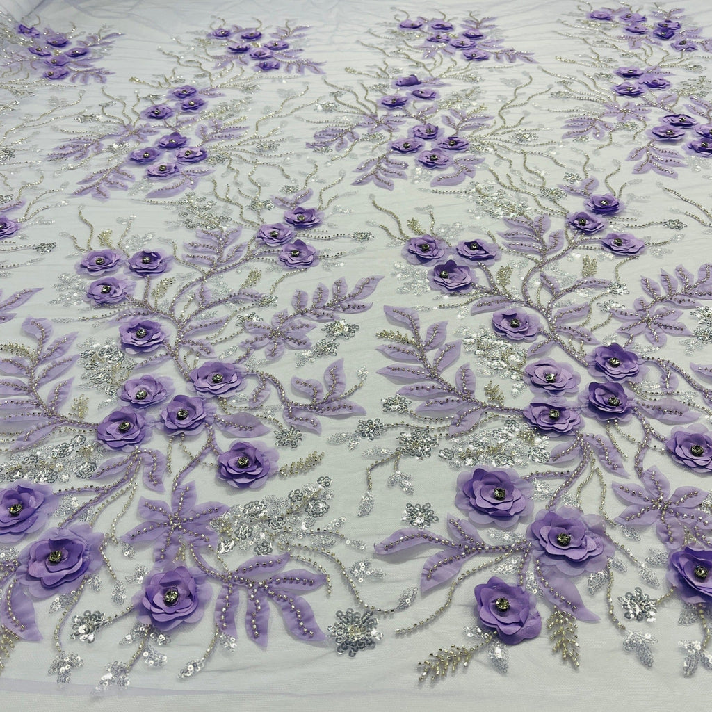 Beaded, Sequined 3D Floral Lace Fabric – Embroidered Mesh for Dresses & Gowns | Lace USA - GD-229