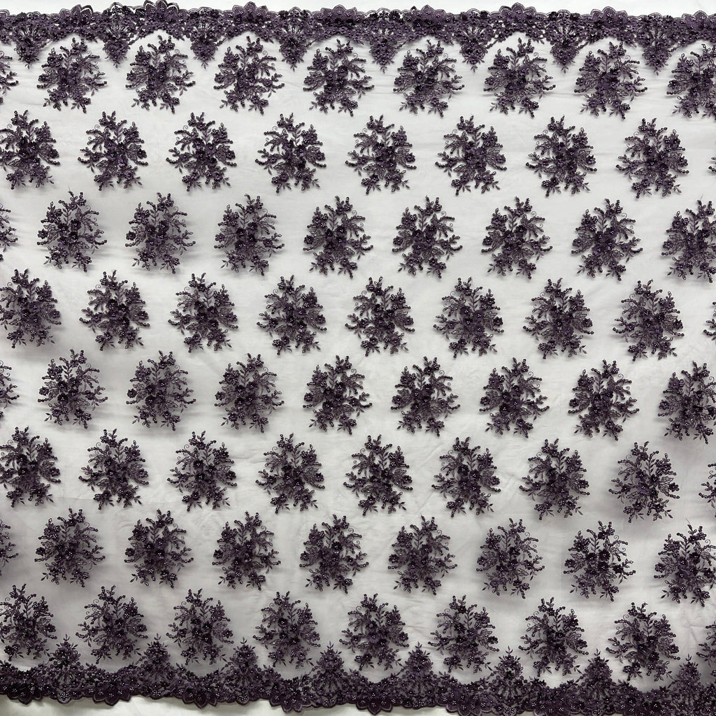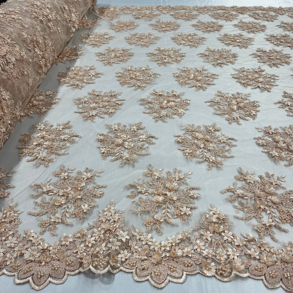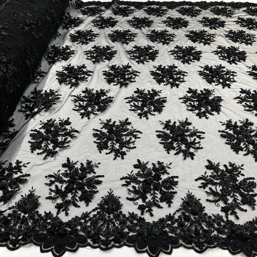 Beaded 3D Floral Lace Fabric Embroidered on 100% Polyester Net Mesh | Lace USA - GD-361