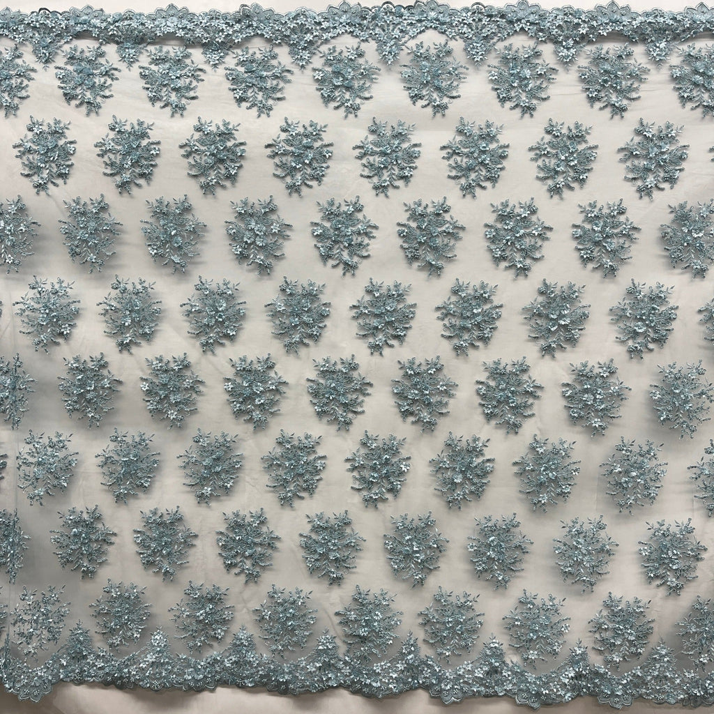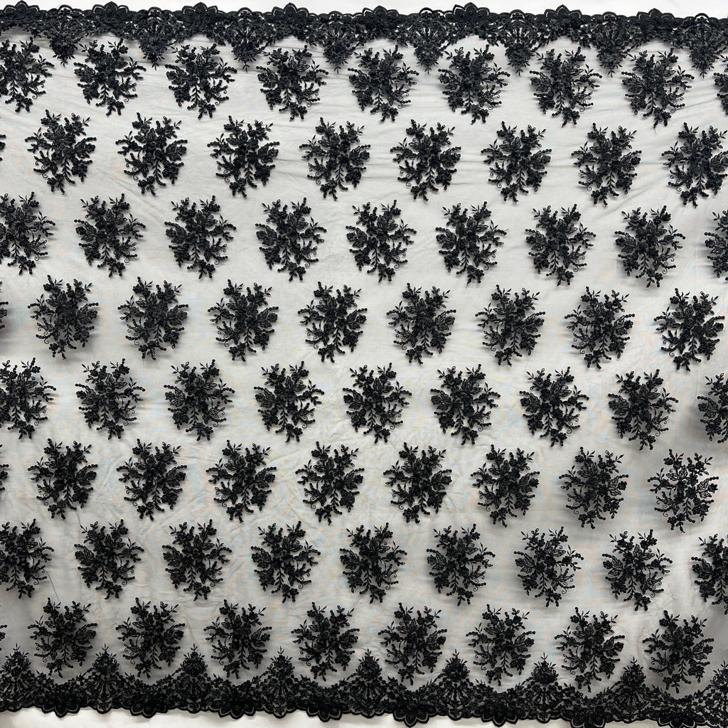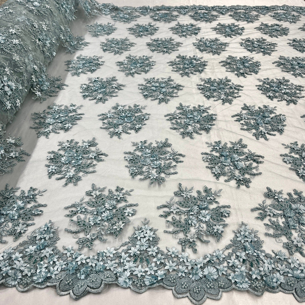 Beaded 3D Floral Lace Fabric Embroidered on 100% Polyester Net Mesh | Lace USA - GD-361