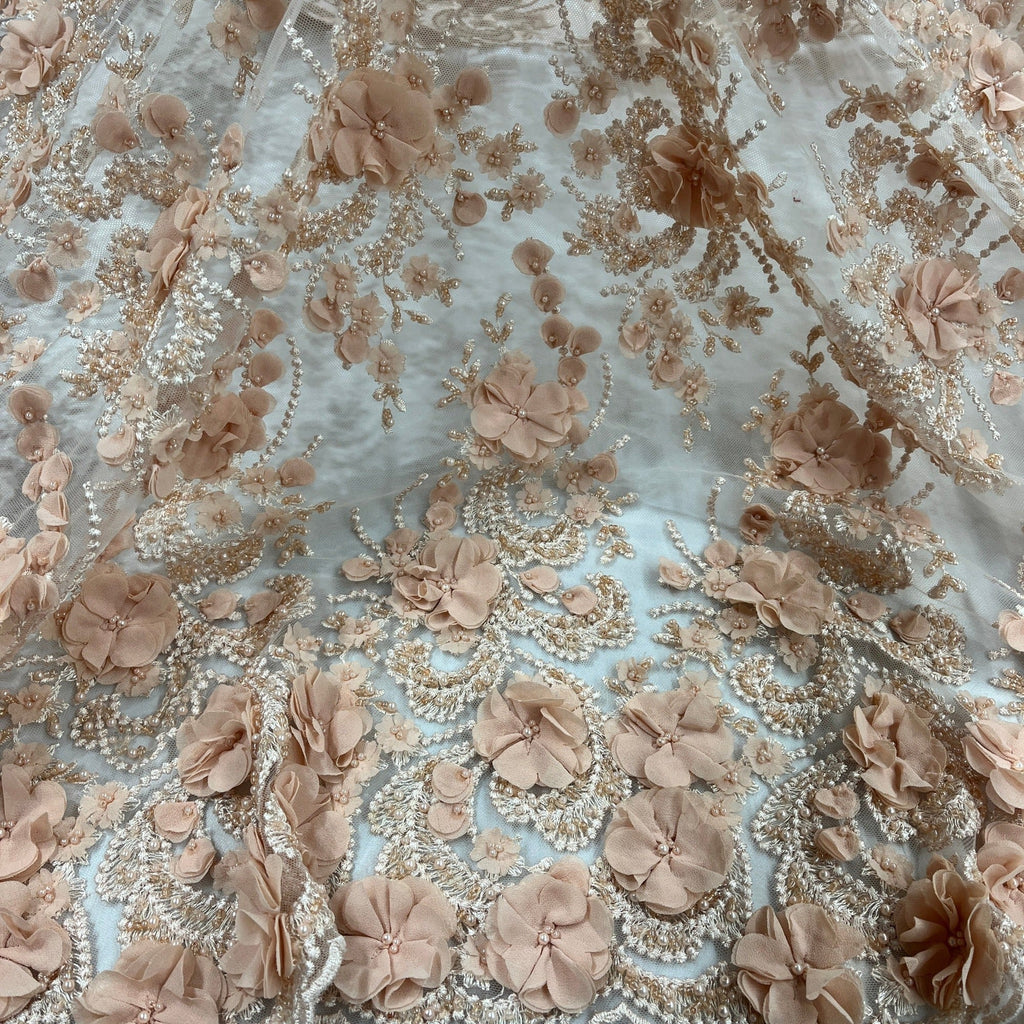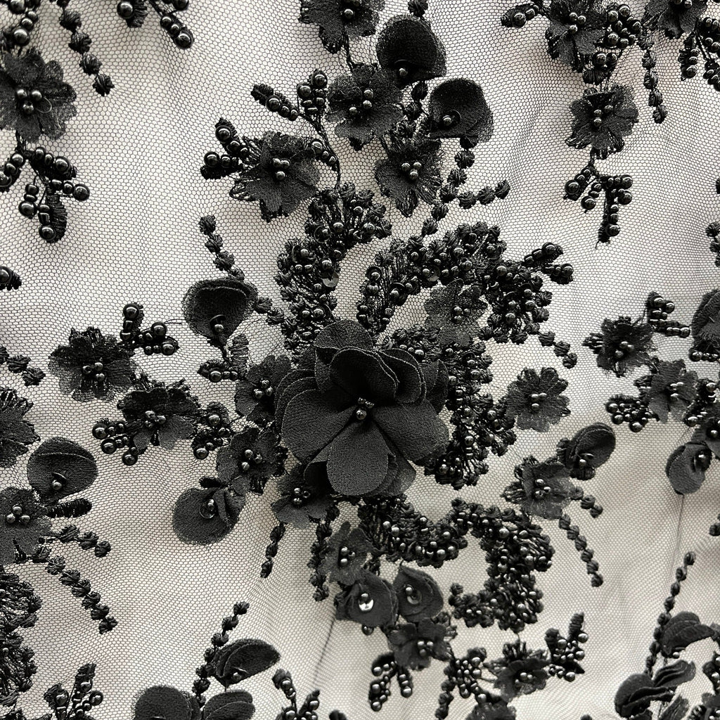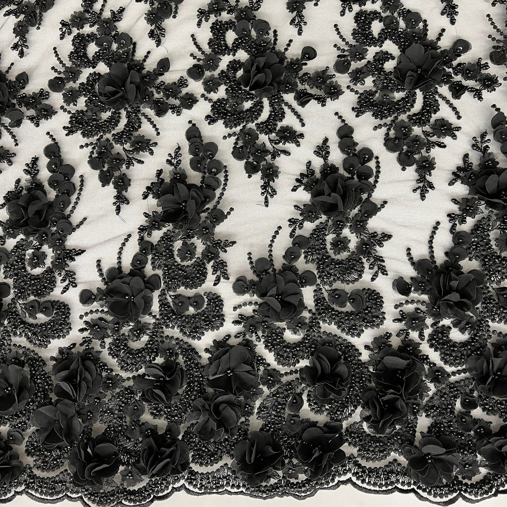 Beaded 3D Floral Lace Fabric Embroidered on 100% Polyester Net Mesh | Lace USA - GD-362
