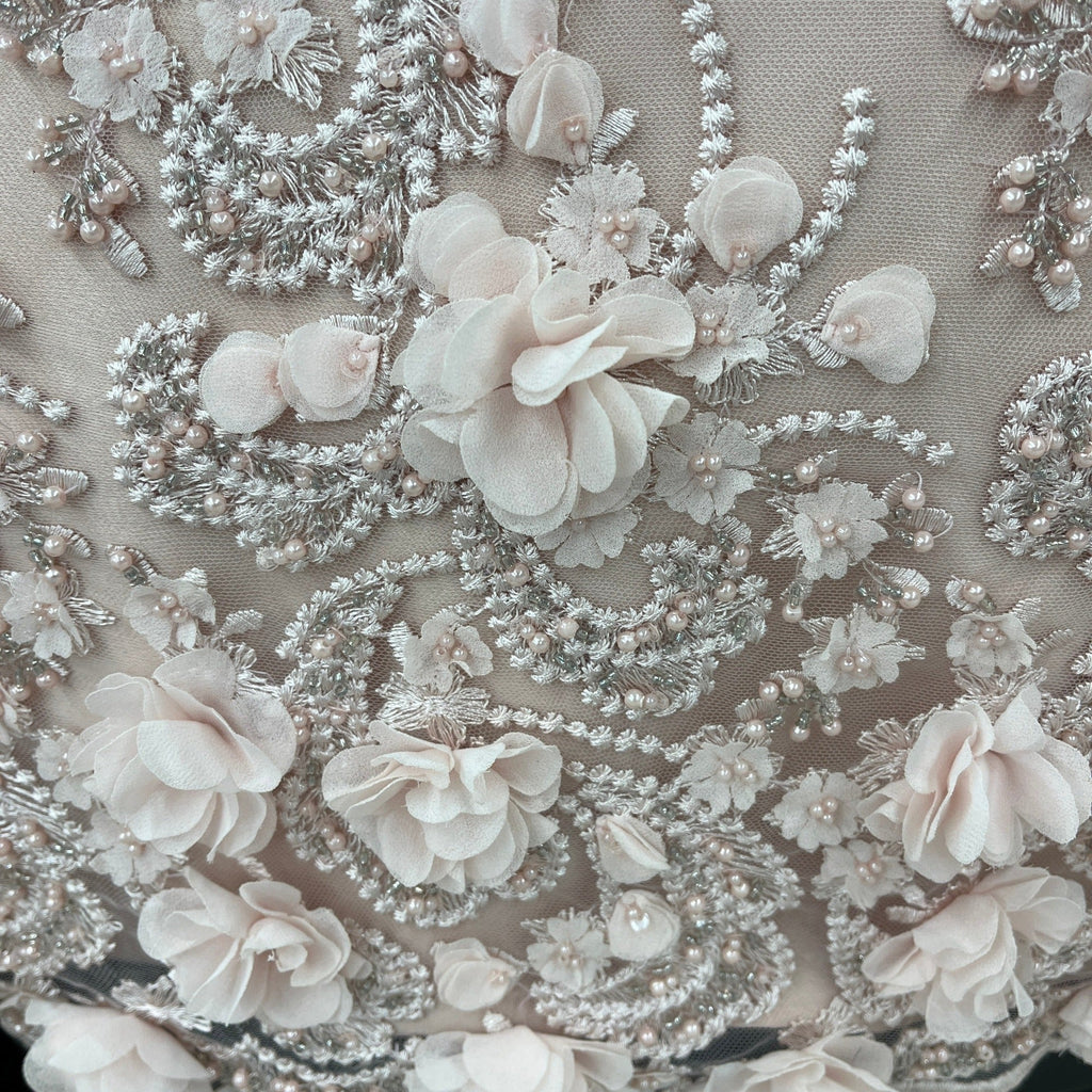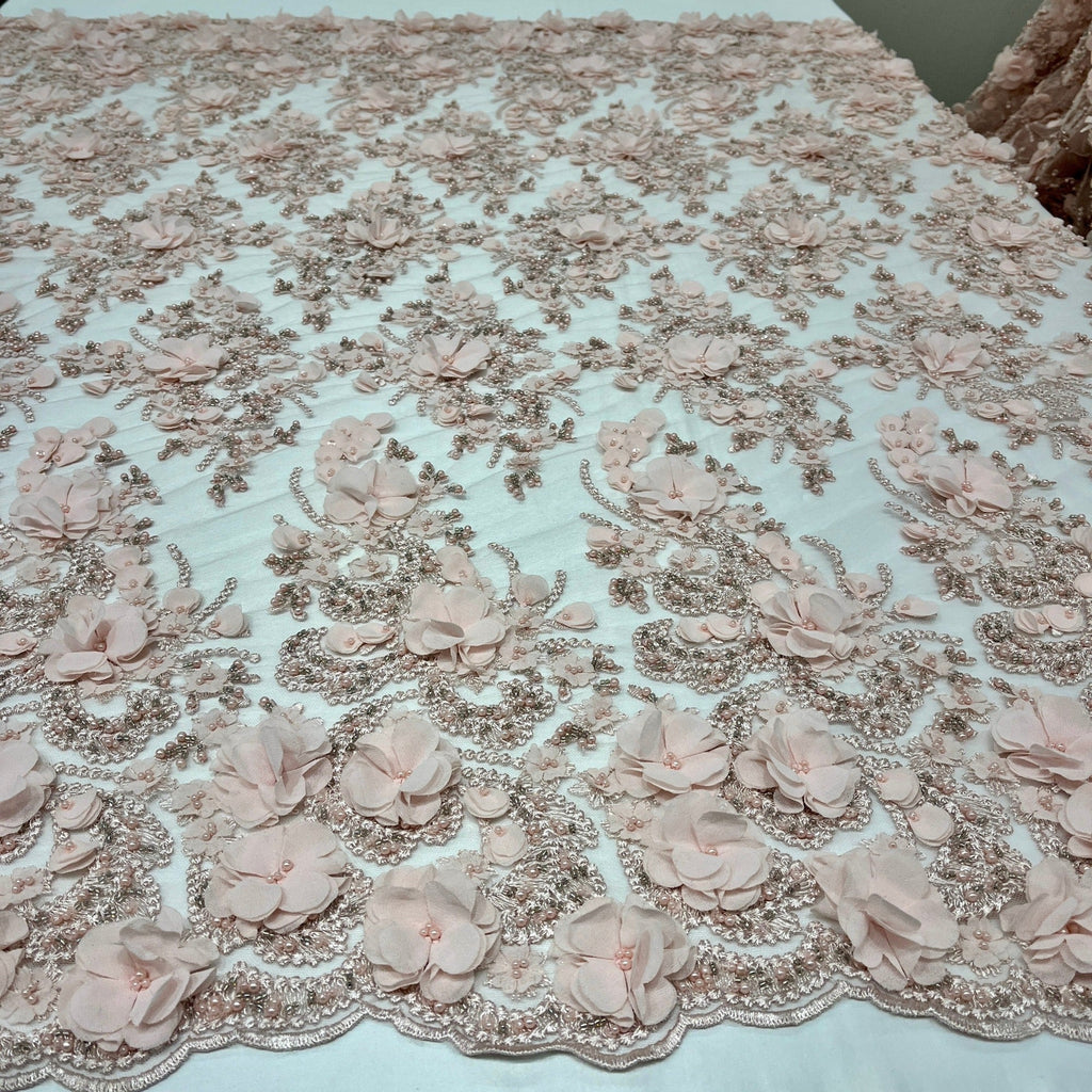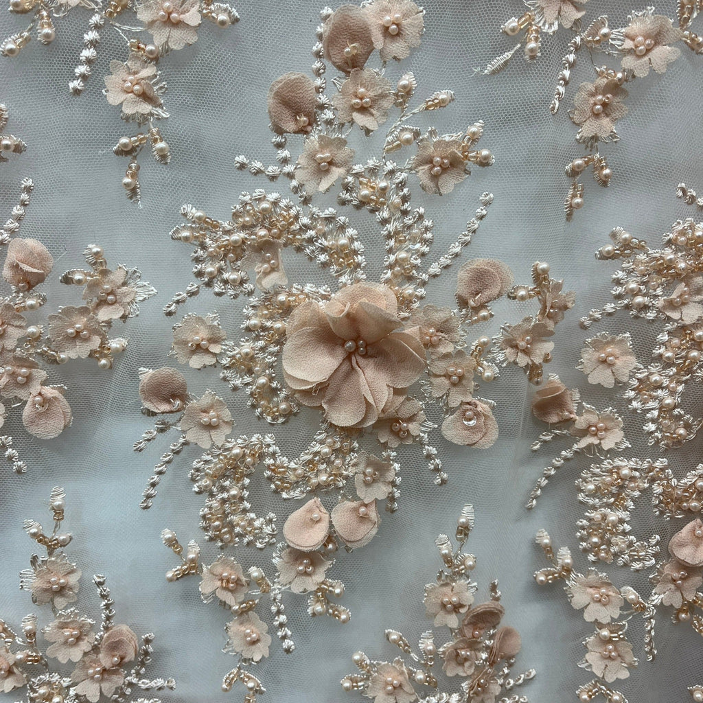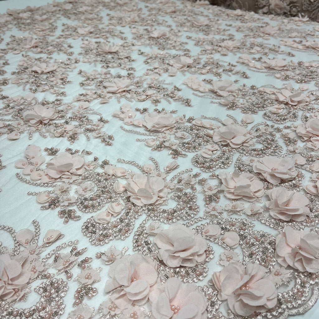 Beaded 3D Floral Lace Fabric Embroidered on 100% Polyester Net Mesh | Lace USA - GD-362