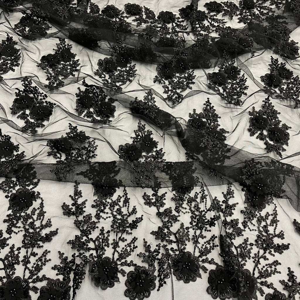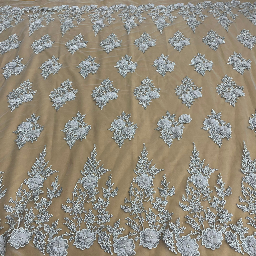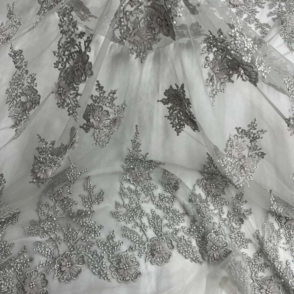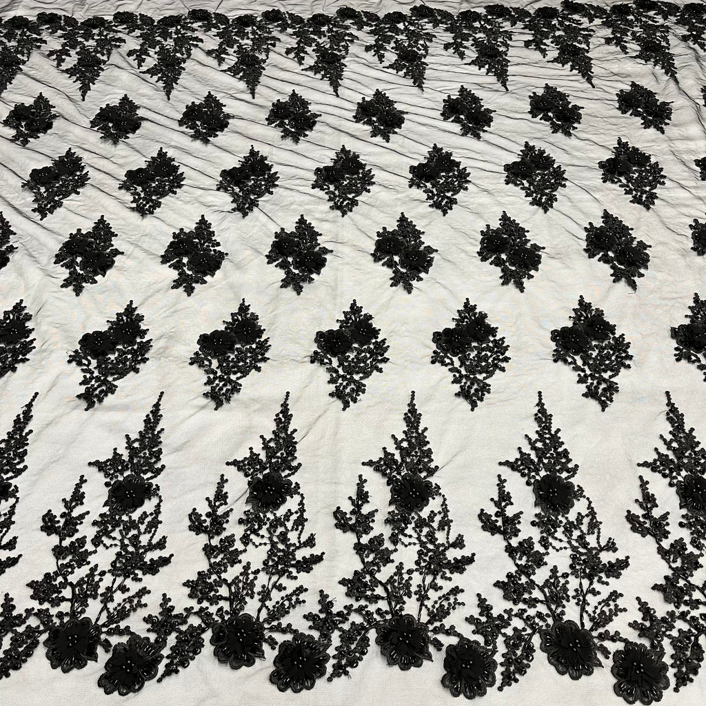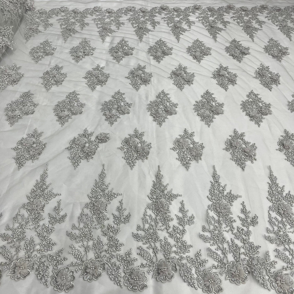 Beaded 3D Floral Lace Fabric Embroidered on 100% Polyester Net Mesh | Lace USA - GD-75