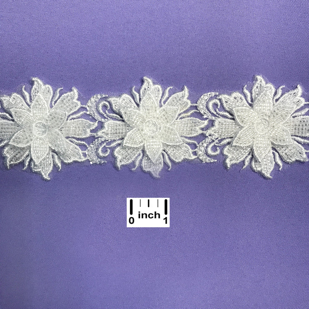 Beaded 3D Floral Lace Trimming Embroidered on 100% Polyester Net Mesh | Lace USA - 73037W-HB