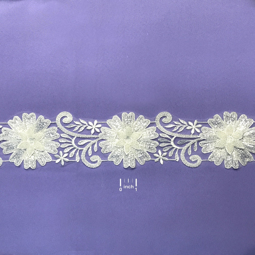 Beaded 3D Floral Lace Trimming Embroidered on 100% Polyester Net Mesh | Lace USA - 73040W-HB