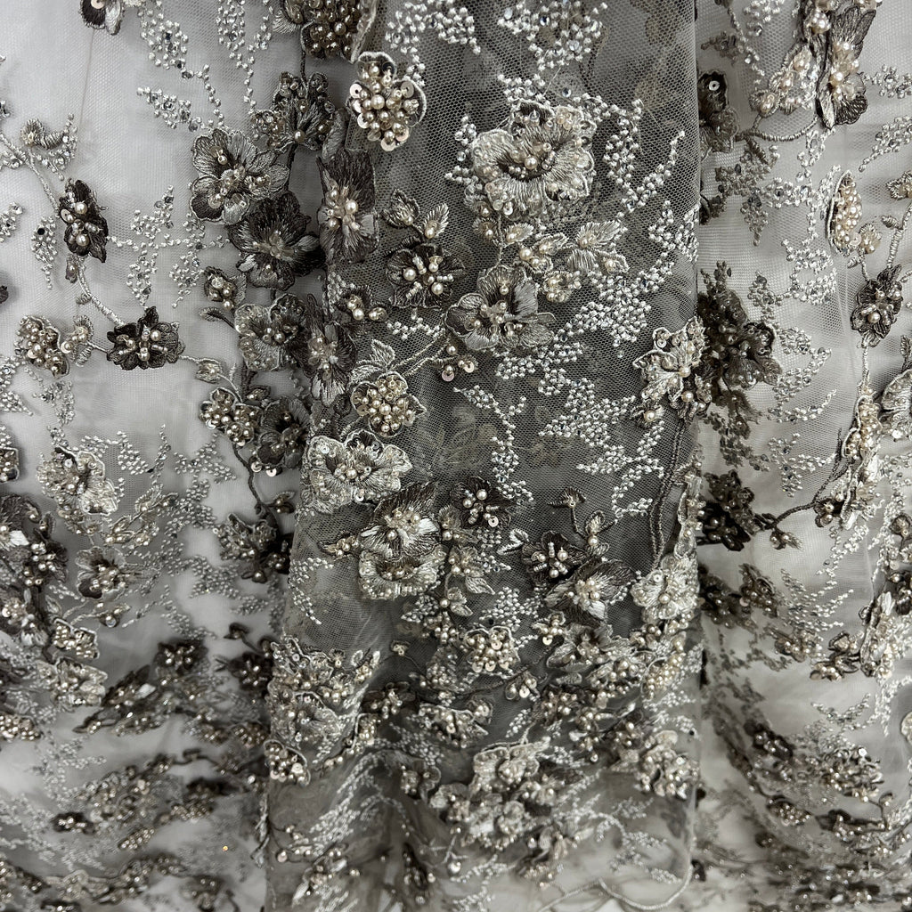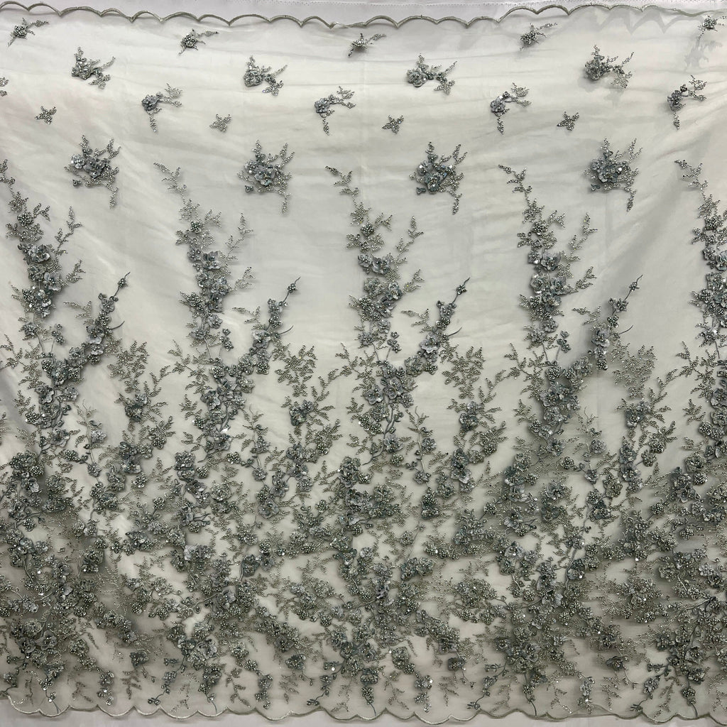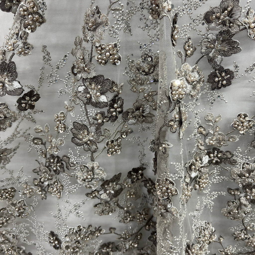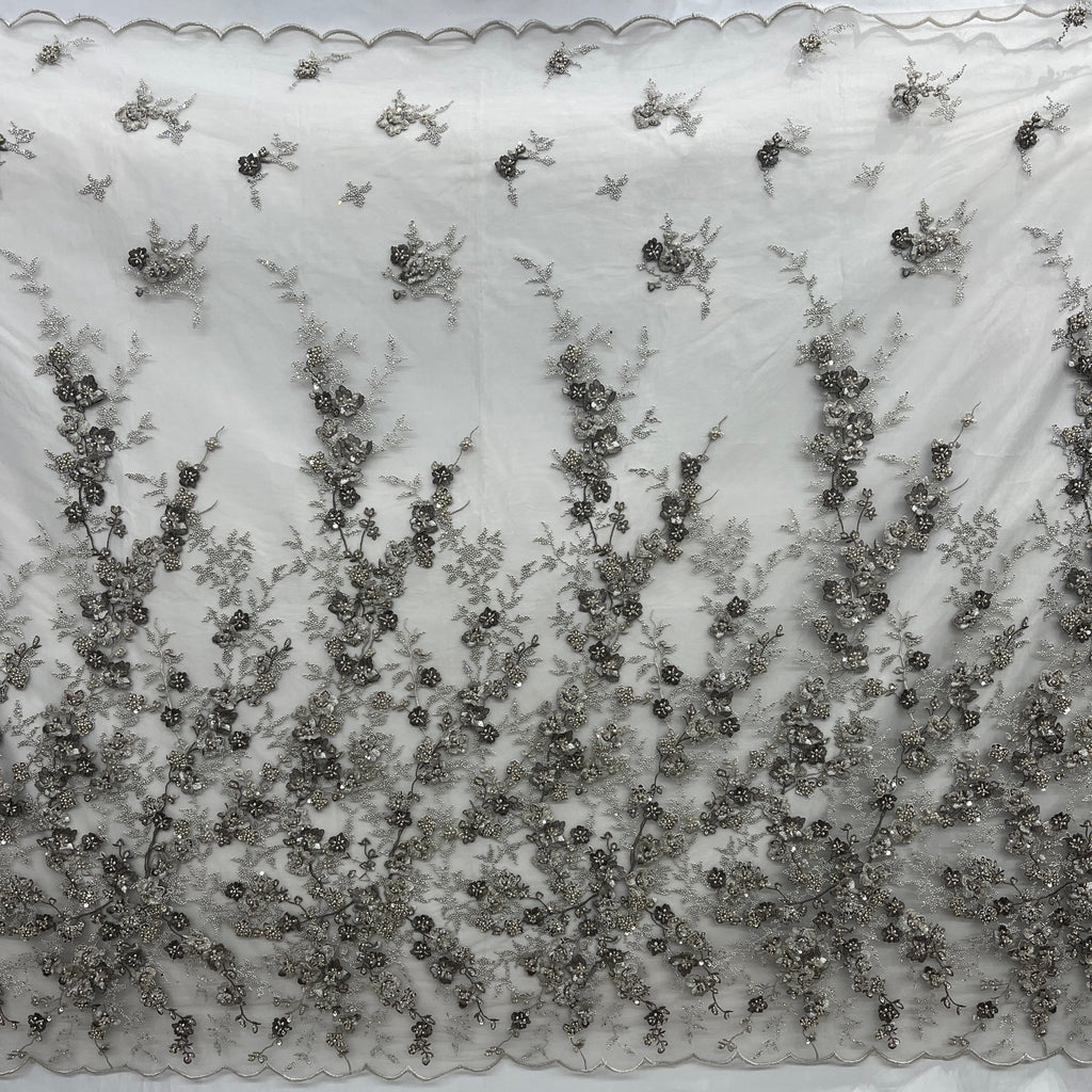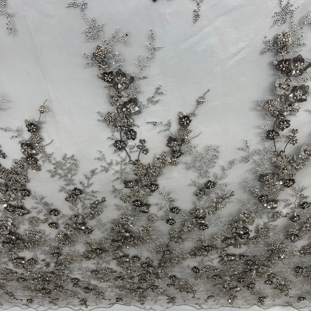 Beaded 3D Floral Multitone Lace Fabric Embroidered on 100% Polyester Net Mesh | Lace USA - GD-19127