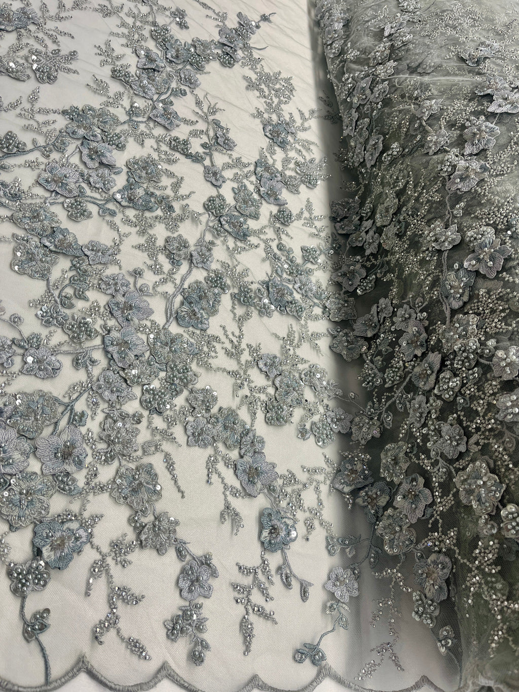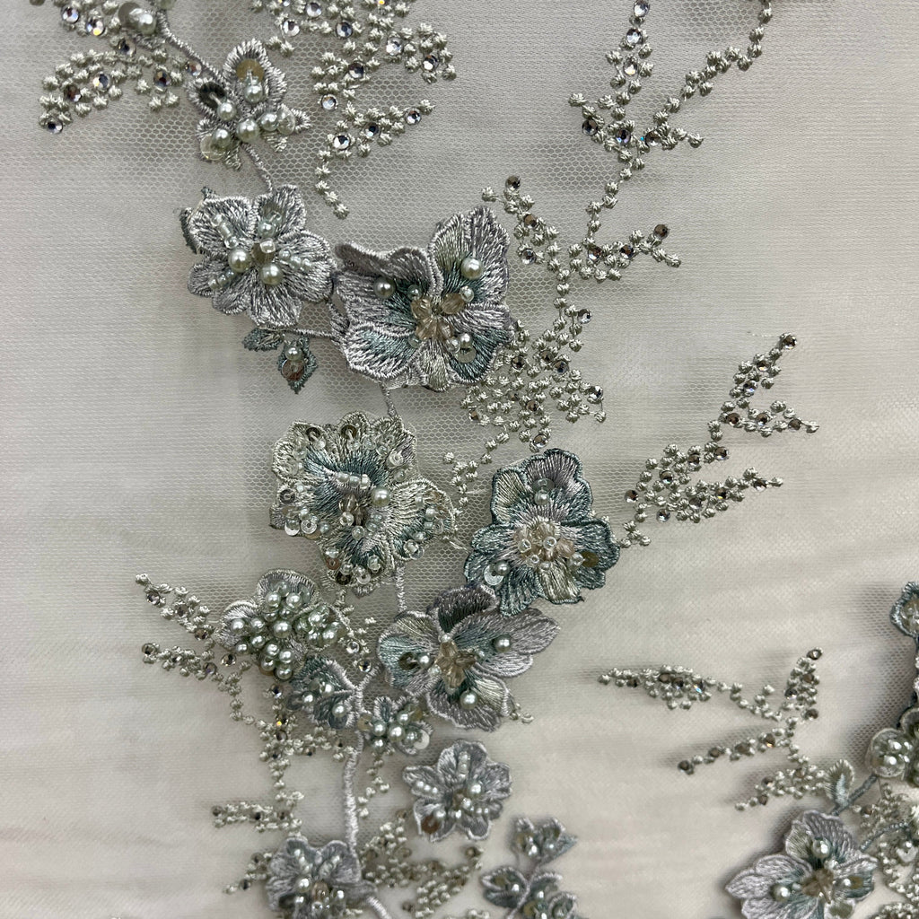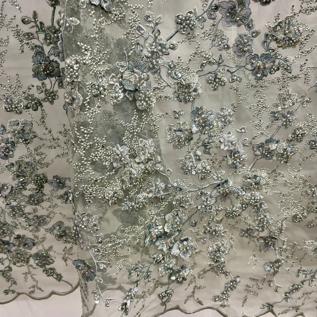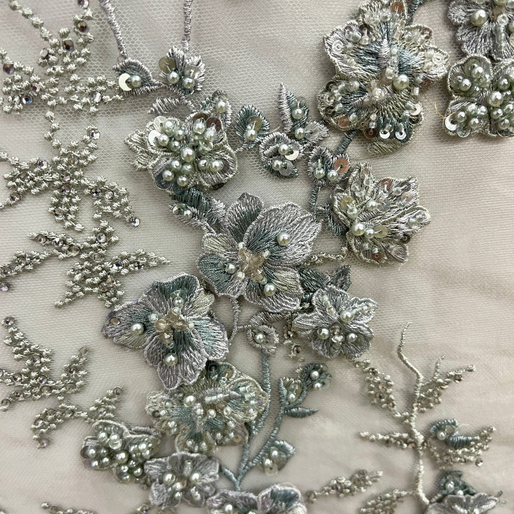 Beaded 3D Floral Multitone Lace Fabric Embroidered on 100% Polyester Net Mesh | Lace USA - GD-19127