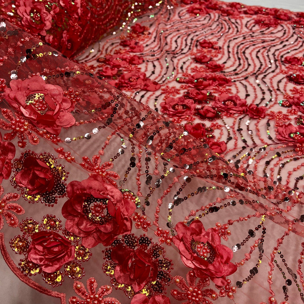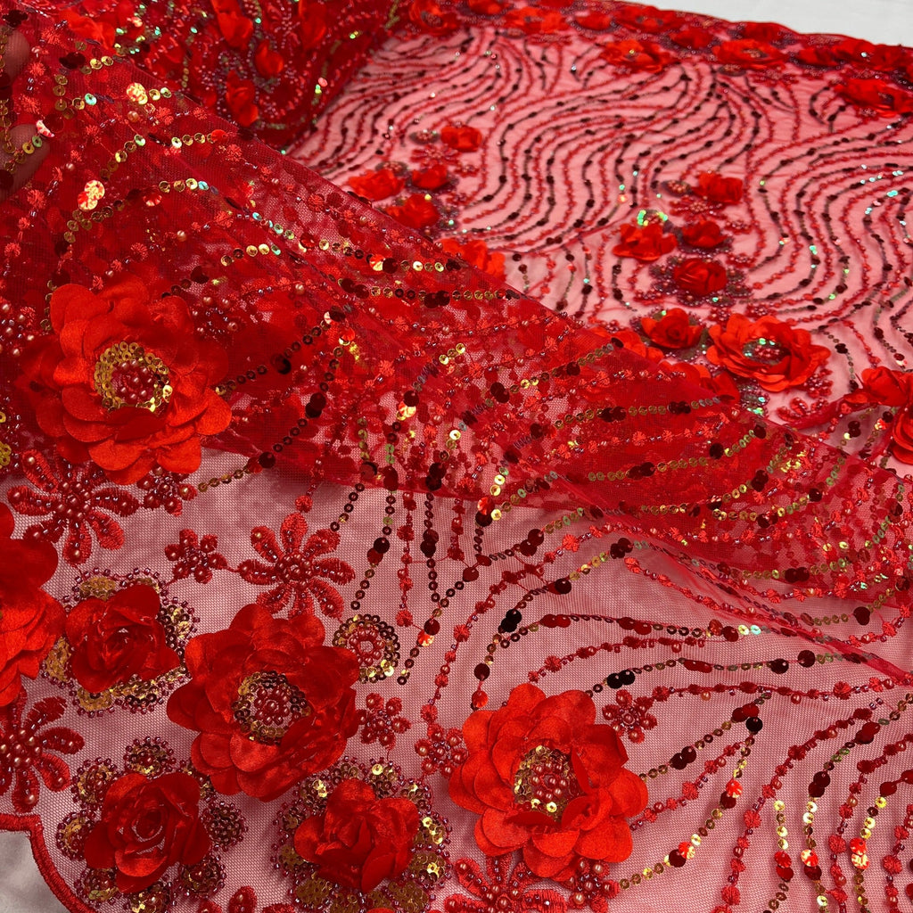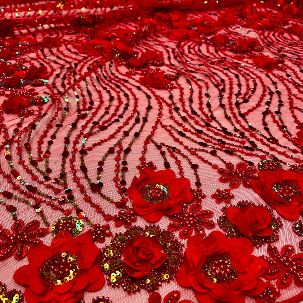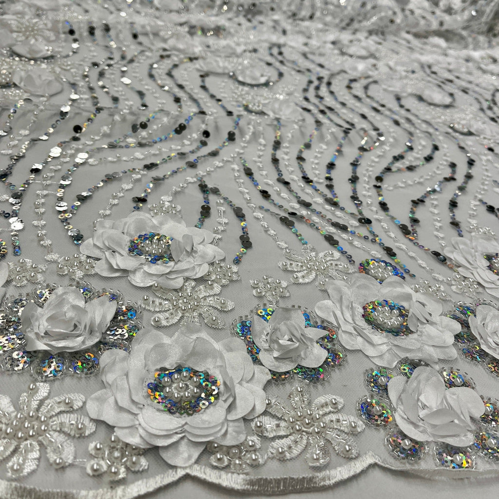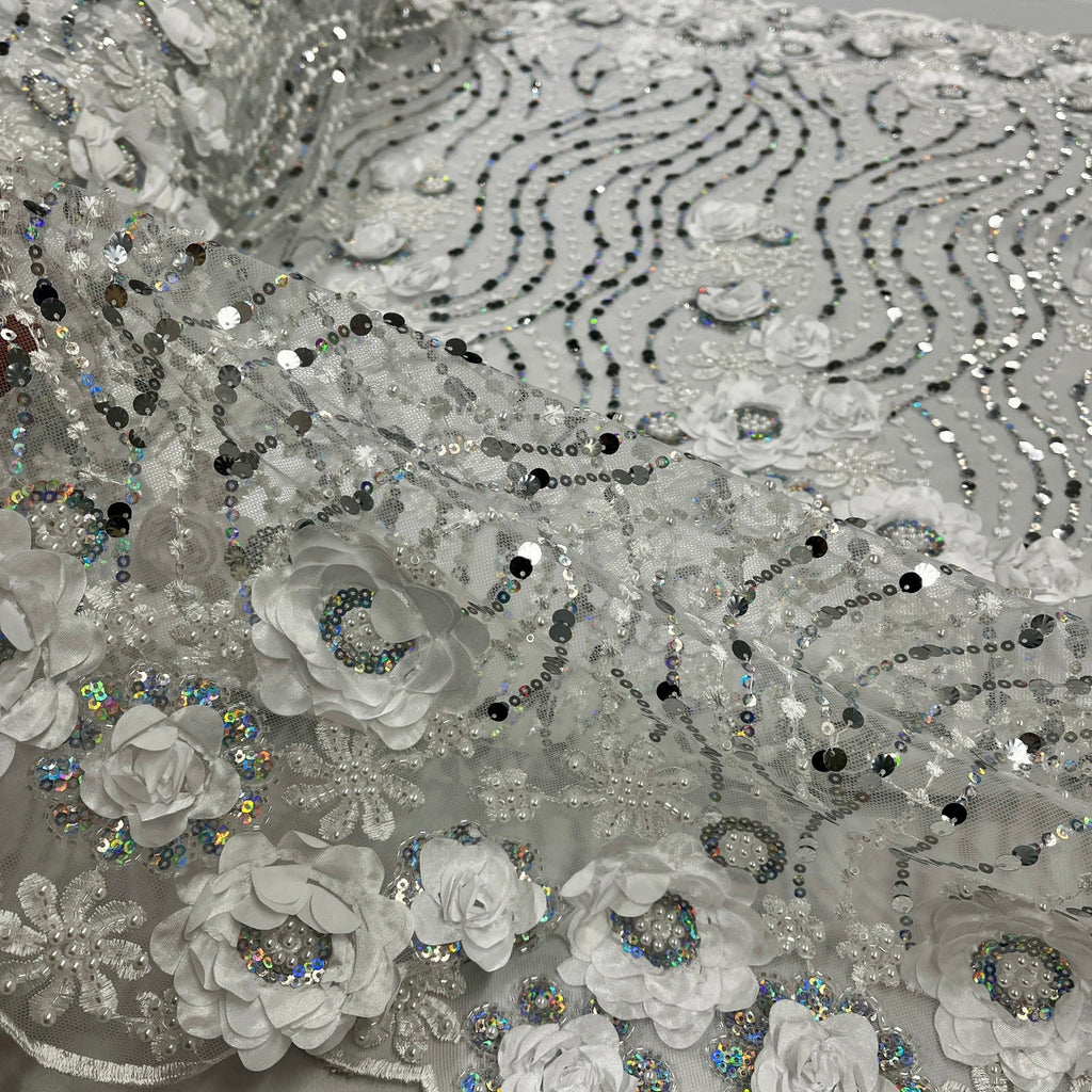 Beaded and Sequined 3D Floral Sparkling Lace Fabric Embroidered on 100% Polyester Net Mesh | Lace USA - GD-2212