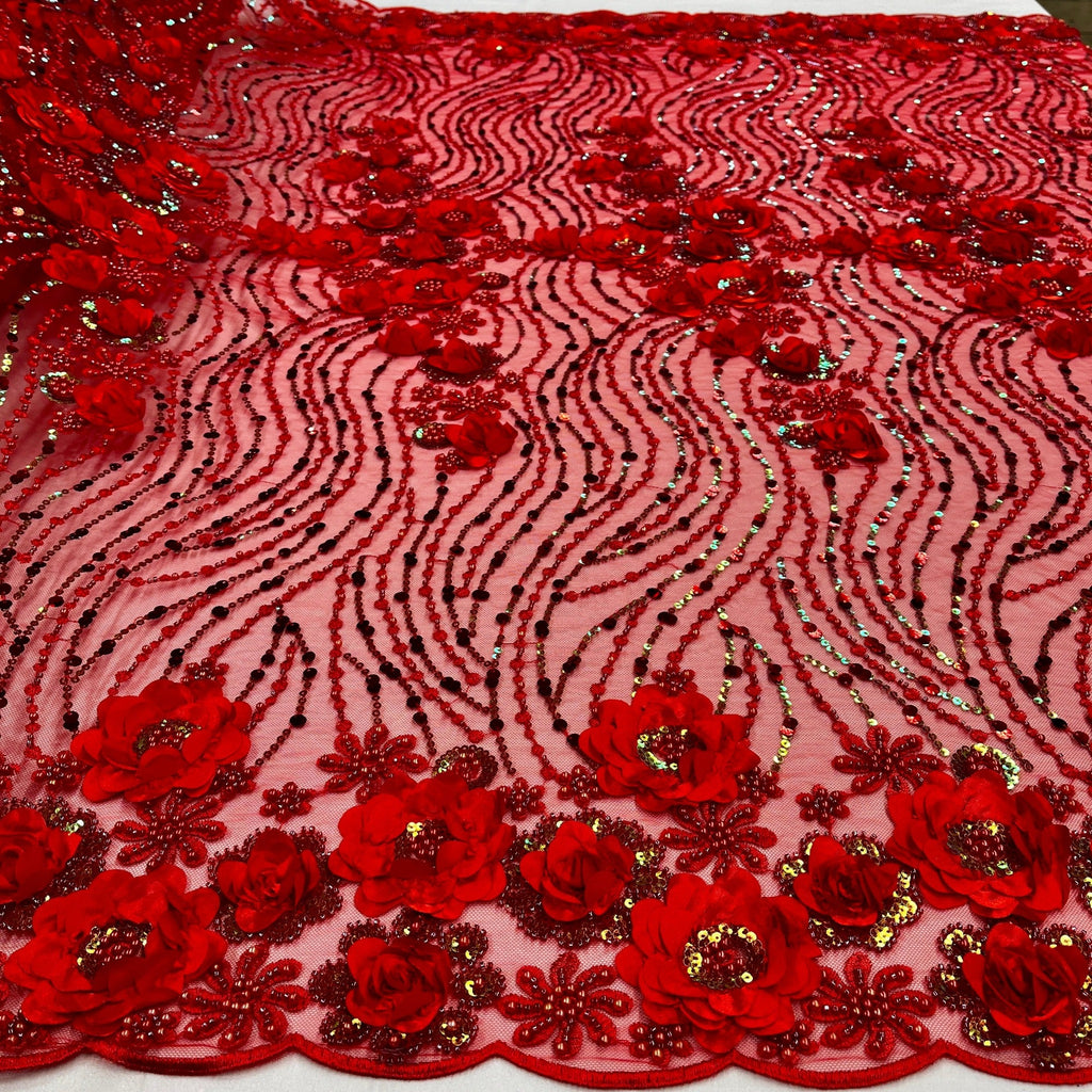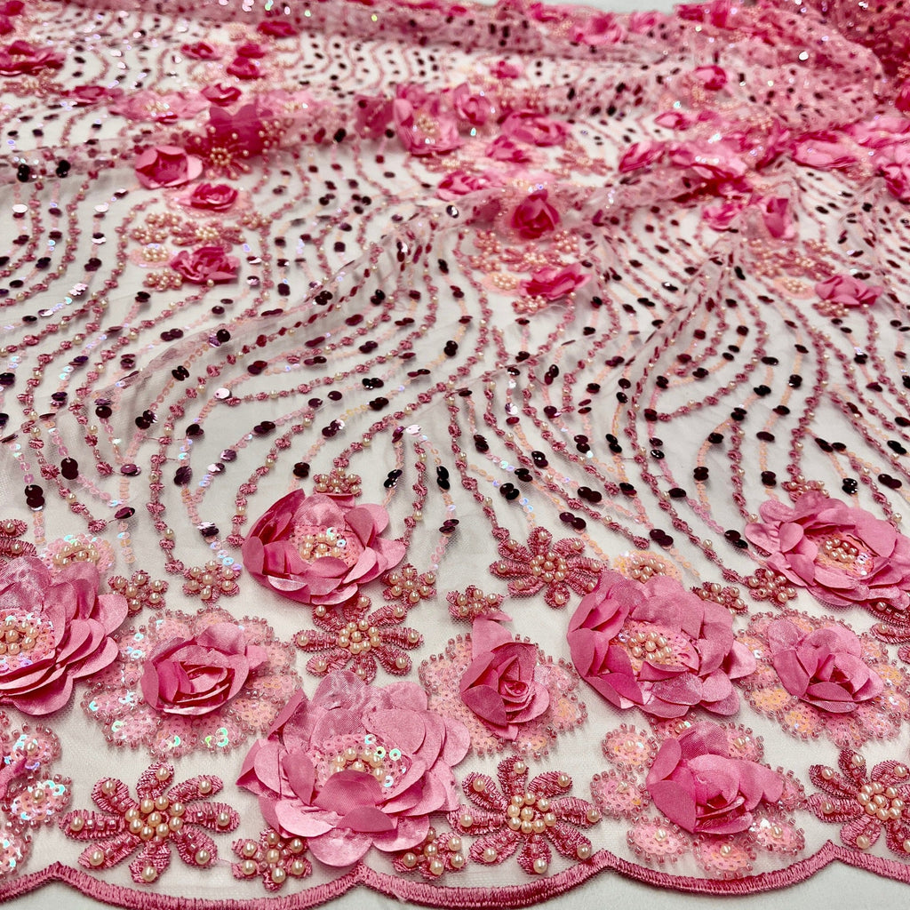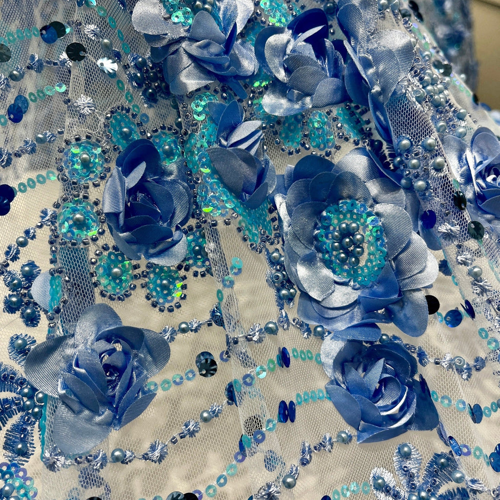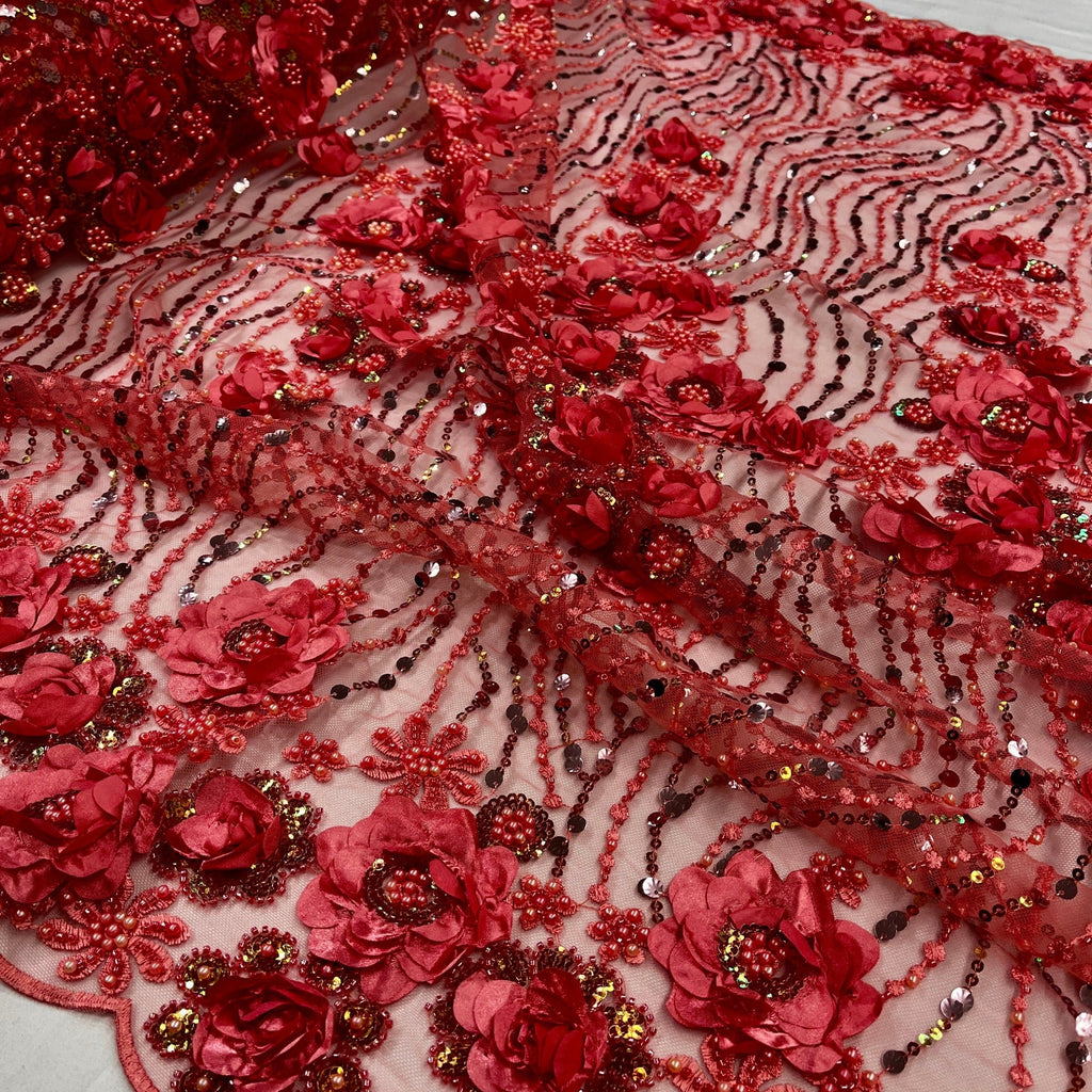 Step into a world of romance with our exquisite Beaded 3D Floral Lace Fabric. Crafted with care on 100% Polyester Net Mesh, this luxurious fabric is perfect for bringing your couture dreams to life. Immerse yourself in the beauty of our stunning Beaded 3D lace fabric, designed to dazzle on special occasions. From breathtaking couture lace to intricate bridal and evening dress lace, the possibilities are endless. Elevate your quinceanera dress with our Beaded 3D bridal and quinceanera lace, and let heads turn with our eye-catching dance costume lace. Add a touch of sophistication and elegance to any project with our exquisite Beaded embroidered lace. Whether it's a special occasion or a decorative masterpiece, our Decorative beaded 3D lace is sure to inspire. Indulge in the ultimate elegance with our high-quality fabric. With a rainbow of 8 beautiful colors, each with an extra sparkle, you have the power to create your perfect look. Don't wait, step into enchantment today! Approx. 52" Wide / Ships Within 24 Business Hours.