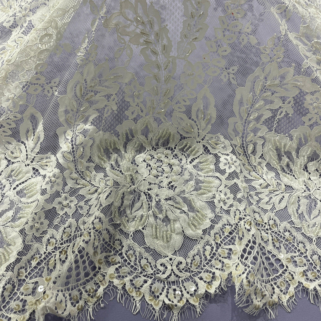 Beaded Chantilly Embroidered Lace Fabric with Eyelash Scallop - 3 Yards | Lace USA - GD-316