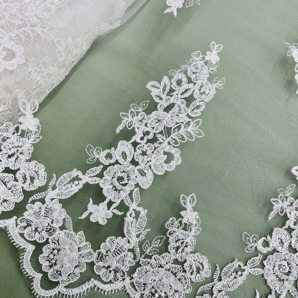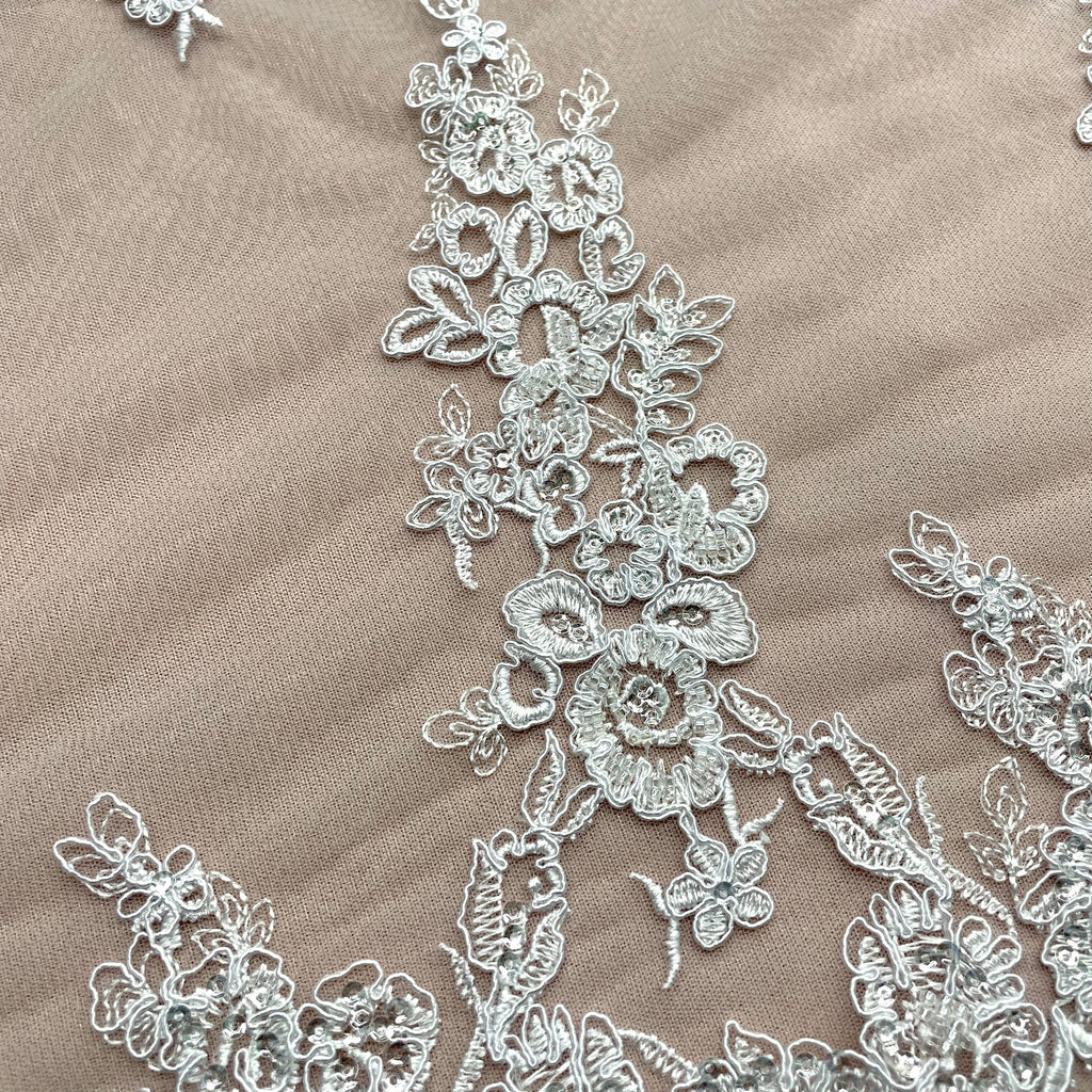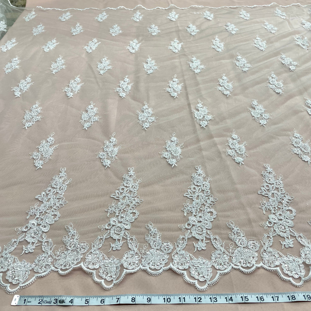 Beaded & Corded Bridal Lace Fabric Embroidered on 100% Polyester Net Mesh | Lace USA - 91443W-HB