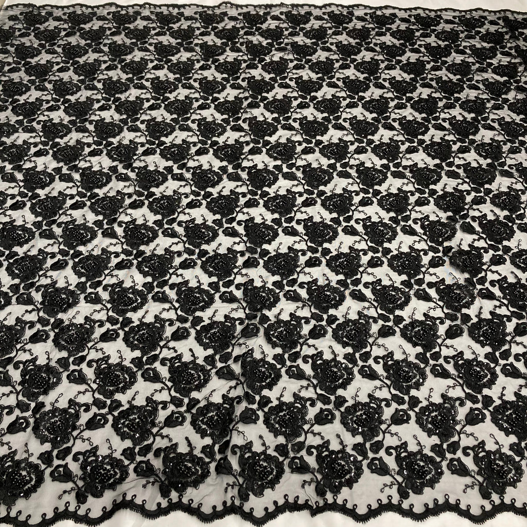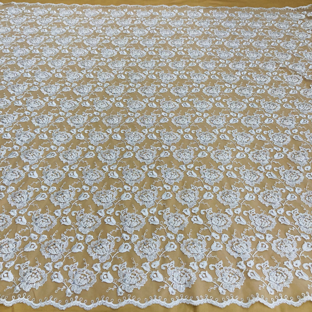 Beaded & Corded Bridal Lace Fabric Embroidered on 100% Polyester Net Mesh | Lace USA - 95163W-BP