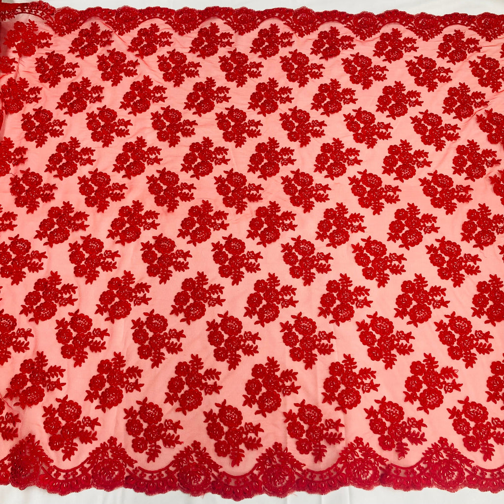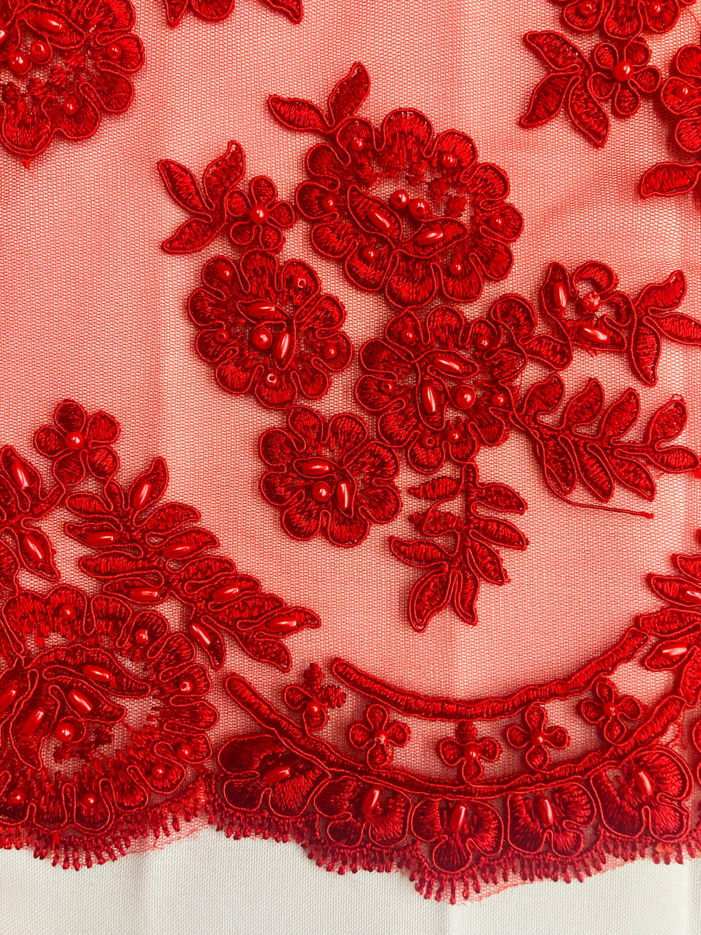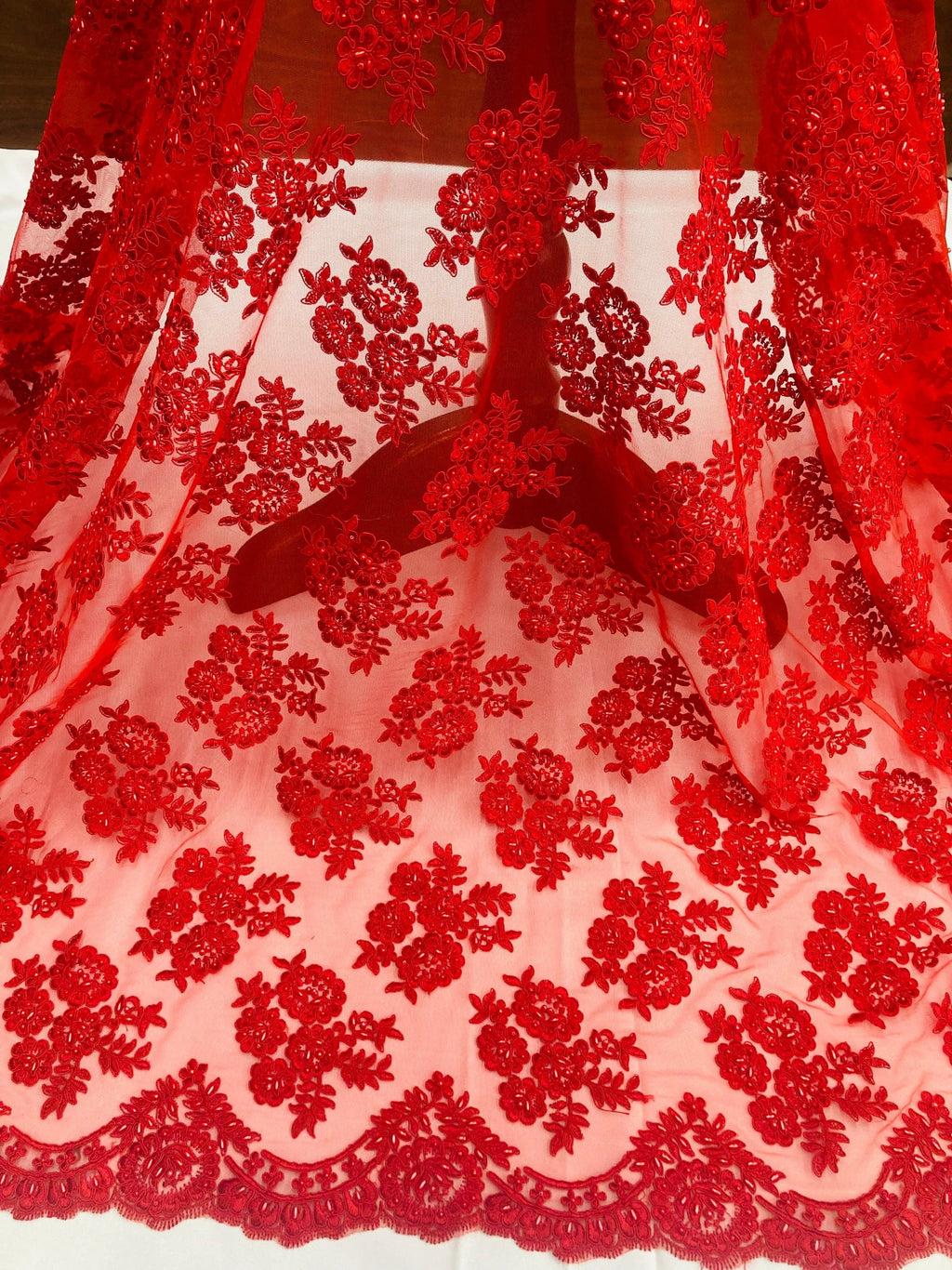 Introducing the finest quality Beaded & Corded Bridal Lace Fabric Embroidered on 100% Polyester Net Mesh. Every material used is of the highest quality and carefully crafted to create a luxurious finish. Whether you need it for a wedding dress, evening gown, quinceanera dress, dance costume, or special occasion dress, this fabric is sure to make you look fabulous. This fabric features beautiful beaded lace fabric and corded couture lace that adds an extra touch of elegance and sophistication to any outfit. The embroidered details in both beaded and corded bridal lace are sure to make your evening dress extra special. And for a classic quinceanera dress, decorate it with the ornate corded lace option. The beaded dance costume lace is perfect for a night of dancing in style. Whatever your occasion, the beaded embroidered lace can make any ensemble truly stand out. Accentuate your look with one of our many elegant corded and beaded laces. Whether you need decorative corded lace, decorative beaded lace, elegant corded lace, or elegant beaded lace, we have it all. Our exquisite laces are the perfect choice for any special occasion! Experience the beauty, luxury, and comfort of Beaded & Corded Bridal Lace Fabric Embroidered on 100% Polyester Net Mesh. Approximately 48" Wide / Ships Within 24 Business Hours Colors: This product comes in 2 different colors.