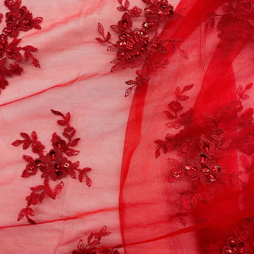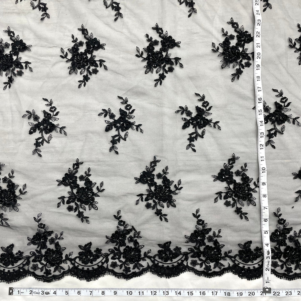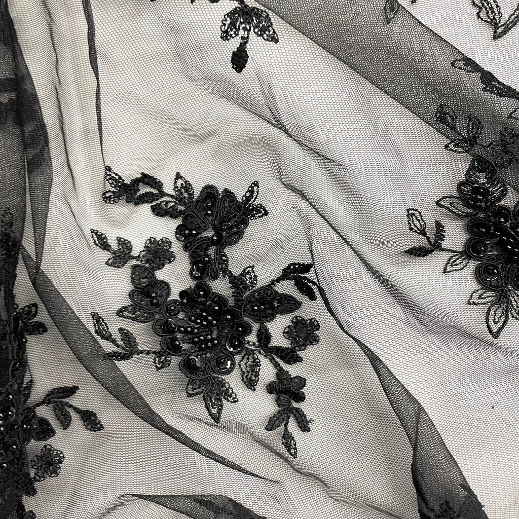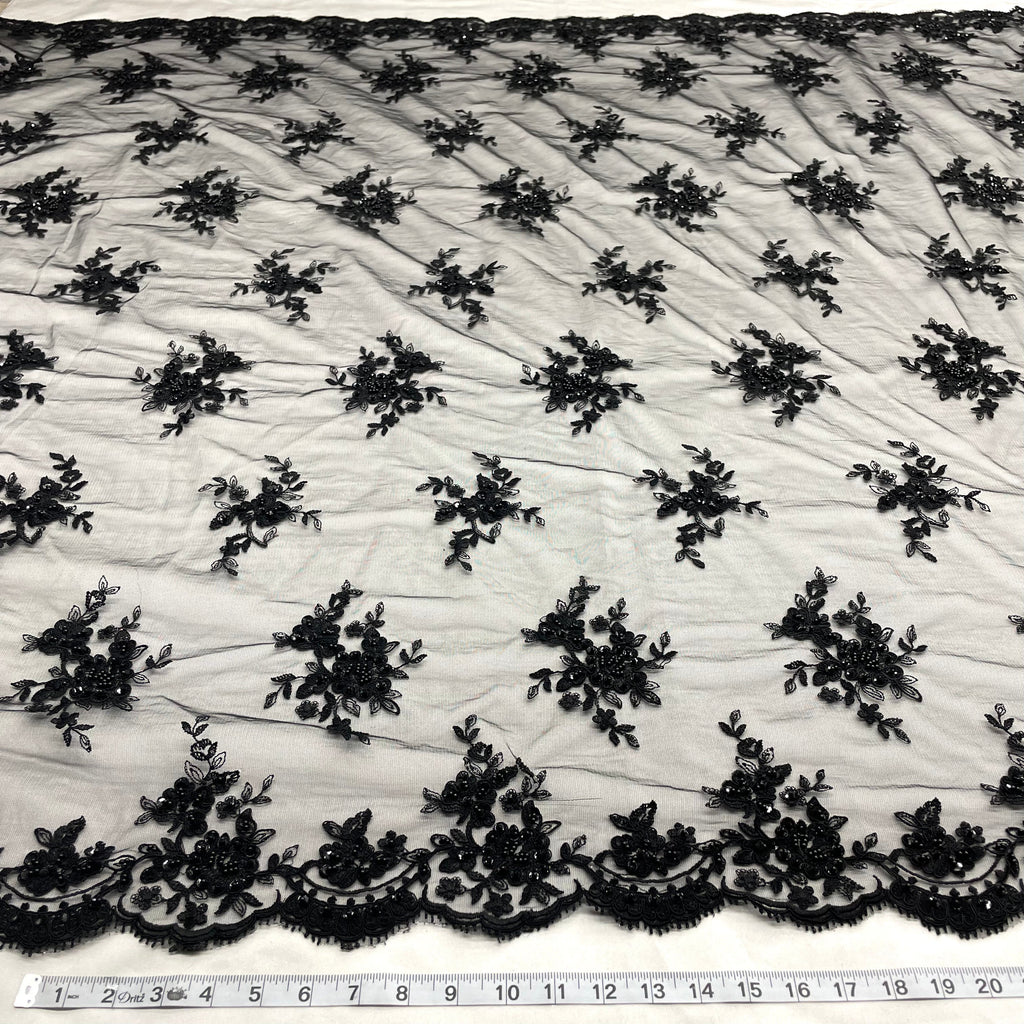 Beaded & Corded Bridal Lace Fabric Embroidered on 100% Polyester Net Mesh | Lace USA - 96519W-BP