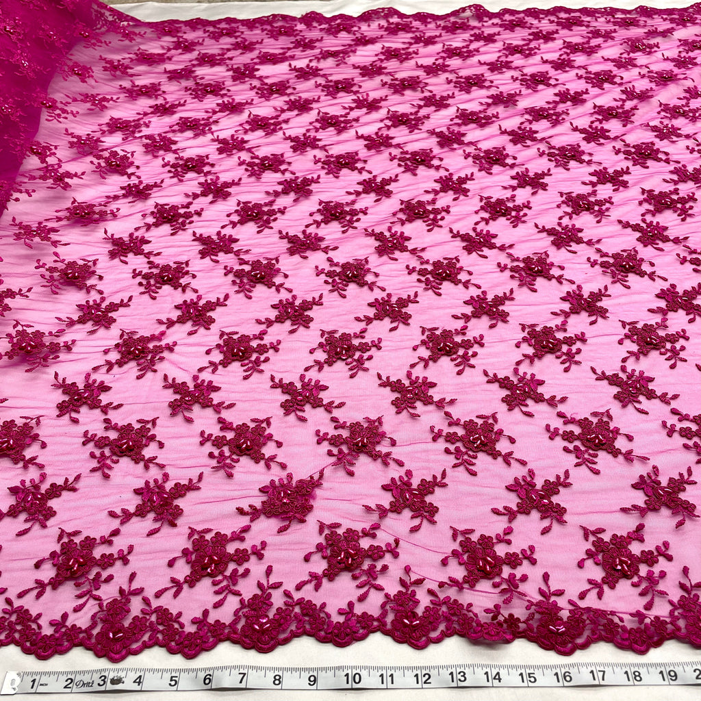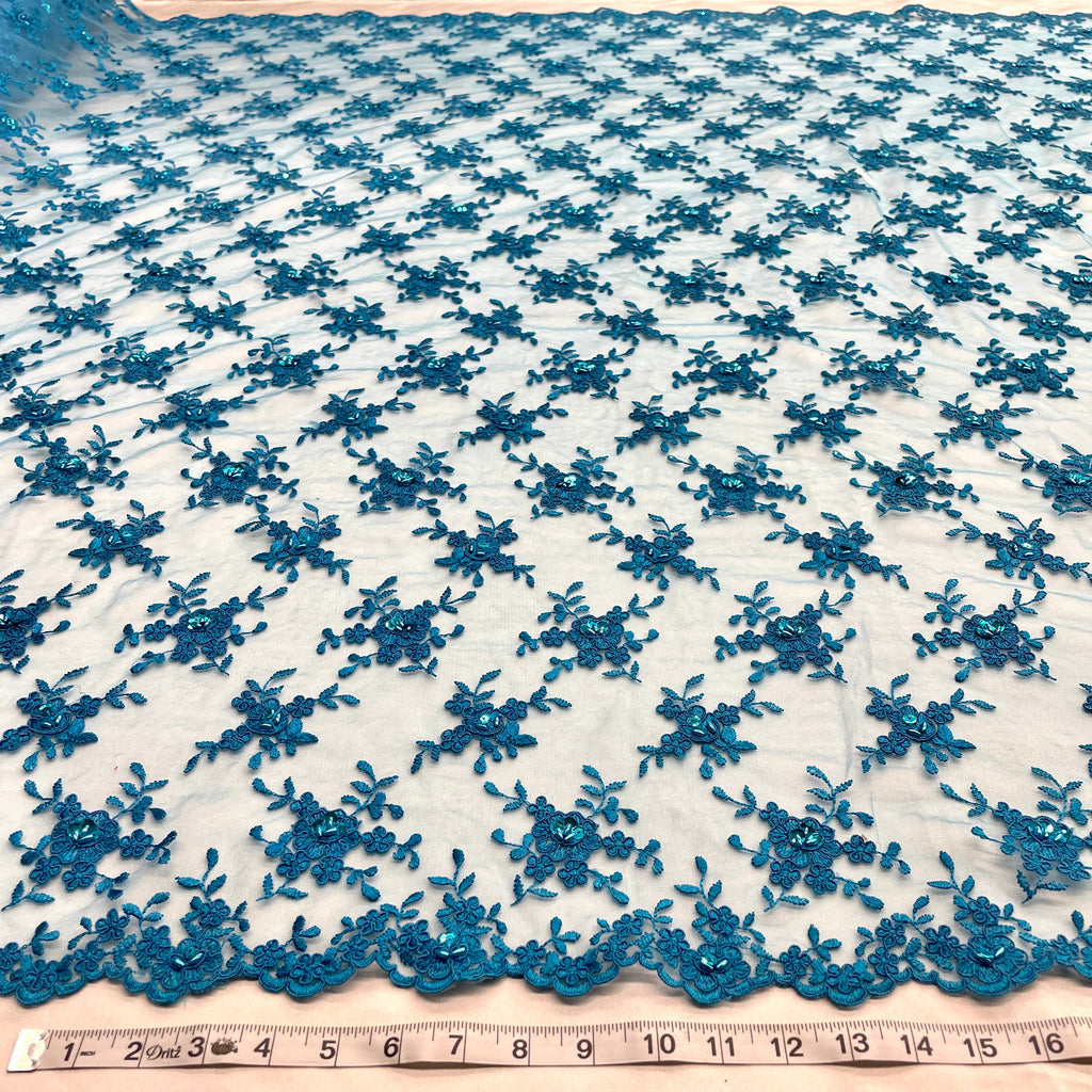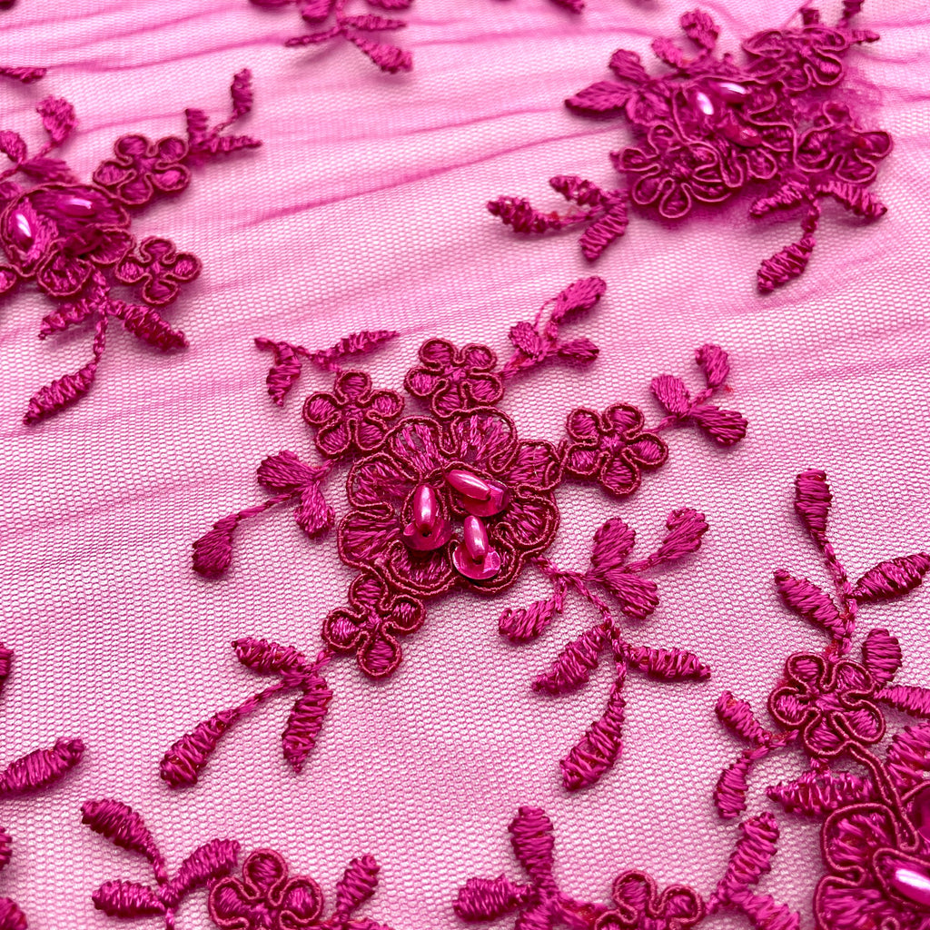 Introducing our exquisite Beaded & Corded Lace Fabric, the perfect way to add a touch of opulence to any special occasion. Handmade with the highest quality of 100% polyester net mesh, our beautiful lace is intricately embroidered with pearls and beads for a luxurious couture look. Perfect for adding a unique touch of elegance to bridal gowns, evening dresses, quinceanera, and dance costumes, our gorgeous lace will make you feel like royalty. Our stunning corded lace lends texture and detail to an important day or event with its intricate detail. Whether you’re looking for French Lace, Alencon Lace, sequin, beaded, or corded accents, we have the perfect combination for your needs. Our piece will bring new life to any look and features five different colors that are available for you to choose from. Experience the luxury of our Beaded & Corded Lace Fabric and discover beauty you won’t find anywhere else. From elegant beaded lace to decorative corded lace, each piece is guaranteed to provide grace and style to your special occasion. Shop our selection now and transform any look into an unforgettable experience. Approximately 52" Wide / Ships Within 24 Business Hours. Colors: This product comes in 5 different colors.