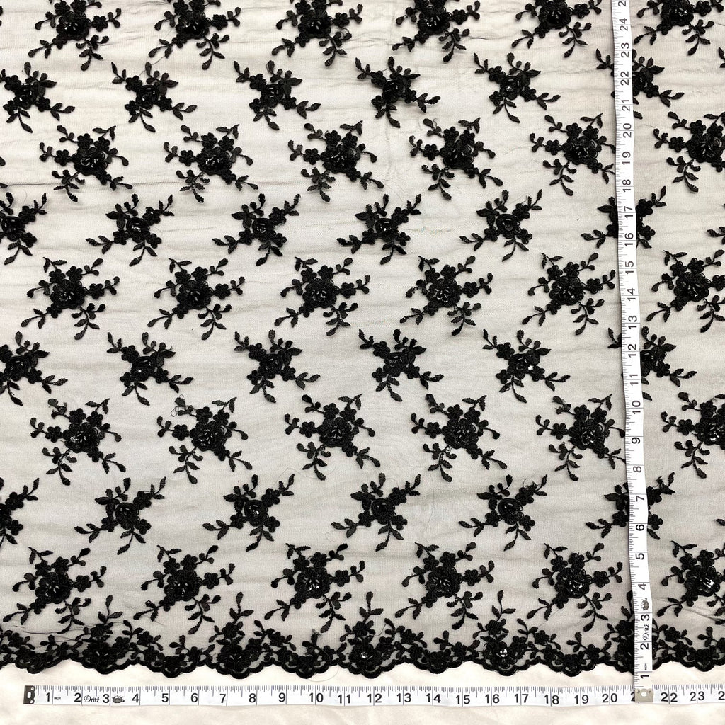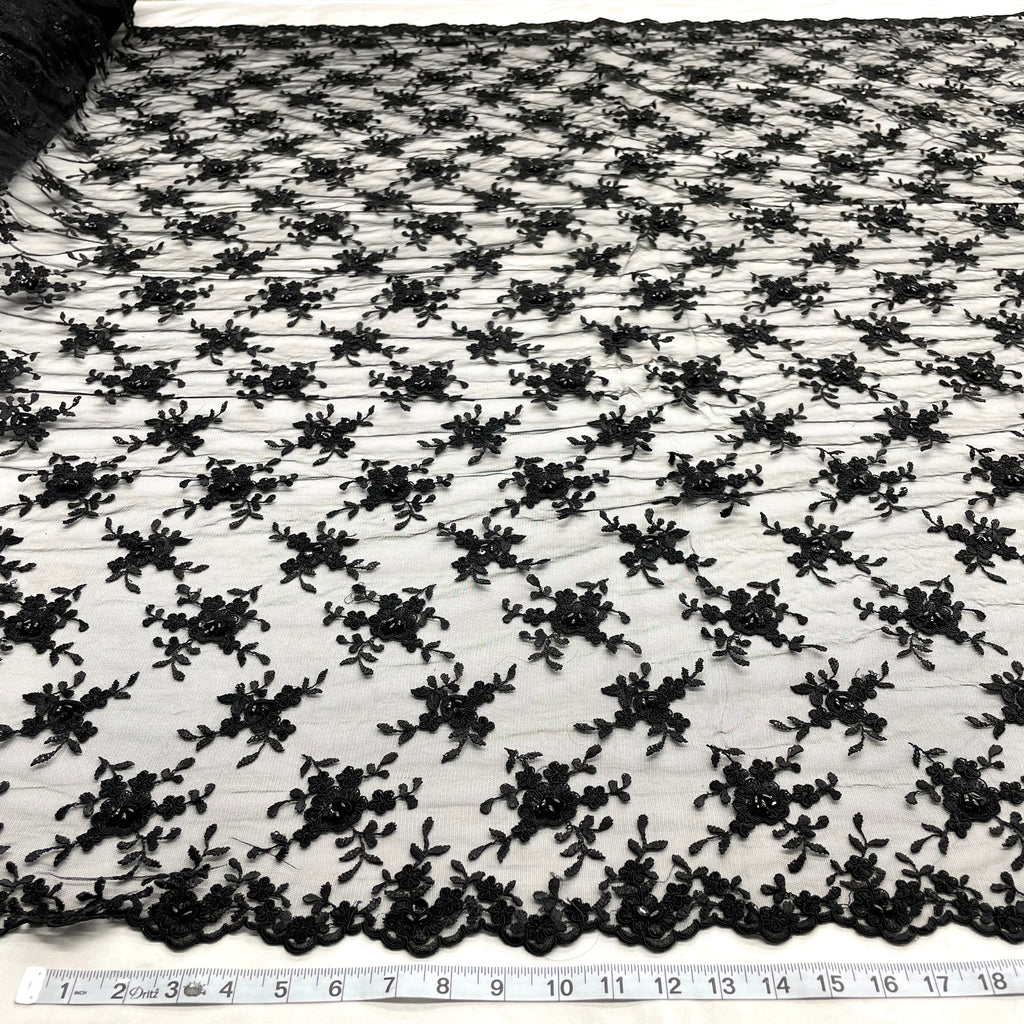Beaded & Corded Bridal Lace Fabric Embroidered on 100% Polyester Net Mesh | Lace USA - 96646W-BP
