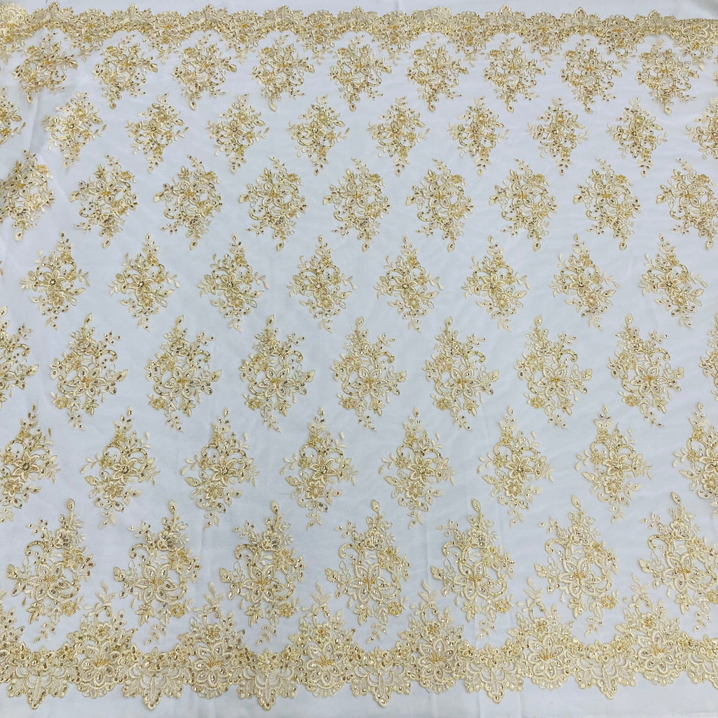 Beaded & Corded Bridal Lace Fabric Embroidered on 100% Polyester Net Mesh | Lace USA - 96983W-HB