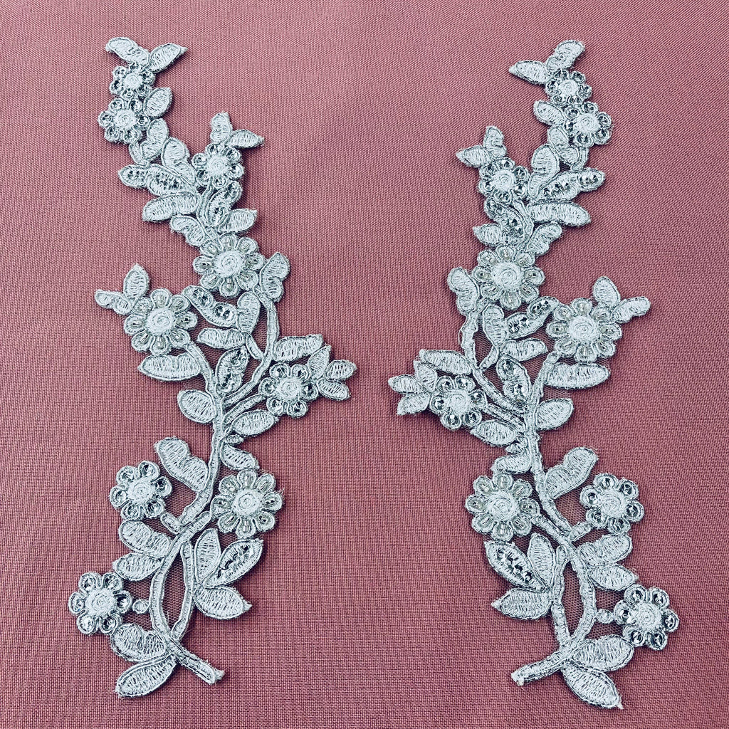 Handmade, high quality Beaded & Corded Floral Lace Applique Embroidered on 100% Polyester Mesh  . Durable heavy weight fabric. Beautiful on wedding dresses, evening gowns, dance costumes, and more.