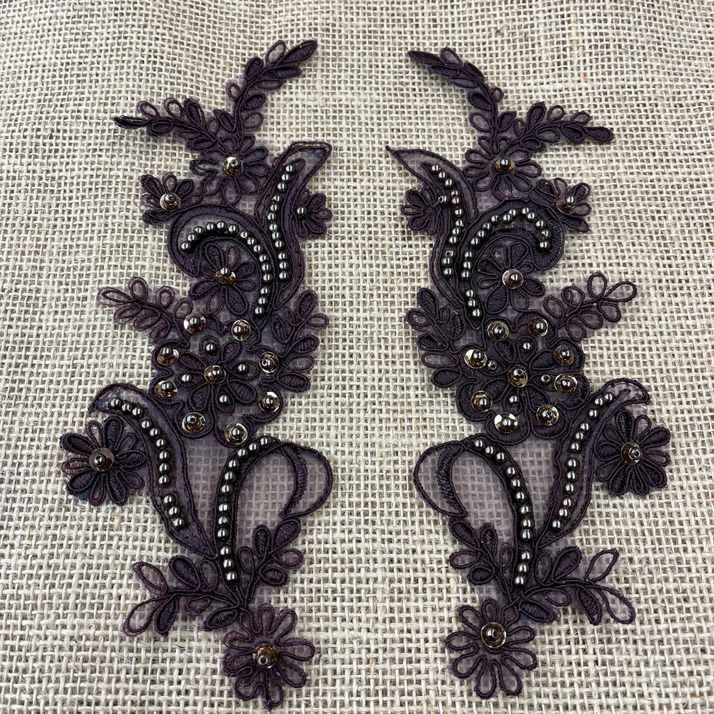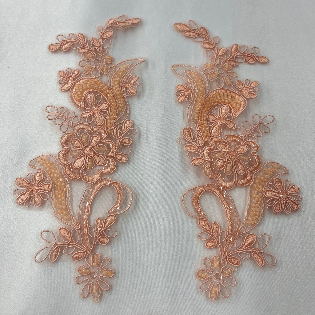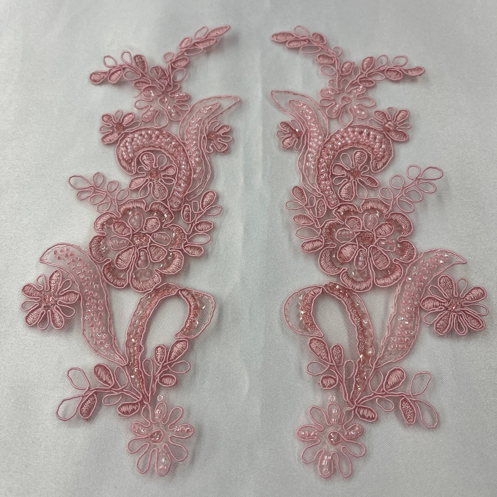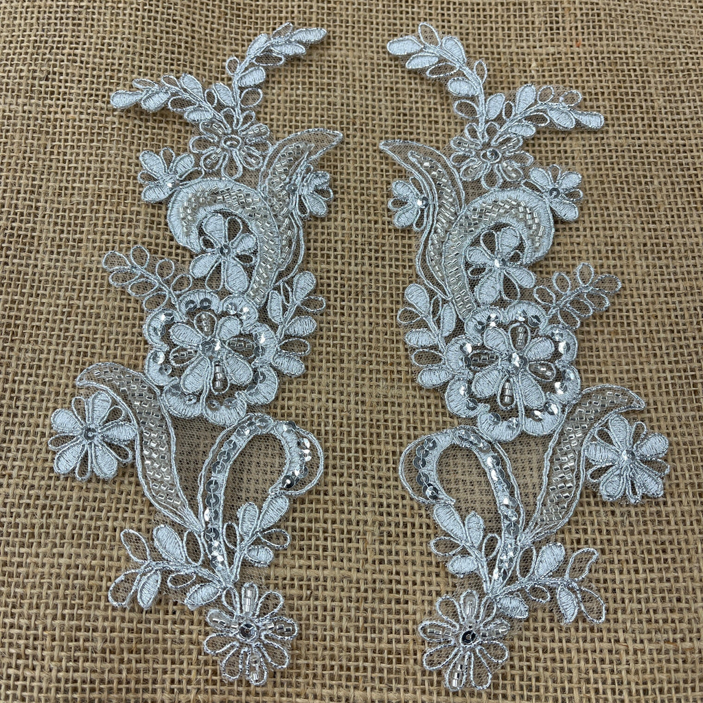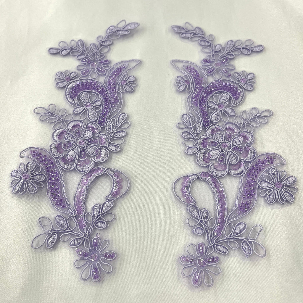 Beaded & Corded Floral Lace Applique Embroidered on 100% Polyester | Lace USA - KZ-67