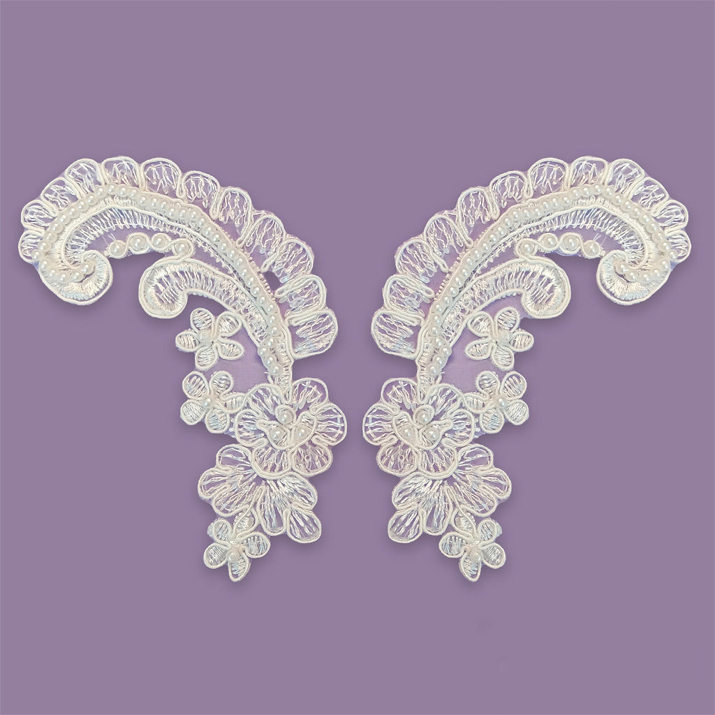 Beaded & Corded Floral Lace Applique Embroidered on 100% Polyester Net Mesh | Lace USA - 90156W-BP