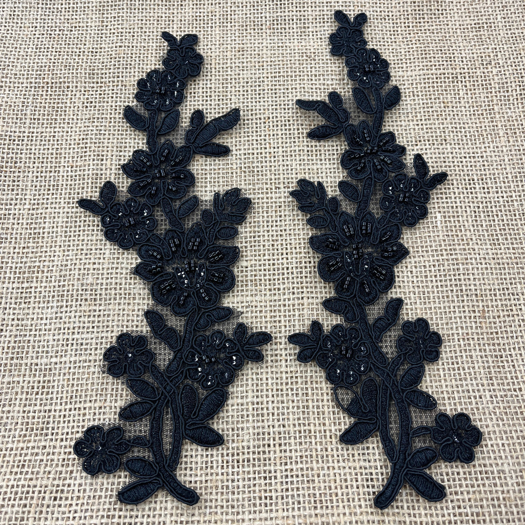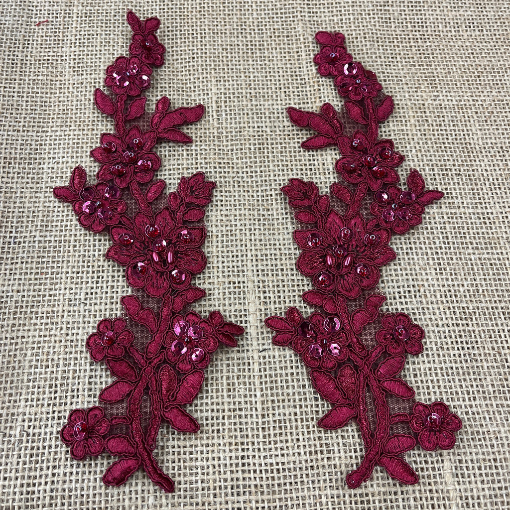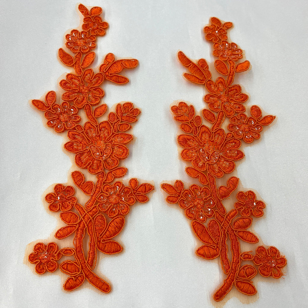 Handmade, high quality Beaded & Corded Floral Lace Applique Embroidered on 100% Polyester Net Mesh. Durable heavy weight fabric. Beautiful on wedding dresses, evening gowns, dance costumes, and more.