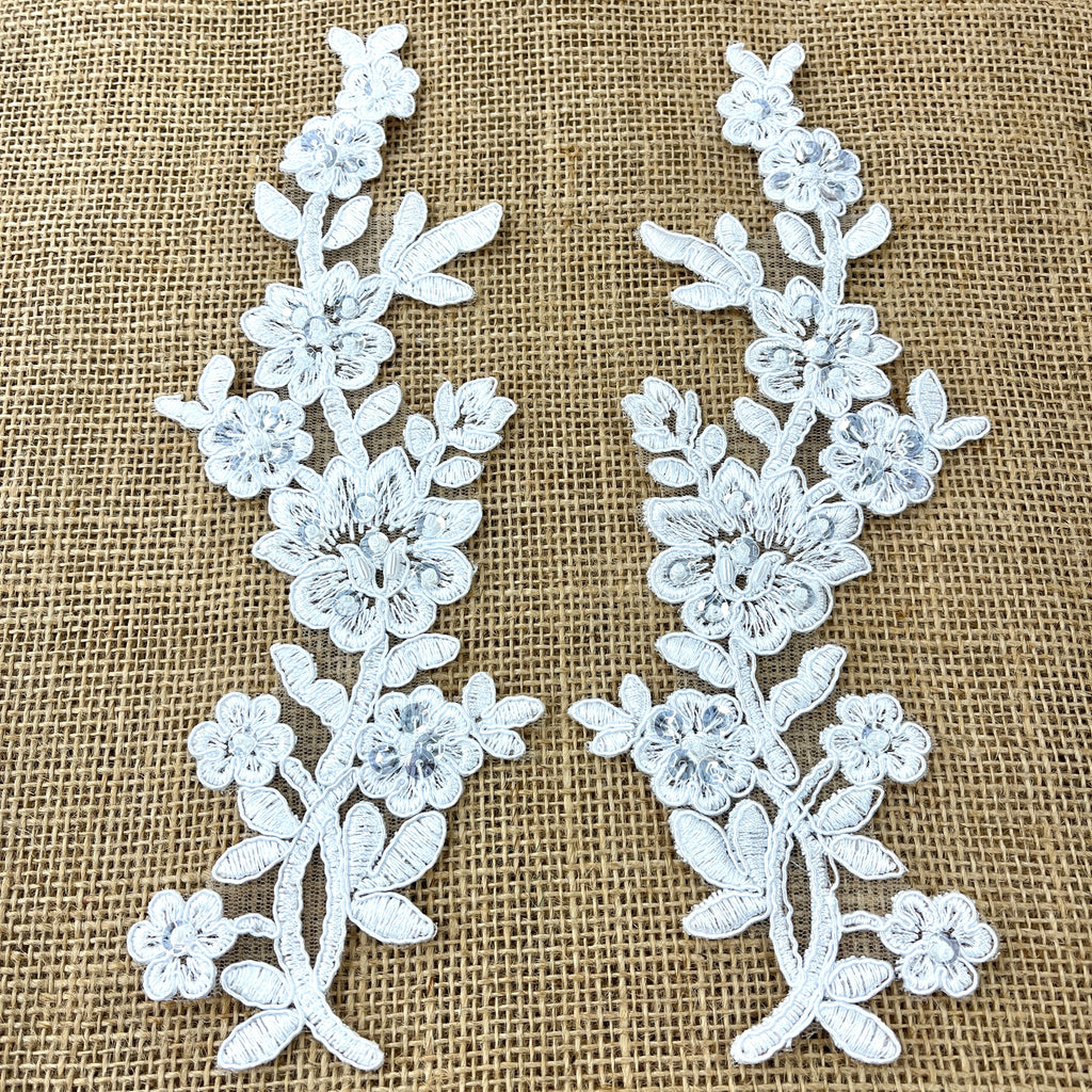 Beaded & Corded Floral Lace Applique Embroidered on 100% Polyester Net Mesh | Lace USA - 95919W-BP