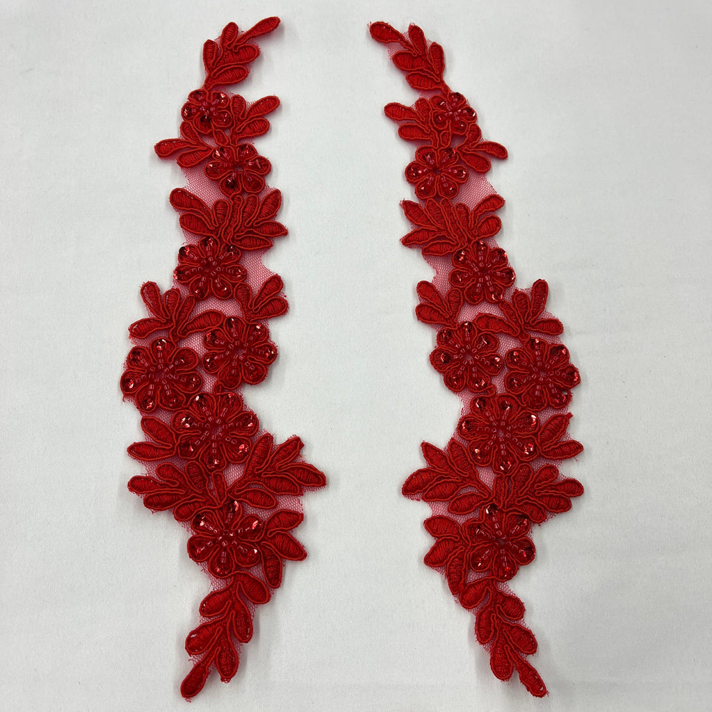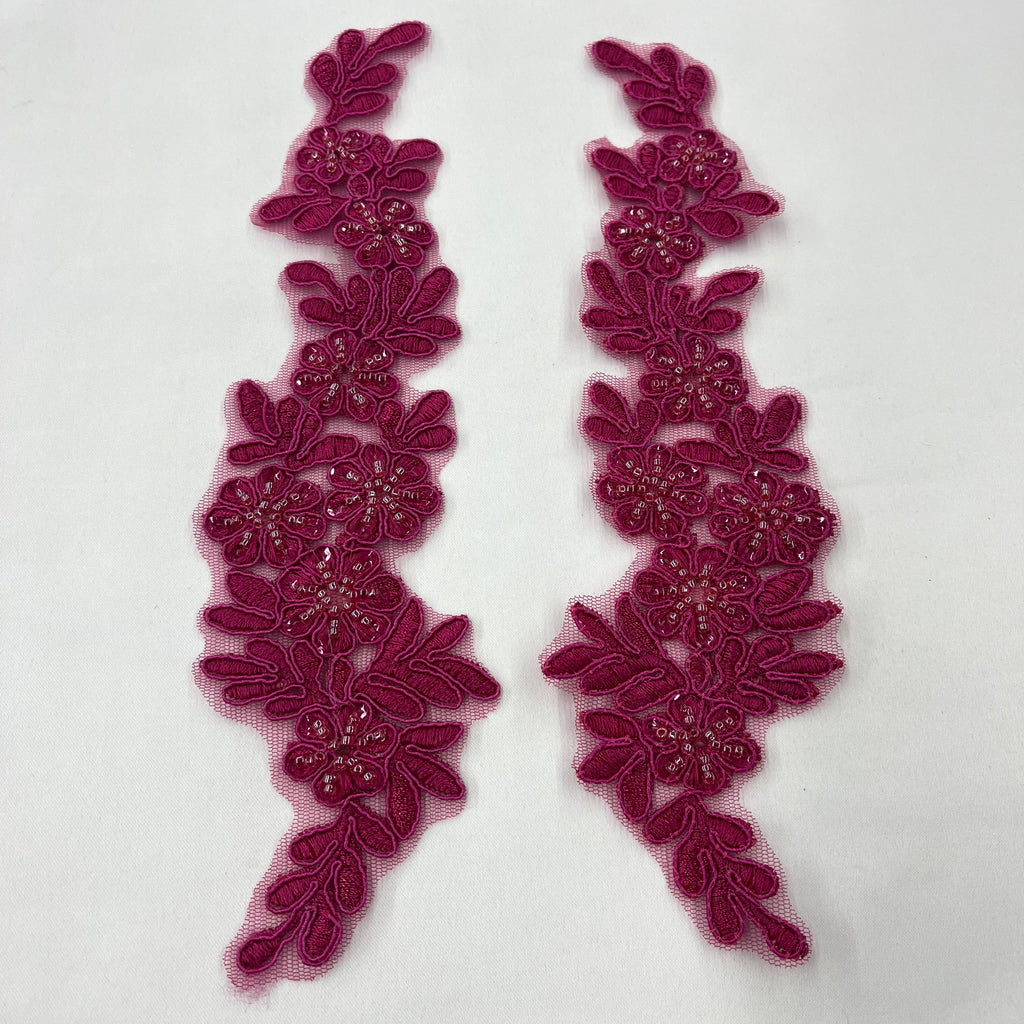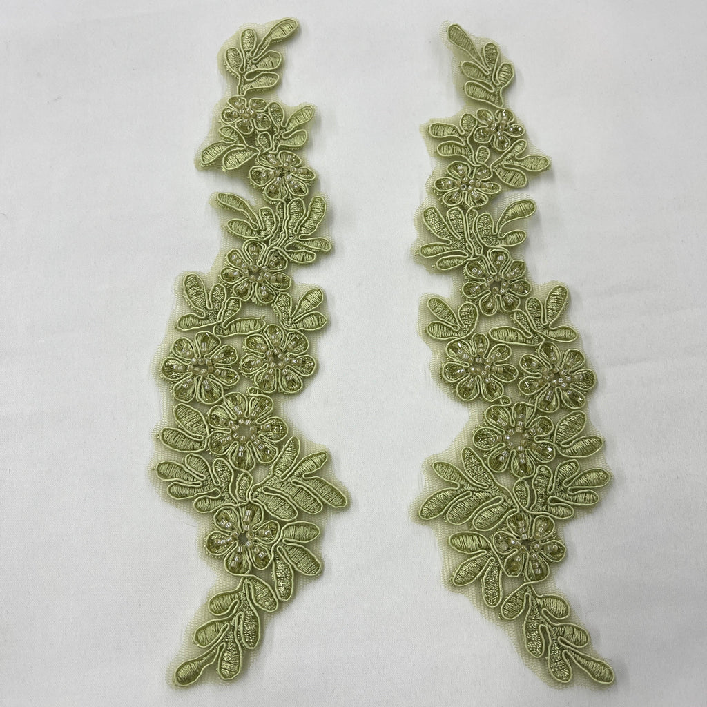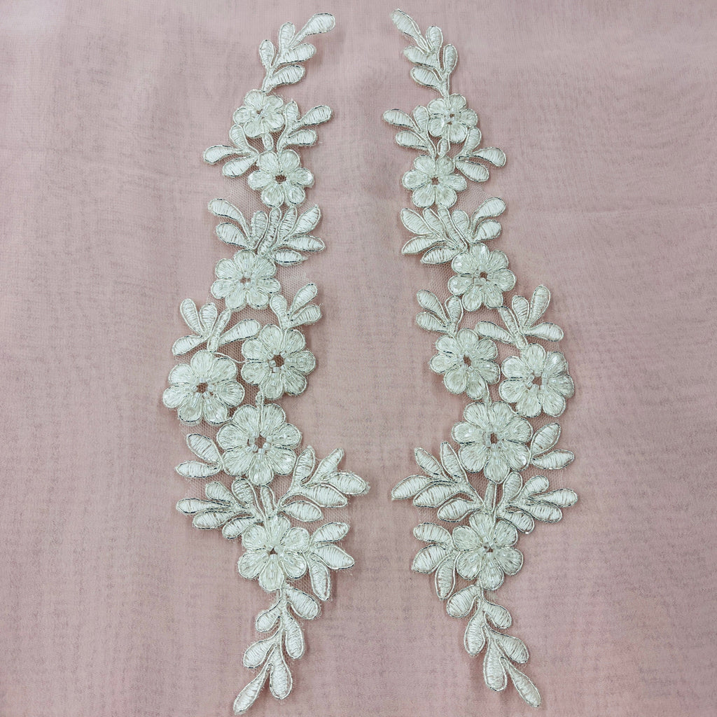 Handmade, high quality Beaded & Corded Floral Lace Applique Embroidered on 100% Polyester Net Mesh. Durable heavy weight fabric. Beautiful on wedding dresses, evening gowns, dance costumes, and more.