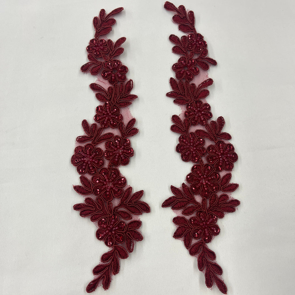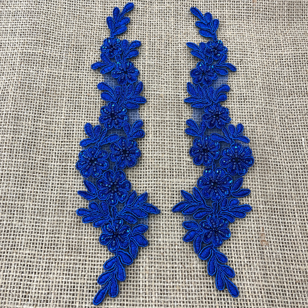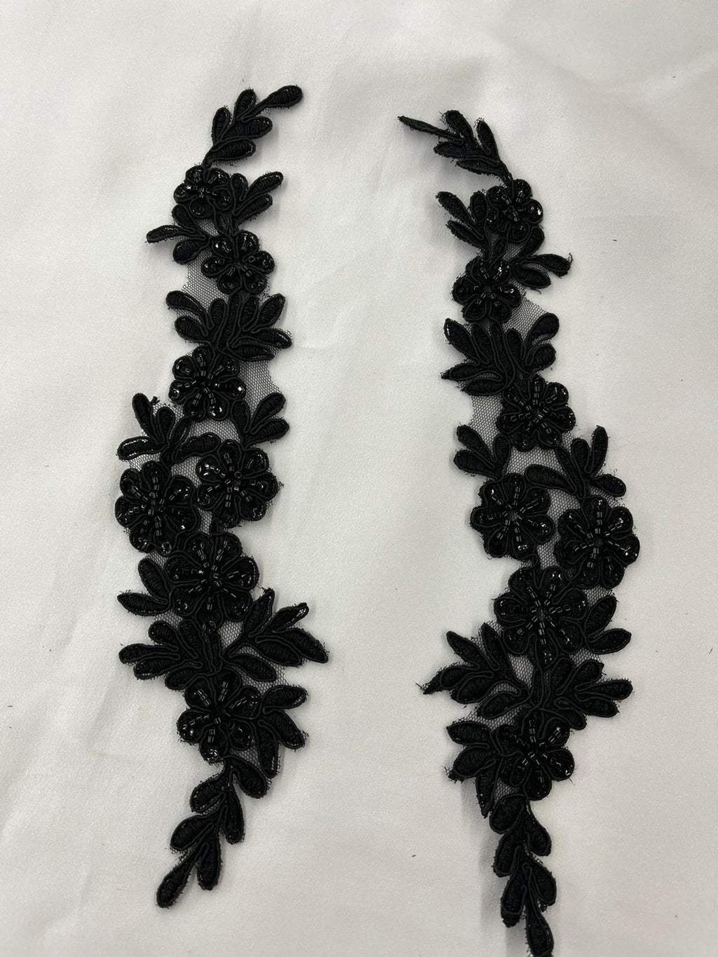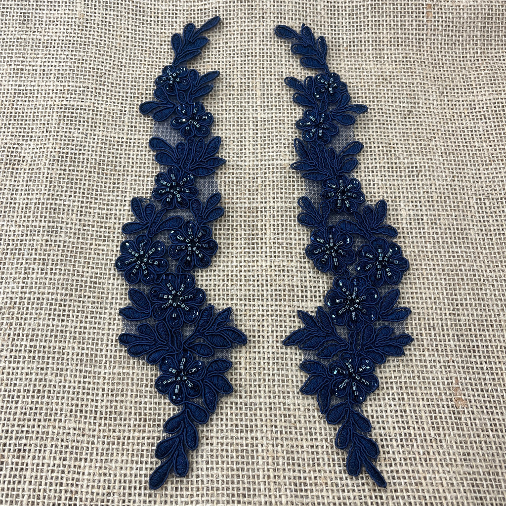 Handmade, high quality Beaded & Corded Floral Lace Applique Embroidered on 100% Polyester Net Mesh. Durable heavy weight fabric. Beautiful on wedding dresses, evening gowns, dance costumes, and more.