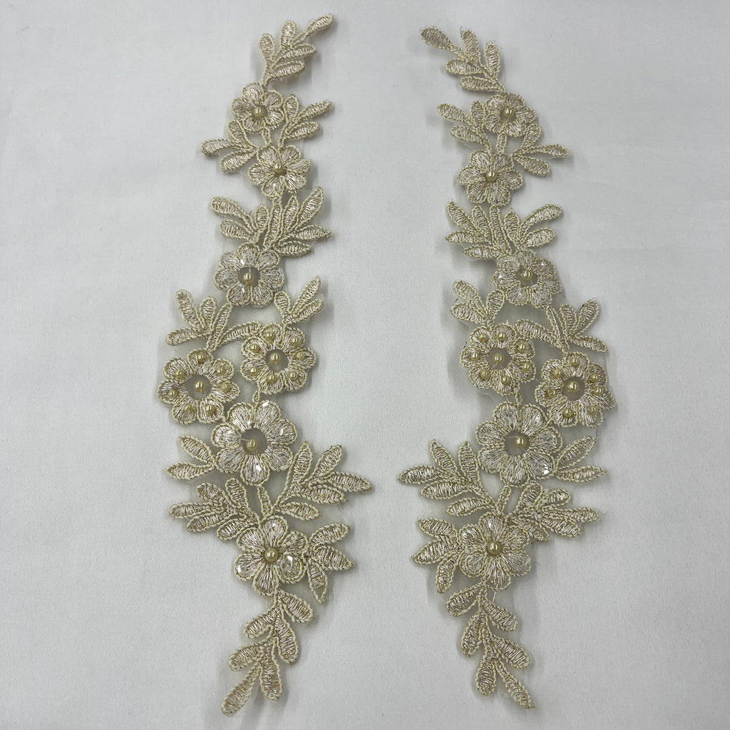 Beaded & Corded Floral Lace Applique Embroidered on 100% Polyester Net Mesh | Lace USA - 95969W-HB