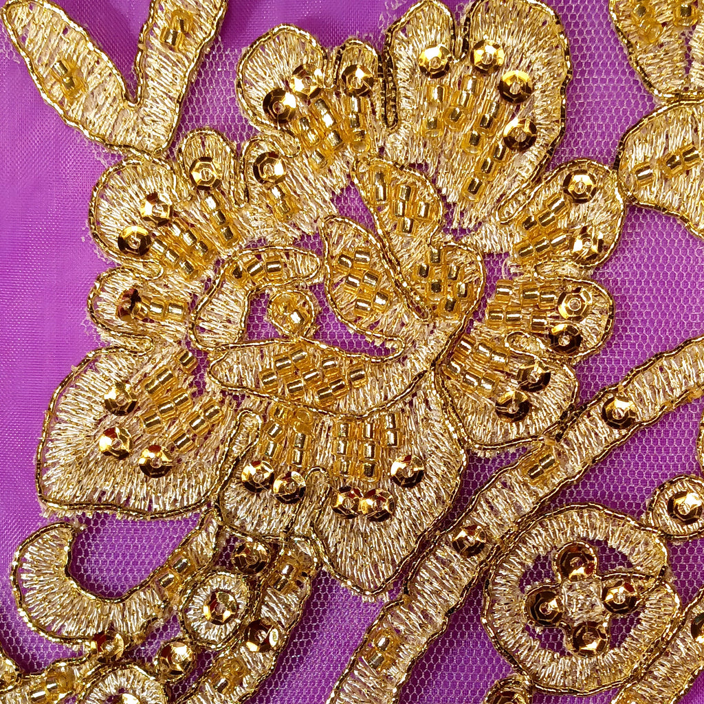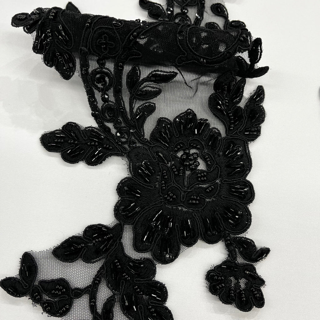 Add a touch of luxury to your designs with this stunning handmade beaded corded floral applique, crafted with care on 100% polyester mesh. This elegant applique features beautifully detailed floral embroidery enhanced with both intricate cord work and delicate bead accents, bringing sparkle and dimension to any garment.