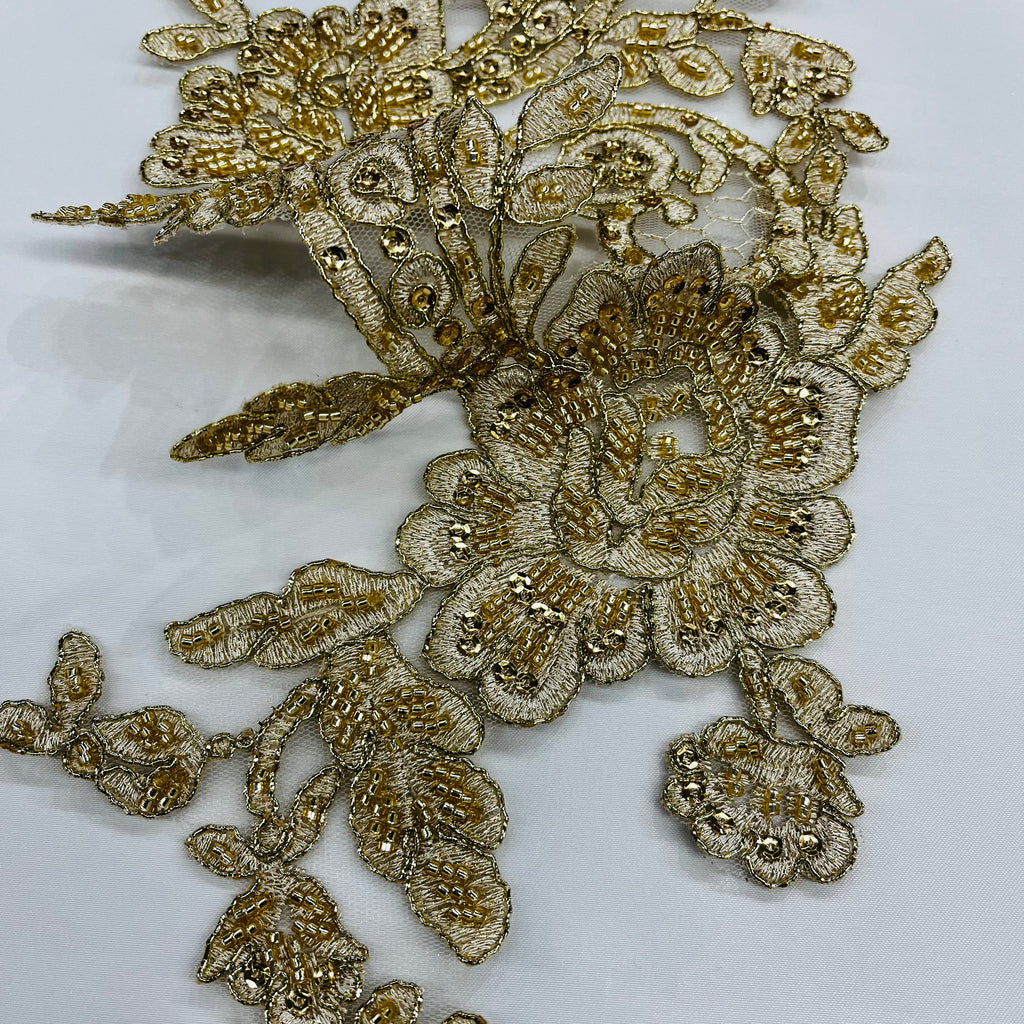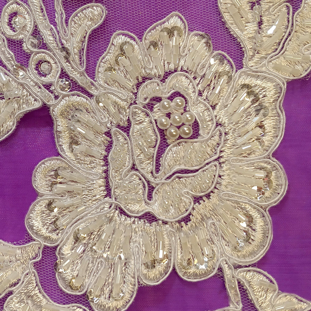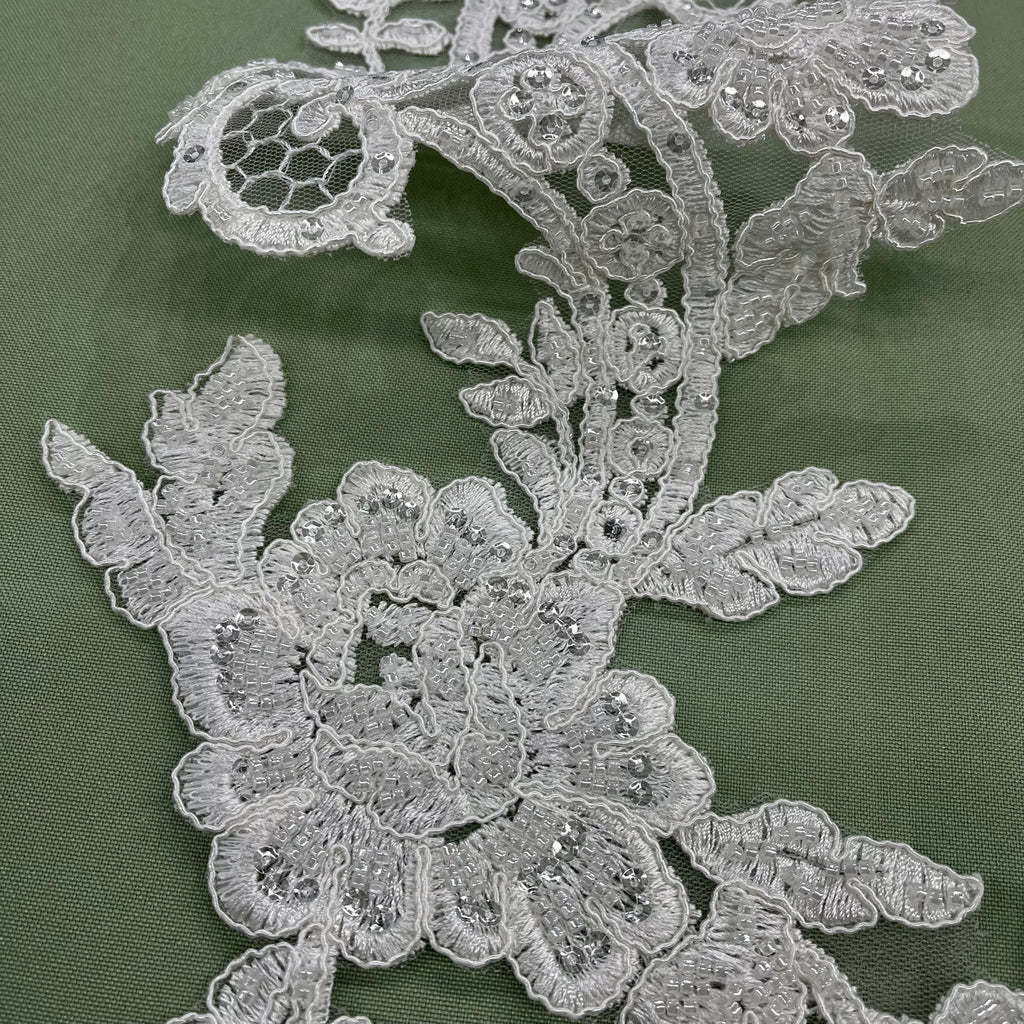 Beaded & Corded Floral Lace Applique for Bridal & Quinceañera Dresses | Lace USA - 96434W-HB