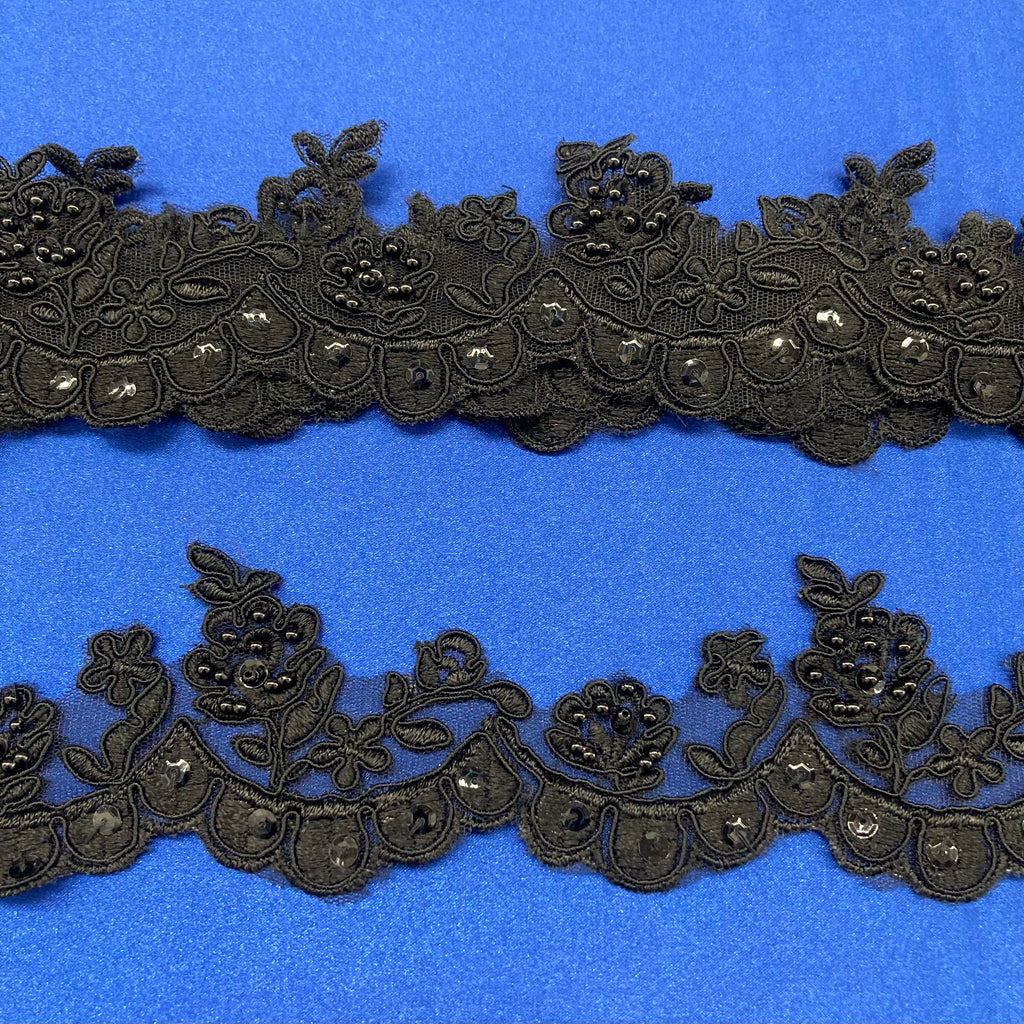 Elevate your special occasion dress, dance costume, or bridal gown with this exquisite Beaded & Corded Floral Lace Trimming Embroidered on 100% Polyester Net Mesh from Lace USA. The wide variety of colors will allow you to find the perfect match for whatever garment you’re creating. The 2 inch wide size gives you the perfect amount of coverage for your project. Whether you’re embellishing with Beaded lace trim, Corded couture lace trim, Beaded couture lace trim, Corded bridal lace trim, Beaded bridal lace trim, Corded evening dress lace trim, Beaded evening dress trim Corded, quinceanera dress trim, Beaded trim for quinceanera dress, Corded trim for dance costume, Beaded trim for dance costume, Corded embroidered lace trim, Beaded embroidered & Corded trim, trim for special occasion dresses, Beaded trim for special occasion dresses, Decorative corded trim, Decorative beaded lace trims, Elegant corded lace trims, or Elegant beaded lace trimming this lace trimming is the perfect addition to your masterpiece. This Beaded & Corded Floral Lace Trimming Embroidered on 100% Polyester Net Mesh will create the most beautiful and delicate final detail on any garment. With a 1 yard minimum order and the ability choose from 6 different colors.