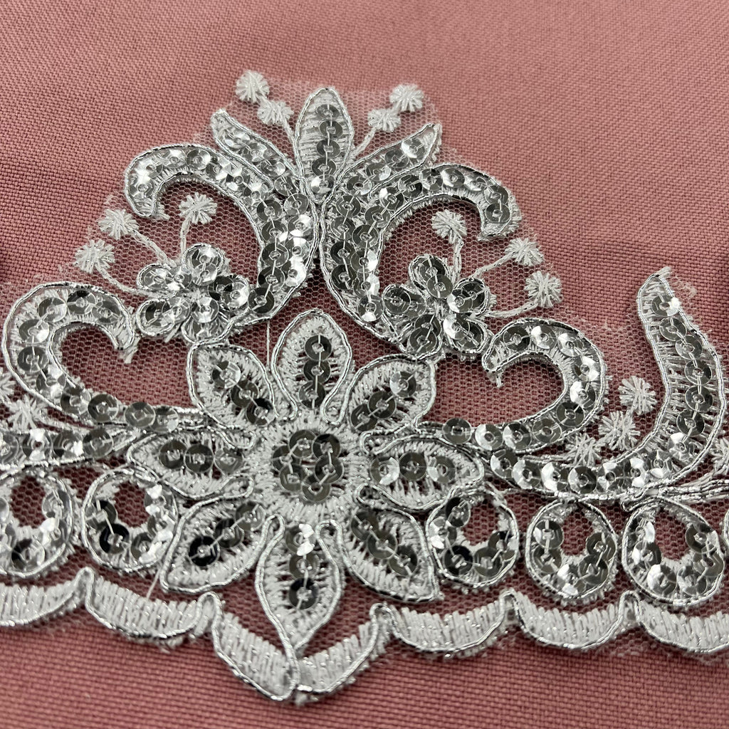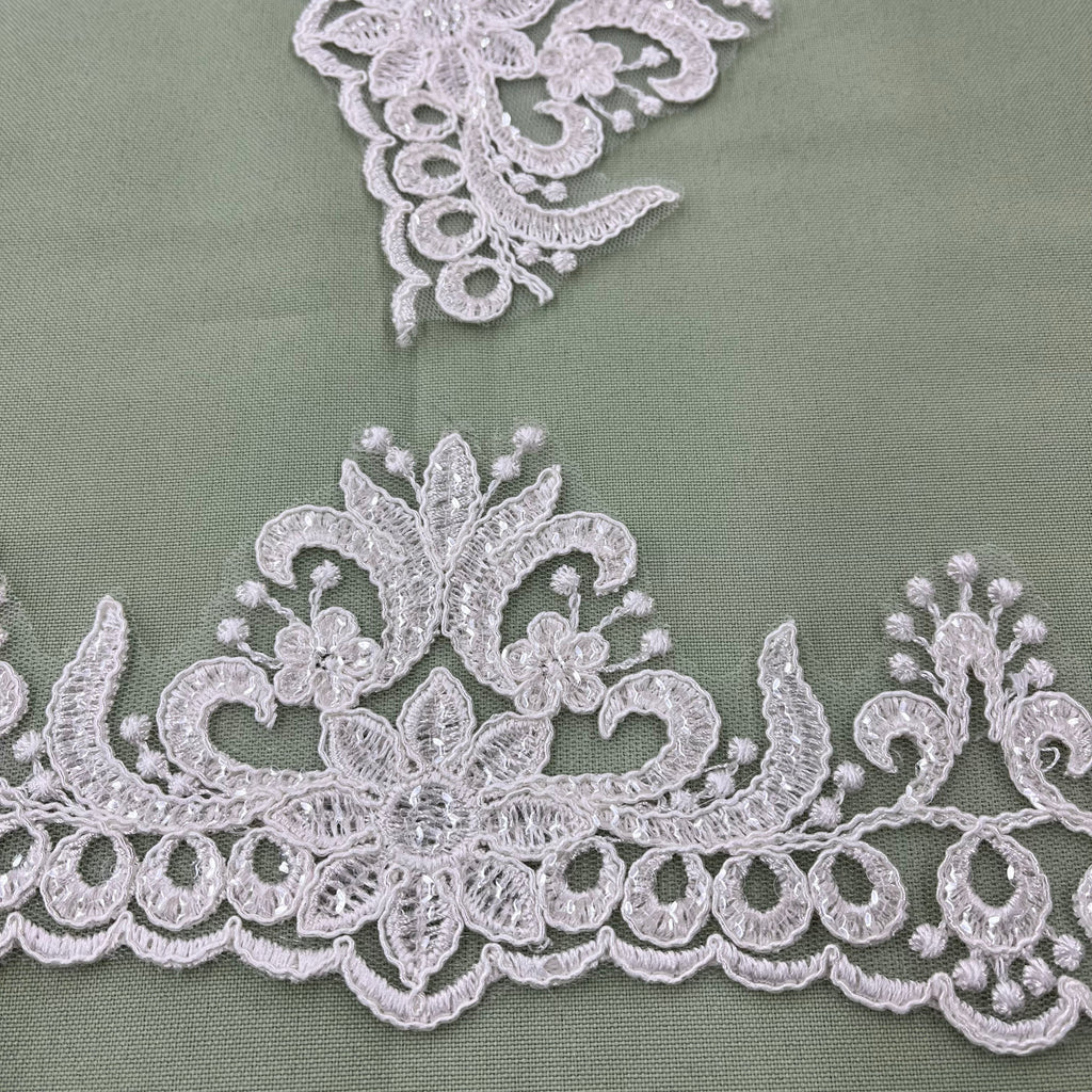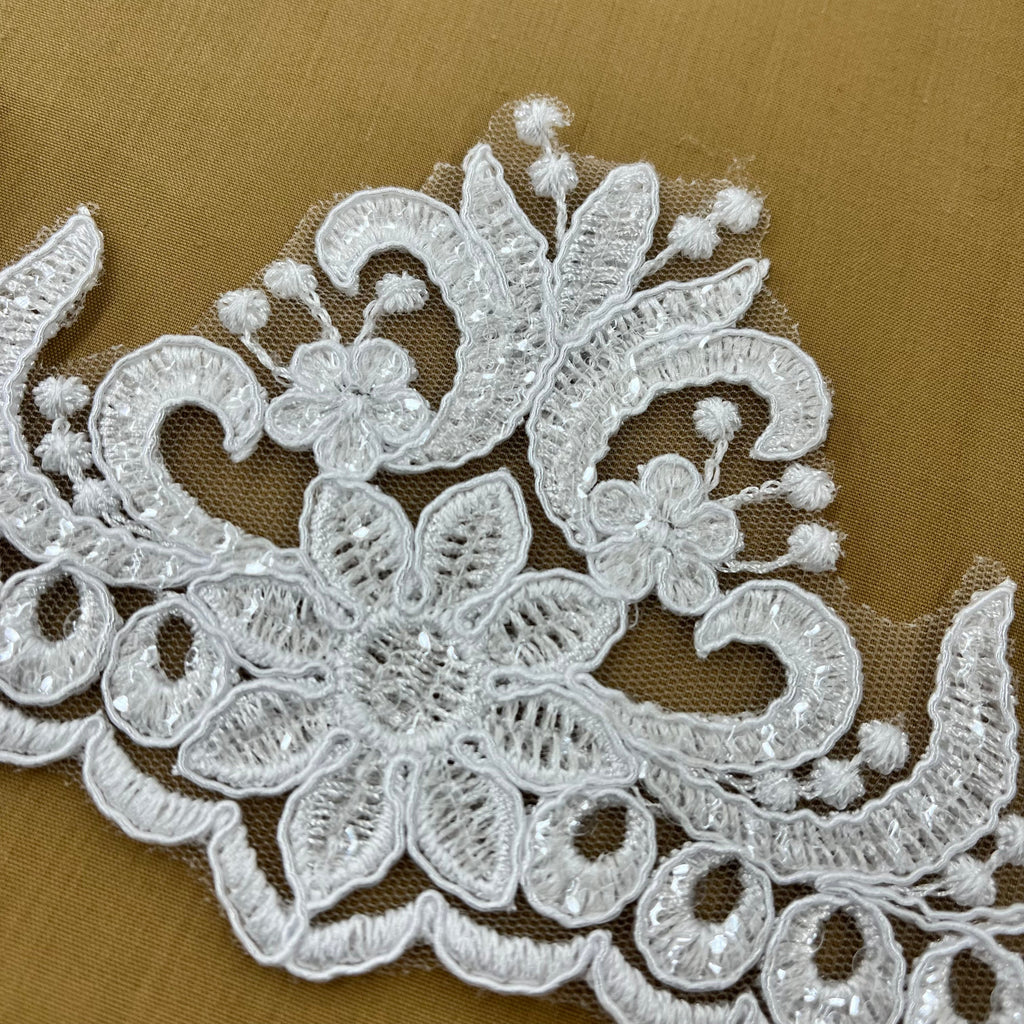 Beaded & Corded Floral Lace Trimming Embroidered on 100% Polyester Net Mesh | Lace USA - 97215W-SB