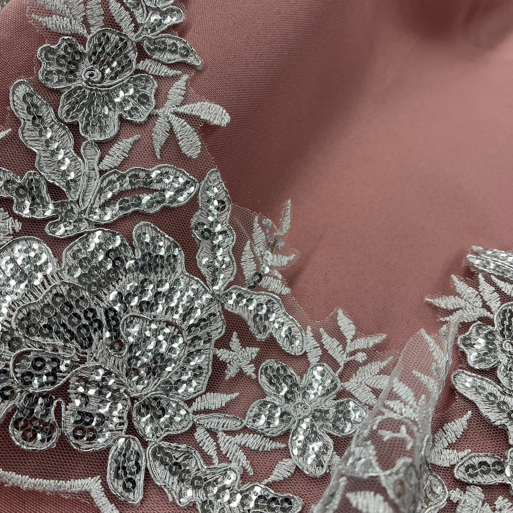 Beaded & Corded Floral Lace Trimming Embroidered on 100% Polyester Net Mesh | Lace USA - 97218W-SB