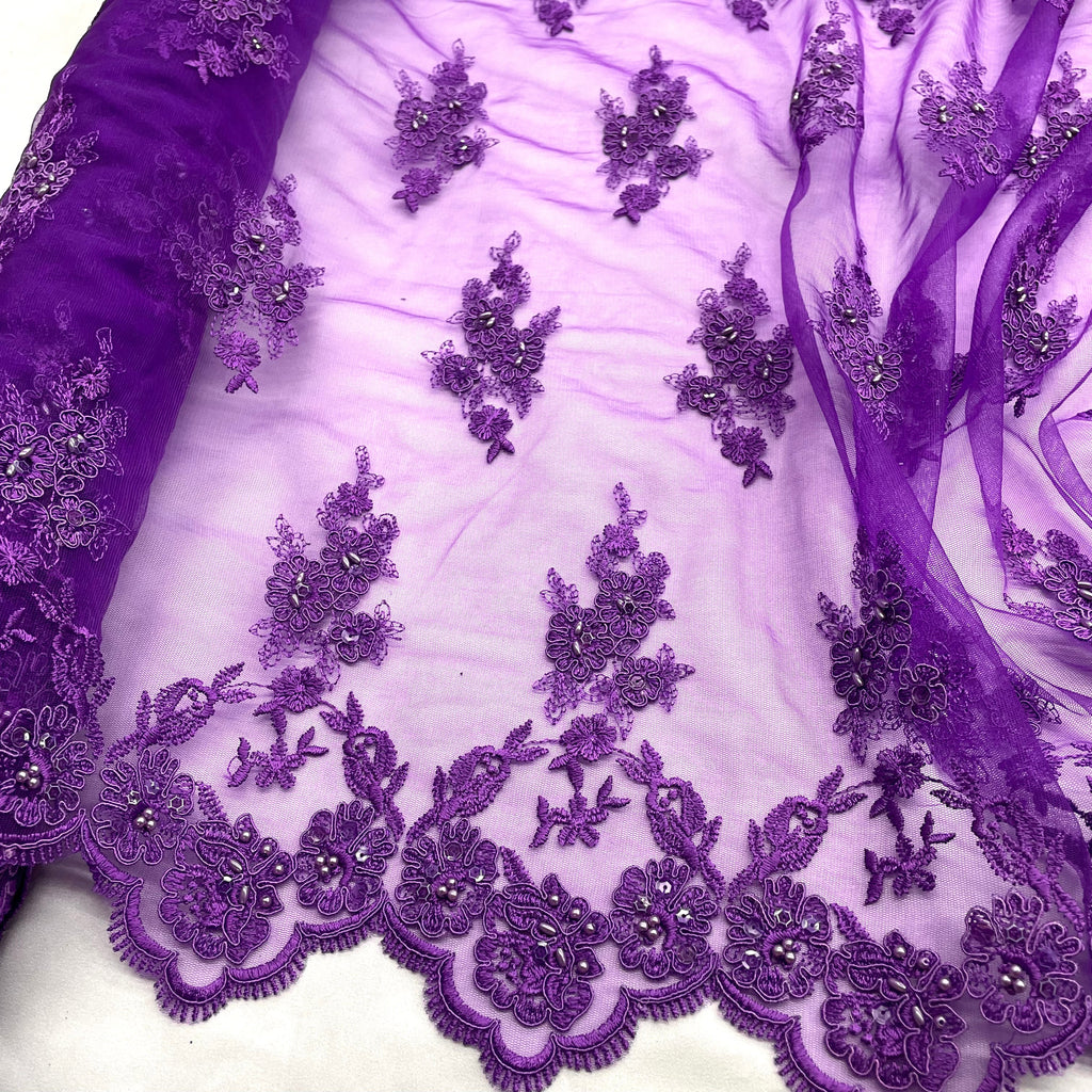 Create a look of timeless elegance for any wedding dress, evening gown, quinceanera dress, or dance costume with our beaded and corded lace fabric embroidered on 100% polyester net mesh. Available in 6 exquisite colors, this exquisite lace fabric features intricate beadwork and a luxurious corded design that is sure to impress. Perfect for any special occasion, our corded couture lace, beaded couture lace, corded bridal lace, beaded bridal lace, corded evening dress lace, beaded evening dress lace, corded quinceanera dress lace, beaded quinceanera dress lace, corded dance costume lace, beaded dance costume lace, corded embroidered lace, beaded embroidered lace, corded special occasion lace, beaded special occasion lace, decorative corded lace, and decorative beaded lace give you an elegant look that will last through time. Whether it’s your wedding or a special date night, our corded and beaded lace fabric is sure to give you a truly timeless look. Approximately 53" wide / Ships within 24 business hours Colors: This product comes in 6 different colors.