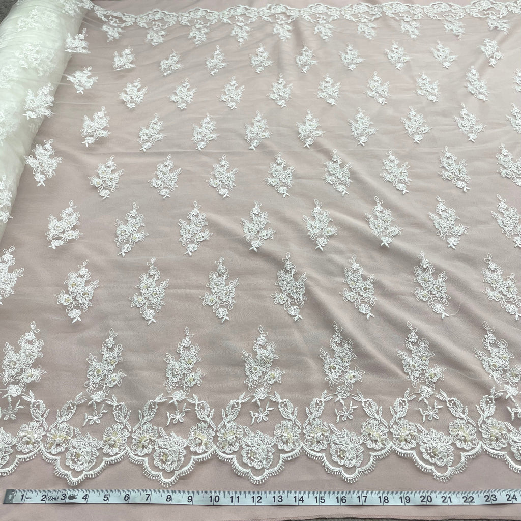 Beaded & Corded Lace Fabric Embroidered on 100% Polyester Net Mesh | Lace USA - 96644W-BP