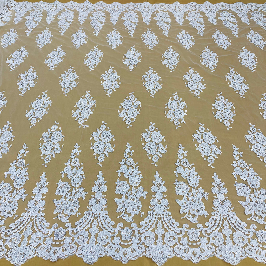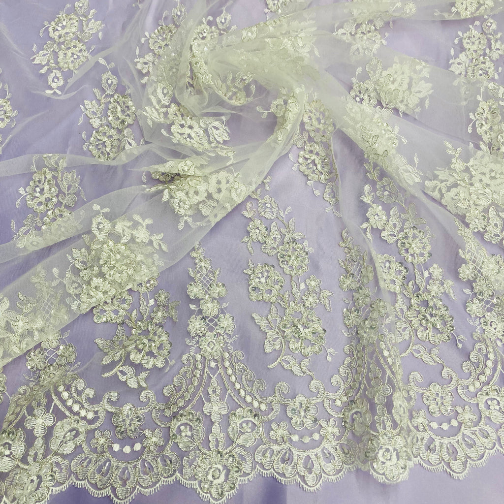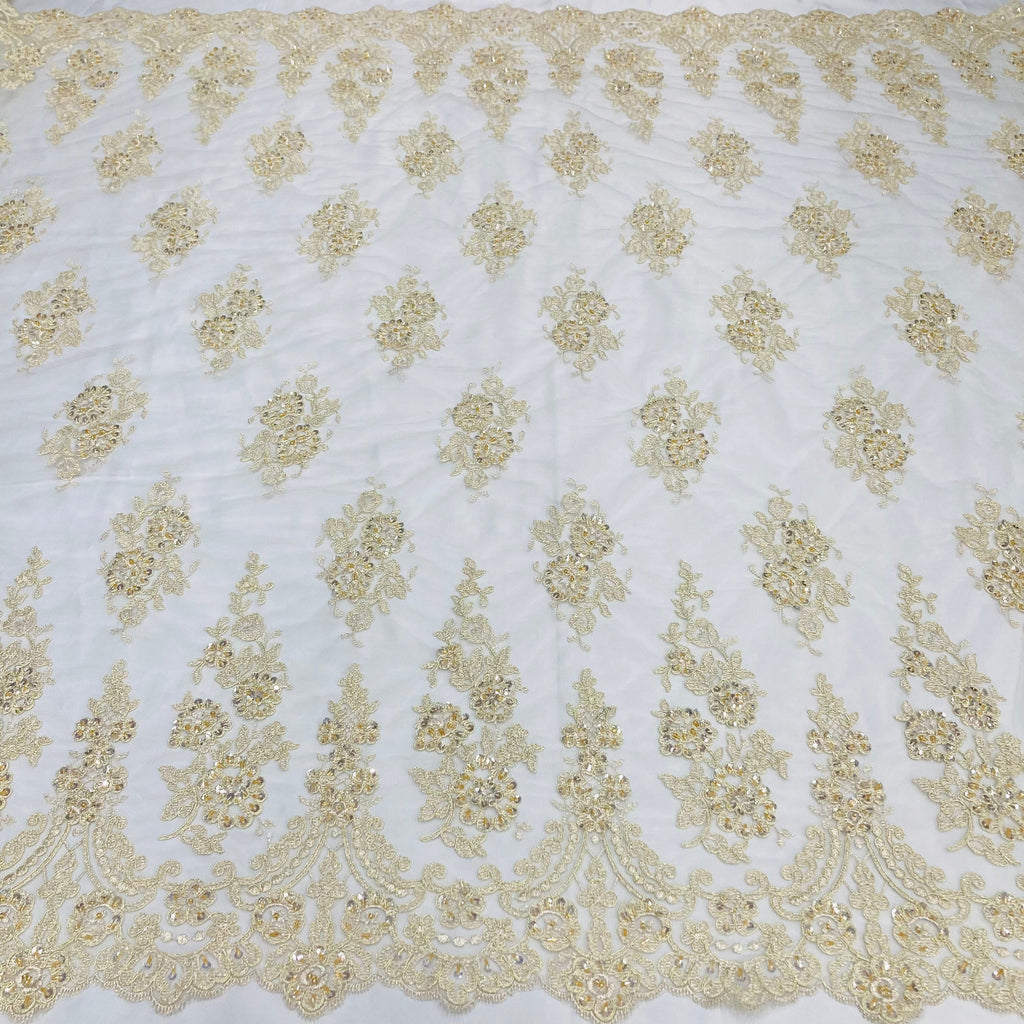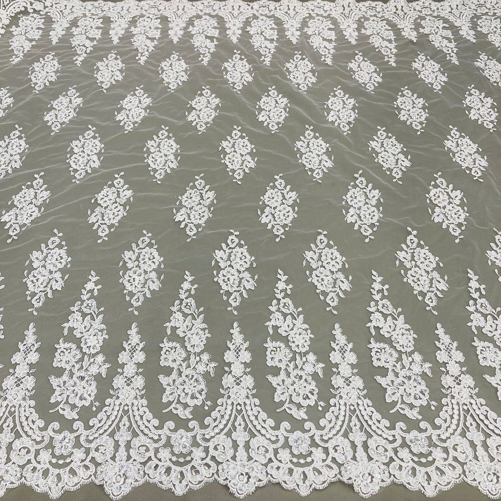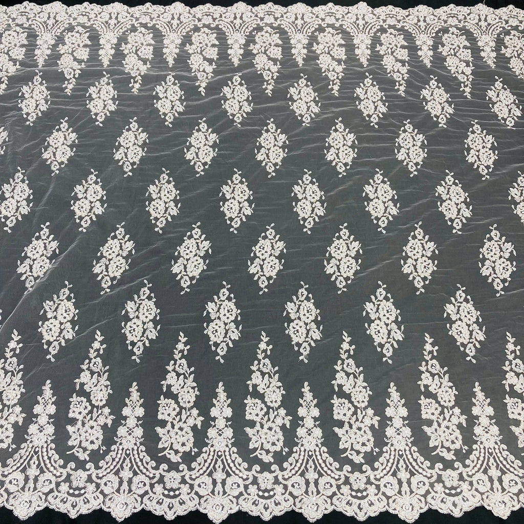 Beaded & Corded Lace Fabric Embroidered on 100% Polyester Net Mesh | Lace USA - 96784W-BP