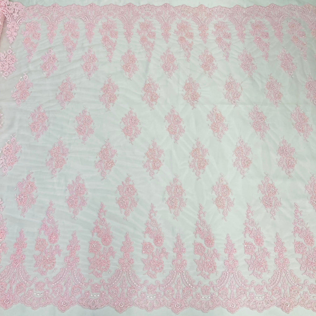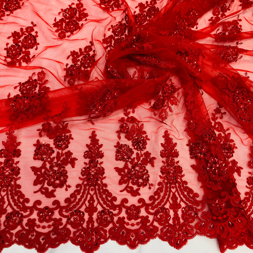 Be inspired by the luxurious look of our Beaded & Corded Lace Fabric Embroidered on 100% Polyester Net Mesh. Featuring an exquisite design and stunning detailing, our lace is perfect for creating couture lace dresses, evening gowns, bridal accessories, quinceanera dresses, dance costumes, and more. With nine color options to choose from, you can find the perfect match for your special occasion. Our corded lace fabric is exquisitely crafted to provide intricate detail and a luxurious finish to dress designs for dramatic effect. Our corded couture lace is lightweight and incredibly soft to the touch, making it ideal for creating special occasion dresses with elegance and flair. Corded bridal lace, crafted carefully to create a perfectly tailored look. For a quinceanera or formal event, corded evening dress lace will make your look stand out in a crowd. Corded dance costume lace is perfect for creating ultra-elegant dance costumes. And corded embroidered lace fabric can bring any look alive with its beautiful embellishments. Decorative corded lace is perfect for adding a touch of charm and texture to plain garments, and for special occasions, corded elegant lace is a must. Created with a unique combination of embroidery and beading, each piece of lace fabric is a masterpiece of its own. Let our lace help you design the perfect piece to make your special occasions even more memorable. Approximately 52" wide / Ships within 24 business hours.